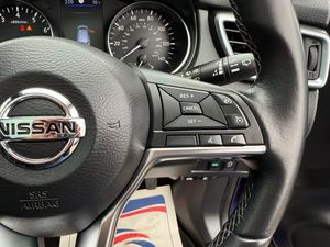 Fixed Panoramic Roof, Cloth - Anthracite Bi-Colour, Ink Blue, 18in Alloy Wheels, 3 Height Adjustable Rear Headrests, 6 Airbags - Driver-Passenger-Side and Curtain Airbags, 6 Speakers, 60-40 Split Rear Folding Seats, AM-FM Radio and CD Audio System, AUX Socket, Advanced Drive Assist Display - 5in TFT Coloured Screen, Ambient Lighting Centre Console, Anti Dazzle Rear View Mirror, Auto Wipers, AutoHold Function - Stand Still Assist, Bluetooth, Body Coloured Door Mirrors, Body Coloured Handles, Boot Light, Carbon Graphite Dash Trim, Centre Console Storage and Armrest, Chrome Glass Window Surround, Chrome Interior Door Handles, Cruise Control with Speed Limiter, DAB Digital Radio, Daytime Running Lights Dip Function When Turn Signal Applied, Driver Seat Manual Height Adjustment, Drivers Seat with Manual Lumbar Support, Dual Zone Climate Control, ESP ABS EBD and Brake Assist, Electric Heated Auto-Folding Door Mirrors, Electric Parking Brake, Electric Speed-Sensitive Power Steering, Front 12v Power Sockets x2, Front and Rear Door Pockets with Drink Holders, Front and Rear Electric Windows, Front and Rear Seat Belts with Load Limiter and Pretensioners, Front and Rear Seatbelt Warning, Glass Roof Pack, Halogen Headlamps, Headlights - High Beam Assist, Height Adjustable Front Head Restraints, Height Adjustable Front Seatbelts, Hill Start Assist, ISOFIX Restraints on Outer Rear Seats, Intelligent Around View Monitor, Intelligent Auto Headlight, Intelligent Emergency Braking with Pedestrian Recognition, Intelligent Park Assist, Interior Ambient Lighting, LED Signature Daytime Running Lights, LED Turn Indicator on Door Mirrors, Lane Departure Warning, Leather D Shaped Steering Wheel, Leather Gear Lever, Leather Knee Pad, Luggage Board System, Matt Silver Roof Rails, Monoform Front Seats with Plastic Backboard, Nissan Anti Theft System Immobiliser, Nissan Chassis Controls, Nissan Connect with Apple Carplay - Android Auto and TomTom Connected Services, Nissan Intelligent Key, One Touch - Illuminated Electric Window Controls, One Touch 4 x Auto Windows with Illuminated Switches, One-Touch Electric Shade, Outside Temperature Sensor, Parcel Shelf - Stow Function Under Luggage Board, Parking Sensor - Front, Passenger Airbag Deactivation System, Passenger Seat Manual Height Adjustment, Passengers Seat with Manual Lumbar Support, Pollen Filter, Privacy Glass, Rear Parking Sensors, Rear Roof Spoiler, Rear View Camera, Rear Wiper with Reverse Link, Remote Central Locking, Selectable Steering - Normal or Sport, Shark Fin Antenna, Start Push Button, Steering Wheel Mounted Audio Controls, Synthetic Leather Wrapped Door Handle with Contrasting Stitching, TPMS - Tyre Pressure Monitoring System, Thatcham Category 1 Alarm, Tilt and Telescopic Adjustable Steering Wheel, Traffic Sign Recognition, Trip Computer - Combimeter, Tyre Puncture Repair Kit, USB Port, Underbody Vortex Generators