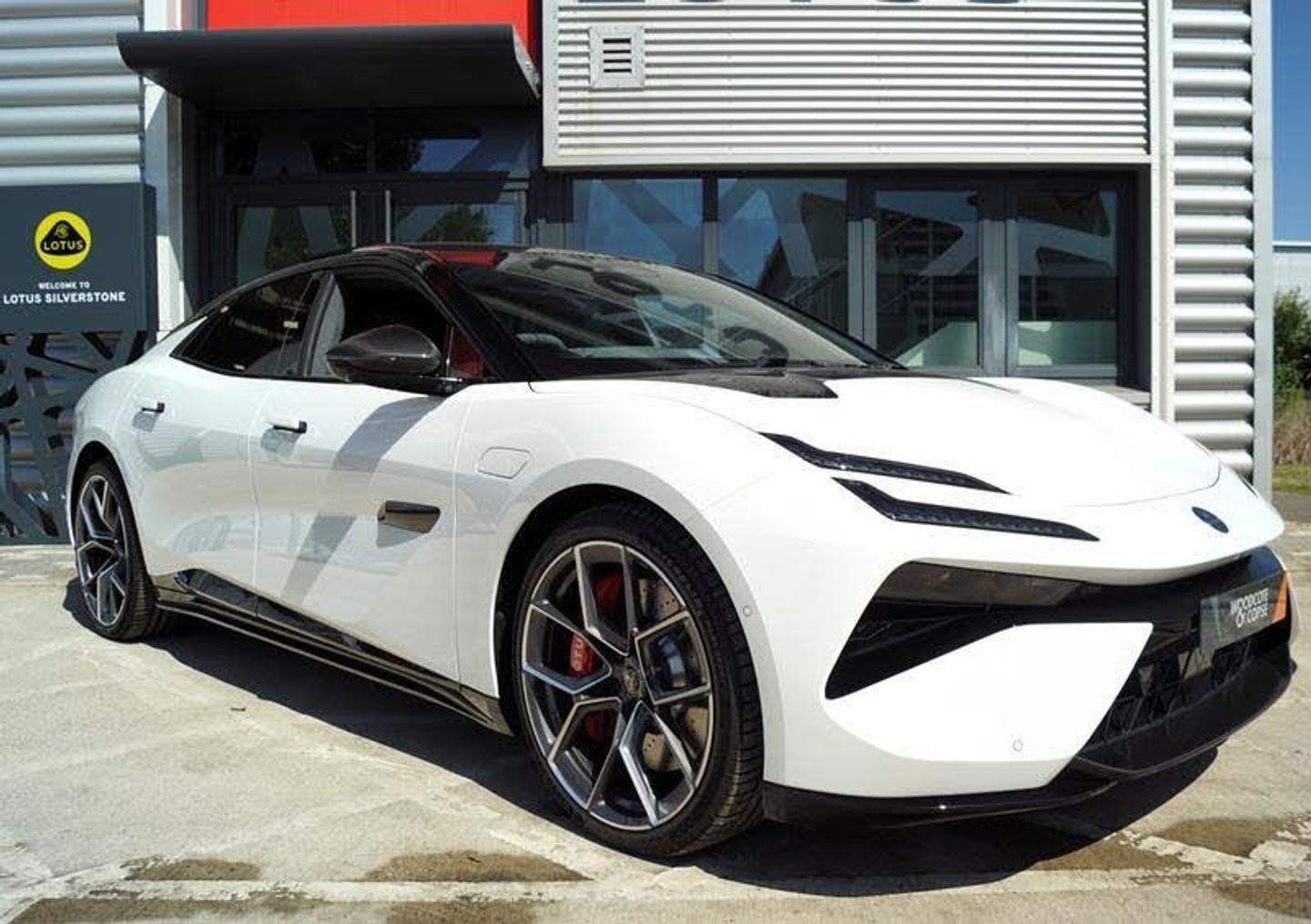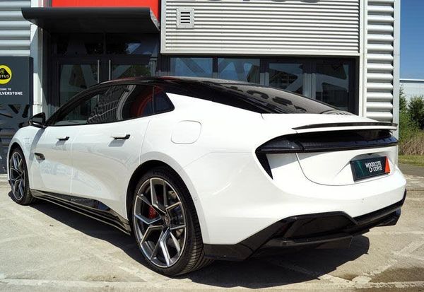Lotus Emeya R finished in Akoya White with Magnetite InteriorComfort Seat PackDark Grey Alcantara with carbon fibre bezel Steering WheelSports PedalsExtended interior carbon pack22 10-spoke Gloss Grey Wheels with Pirelli P ZEROLightweight brake discs with 6-piston calipers (Red)Carbon PackGloss Black LOTUS lettering with Black BadgesIntelligent glass roofTouring packRear privacy glassLotus Dynamic Handling packLotus Active Aero PackParking & Highway Packs