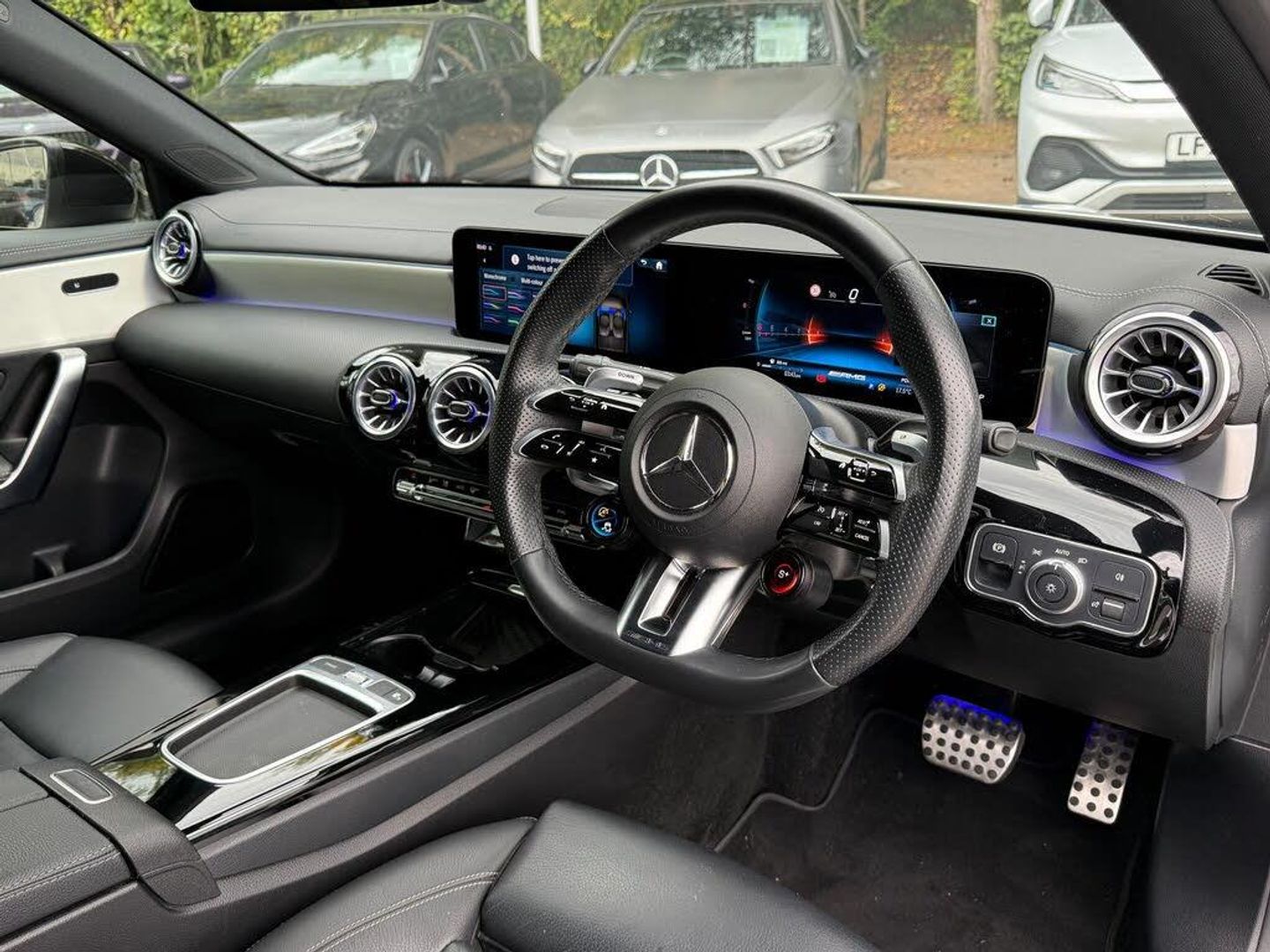 19in Alloy Wheels - AMG 5-Twin-Spoke Design - Aerodynamically Optimised - Painted Matt Black with a High-Sheen Finish, ABS - Anti-Lock Braking System with BAS - Brake Assist, AMG Bodystyling - AMG Front Apron with Front Splitter and AMG Rear Apron with Visible Tailpipe Trim Elements, AMG Illuminated Door Sills with AMG Lettering and with Exchangable Cover, AMG Night Package, AMG Spoiler Lip on the Roof Spoiler, AMG Suspension, ATTENTION Assist, Active Bonnet - Pedestrian Safety Measure which Detects an Impact and Raises Bonnet by 65mm, Active Brake ASSIST, Active Lane Keeping Assist, Adaptive Brake Assist with Hold Function and Hill Start Assist, Adaptive Brake Lights, Air Conditioning - Air Vents Black with Surround in Silver Chrome, Air Conditioning - THERMOTRONIC Automatic Climate Control - Two-Zone with Display, Airbag - Kneebag for Driver, Airbags - Dual Stage - Driver and Front Passenger, Airbags - Windowbags for Driver and Front Passenger, Alarm System with Immobiliser and Interior Protection - Thatcham Category 1, Automatic Child Seat Recognition Sensor, Beltline Strips - High Gloss Black, Blind Spot Assist, Bodystyling - Side Skirts - Body-Coloured, Bonnet with Power Domes, Brake Calipers with AMG Lettering on Front, Brake-Pad Wear Warning Indicator, Brushed Stainless Steel Sports Pedals with Rubber Studs, Bumpers - Body Coloured, Car Wash Mode, Centre Armrest - Front with Stowage, Childproof Locks - Manually Operated for Rear Doors and Electrically Operated for Rear Power Windows, Crash-Responsive Emergency Lighting, Cruise Control with Limiter, DAB Digital Radio Tuner, Direct Steer Speed-Sensitive Steering, Door Handles - Body Coloured, Door Mirrors - Electrically Adjustable and Heated with Integrated LED Indicators, Driving Modes - DYNAMIC SELECT with Drive Programs - Slippery - Comfort - Sport - Sport Plus - Individual, Dual Bluetooth Interfaces, ESP - Electronic Stability Programme with ASR - Acceleration Skid Control, ESP Curve Dynamic Assist, Electric Parking Brake, Electric Windows - 4, Exhaust System - AMG Sports Exhaust System with Two Round Tailpipes Attached to the Rear Apron, Exit Warning Assist, First Aid Kit and Warning Triangle, Floor Mats - with Stitched Edging and AMG Lettering, Front Apron with Flics as Air Deflector Elements on the Outer Air Intakes, Front Splitter and Trim Elements on the Louvres in the Outer Air Inlets, Front Wings with TURBO 4MATIC Lettering, GUARD 360 Vehicle Protection with Anti-theft Alarm System, Glass - Rear Windscreen - Heated with Timer Control, Hard-Disk Navigation, Headlamp Assist - Automatic Headlamp Activation, Heated Front Seats, Hey Mercedes - Voice Activation, High Level Third Brake Light - LED, ISOFIX and Top-Tether Child Seat Fixing Points in Rear - Two Outer Seats, Instrument Cluster - Outside Temperature Display, Instrument Cluster - Service Indicator ASSYST, Instrument Cluster - Trip Computer in Multi-Function Display with Current Fuel Consumption Indicator, Instrument Display - 10.25in Digital Display, Interior Lighting - 64-Colour Ambient Lighting, Interior Lighting - Light and Sight Package, Interior Mirror - Reading Lamps in Black - Frameless, KEYLESS-GO - Lock-Unlock Doors Only, KEYLESS-GO - Starting Function, LED High Performance Headlamps with Integrated LED Daytime Running Lights and Adaptive High Beam Assist, LED Tail Lamps, Leather Package, Light Failure Indicator, Live Traffic Information, Luggage Compartment Cover, Luggage Nets on Driver and Front Passengers Backrests, MBUX Augmented Reality for Navigation, MBUX Multimedia System, Media Display - 10.25-inch with Touchscreen, Mercedes Me - Remote Services, Mercedes Me Connect - Standard Services, Mirror Package, Owners Manual - English, Parking Package, Pre-Installation for Private Car Sharing, Privacy Glass, Radiator Grille - AMG Radiator Grille with Twin Blade Lamella and AMG Lettering, Radio Aerial Roof Spoiler, Rain-Sensing Windscreen Wipers with Two Sensitivity Settings, Rear Armrest with Two C