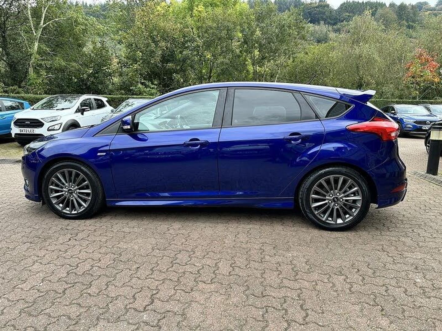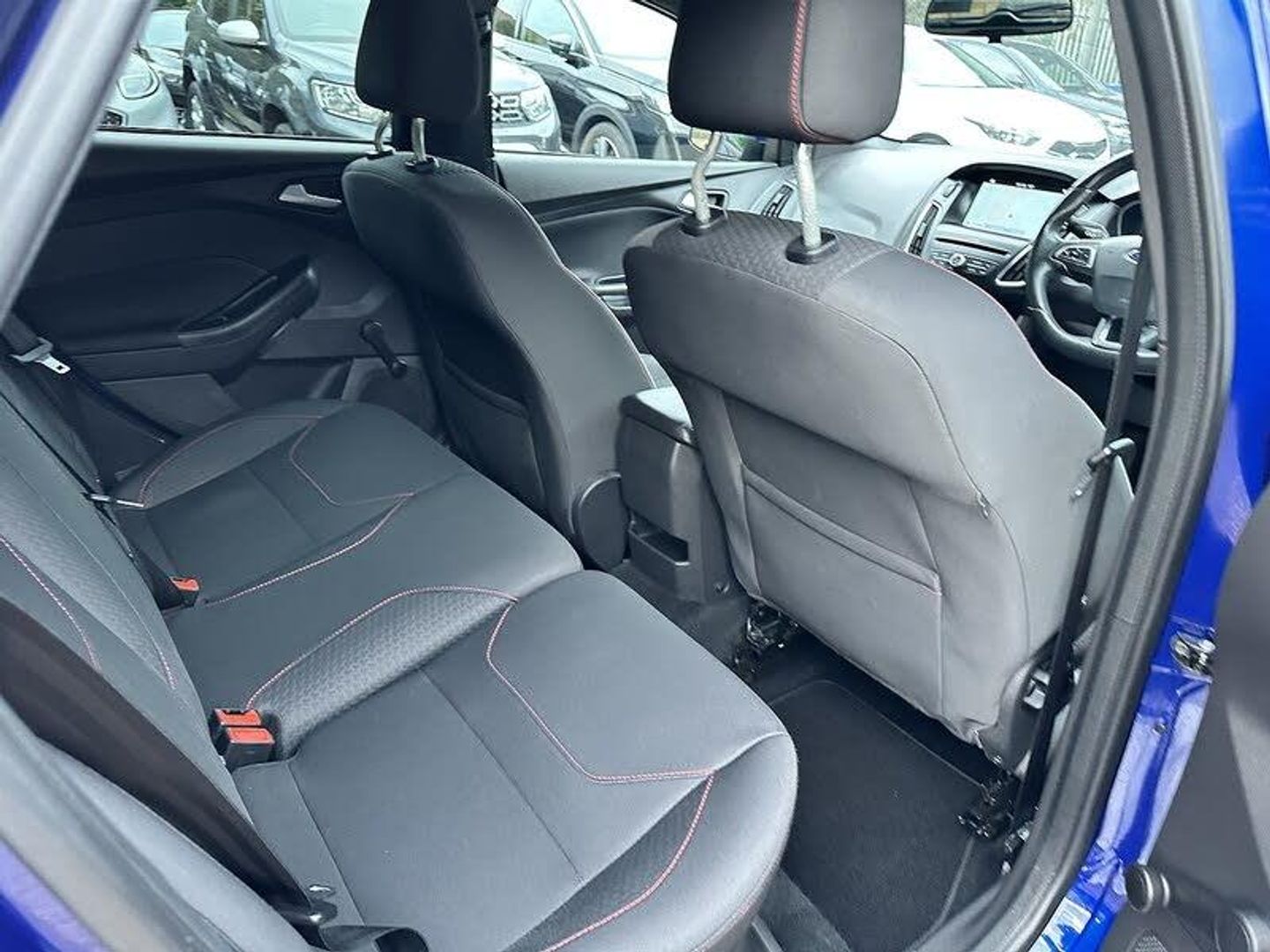 Deep Impact Blue,Rear Privacy Glass,View Cloth - Charcoal Black with Red Stitching, Colour TFT Instrument Cluster Display, Ford SYNC3 DAB Navigation System, SYNC3 with 8in Touchscreen DAB Audio System, Ford Eco Mode - Driver Information System, Tyre Pressure Monitoring System, 17in Alloy Wheels - Rock Metallic Finish, Body Colour Large Rear Spoiler and Side Skirts, Body Coloured Front Styling Kit with Centre Aero Foil, Door Mirrors - Heated - Electric - Integrated Side Indicators - Body Coloured, Quickclear Heated Front Windscreen with Heated Washer Jets, ST Line Stainless Steel Scuff Plates, Upper and Lower Grille - High Gloss Black Honeycomb Design, Windows - Electrically Operated Front with One Touch Lowering on Drivers Side, Wipers - Standard with 6 Speed Interval Settings, Halogen Headlights with Black Surround, Headlights - Courtesy Delay, LED Daytime Running Lights, Rear Lights - LED, Air Conditioning - Manual, Centre Console - Premium with Sliding Armrest - Covered Stowage Bins, Drivers Seat Lumbar Adjust, Ford Power Starter Button, Front Seat - Drivers Manual Height and Fore-Aft Adjustment, Front Seat - Passenger Manual Fore-Aft Adjustment, Front Seats - Sports Style, Headliner - Black Woven, Keyless Start, Sports Style Pedals - Gear Knob and Steering Wheel, EPAS - Electric Power Assisted Steering, Front Suspension - Independent with MacPherson Struts and Anti-Roll Bar, Rear Suspension - Independent Control Blade Multi-Link System and Anti-Roll Bar, Suspension - Sports, Airbags - Driver and Front Passenger, Airbags - Front and Rear Side Curtain, Airbags - Front Side Impact, Alarm - Thatcham Category 1 with Volume Sensing and Perimeter, Anti-Lock Braking System - ABS with Electronic Brake Force Distribution - EBD, Ford Easy-Fuel Capless Refuelling System, Hill Start Assist, IPS - Intelligent Protection System, Remote Central-Double Locking, Seats - ISOFIX Mounting Provision for Child Seats, TVC - Torque Vectoring Control