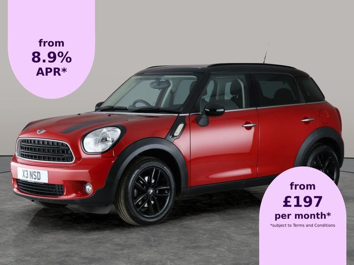 Turn heads with this striking red Mini Countryman! Enjoy the comfort of heated front and rear seats, sleek privacy glass and bold black bonnet stripes, roof, and mirror caps. The ride stands out on stylish 17in black alloy wheels, while LED daytime running lights add a modern touch. Inside, you'll find a sporty leather steering wheel, air conditioning, and Bluetooth for seamless connectivity. This automatic petrol SUV pairs practicality with unmistakable Mini flairperfect for city driving and weekend escapes. 3 services recorded, last serviced on 21/09/2025 at 30,626 miles. MOT to 27/09/2026. Visit our website for service history, online valuation, full vehicle specification plus multiple images. Any feature/option specified here is from 3rd party data. We cannot guarantee the accuracy of any specification supplied by a 3rd party. We recommend that you physically check the specification of the vehicle on site prior to purchase. This information does not form part of the buying contract. Terms & Conditions apply. We have over 2,000 cars available from our 10 national branches, check our website to see all our stock. Our Trustpilot rating is 4.4/5 with over 9,000 reviews.