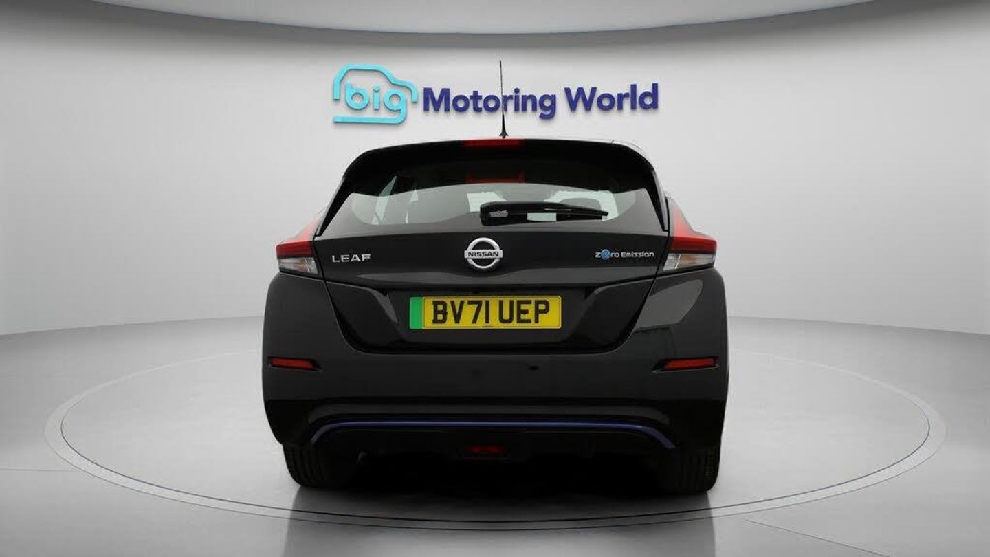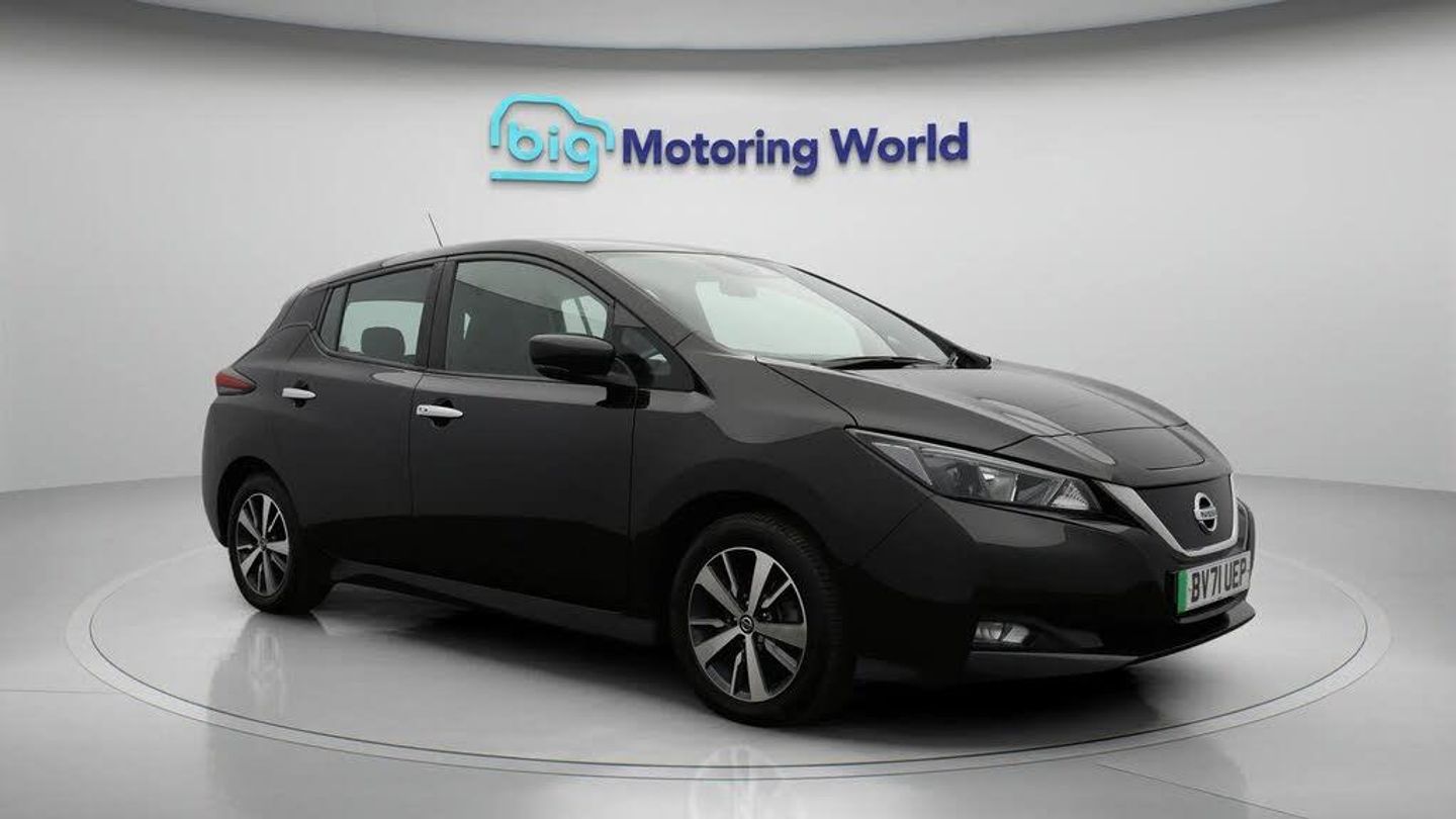 FREE £750 towards your finance-Our Nissan Leaf is finished in Black. Specification includes a range of fantastic features including FREE £750 towards your finance Deposit, Adaptive Cruise Control, Apple CarPlay, Android Auto, Rear View Camera, Blind Spot Assist, Cruise Control, Climate Control, Voice Control, DAB Radio Specification information is supplied by CAPHPI and may vary to the actual car. This data does not form any part of a buying contact. Please check specification prior to purchase in-store. The MOT is valid until October 2026, visit bigmotoringworld.co.uk for more photos, a 360 tour, service history and a free HPI report.Were BIG on peace of mind and this Black Nissan Leaf has completed our comprehensive 200 point inspection and passed all checks. Its ready for you to drive away with immediate collection in-store. We include a 90-day warranty as standard plus an option to extend for up to 3 years.Reserve this car exclusively for you, safely and securely at bigmotoringworld.co.uk, with a fully refundable £99 deposit. Test drive before you buy, with no commitment, no hassle and a completely haggle free experience. Still searching and want to see thousands more cars? We are BIG on choice with over 8000 cars to choose from.Visit our award winning web site bigmotoringworld.co.uk.Were Big Motoring World and were BIG on what matters to you.