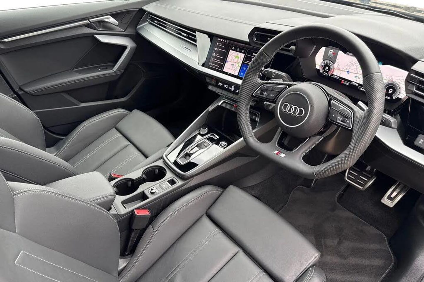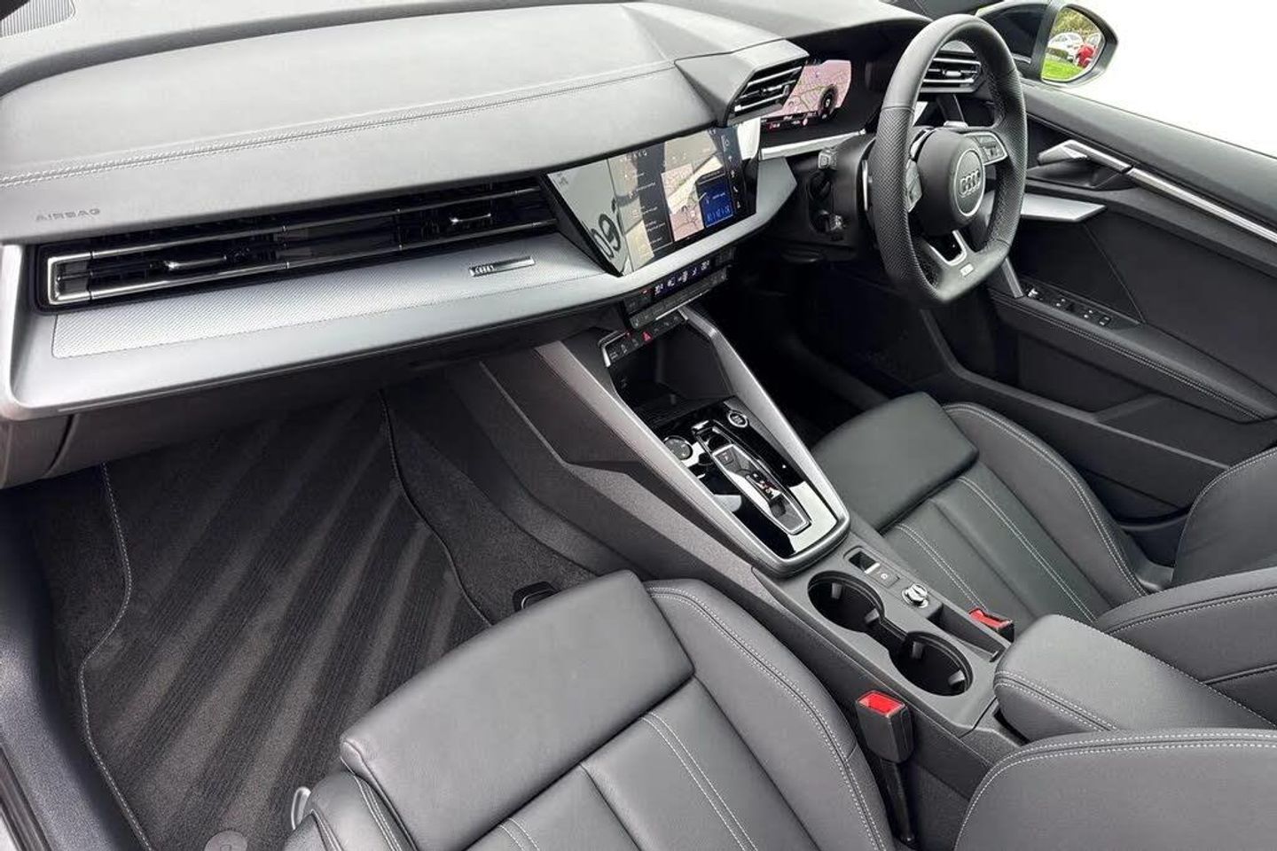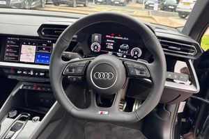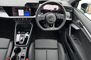 ;Stylish, dynamic, and built to impress, this Approved Used Audi A3 Sportback S line 35 TFSI finished in striking Mythos Black Metallic delivers a perfect combination of performance, technology, and everyday practicality. As part of the Audi Approved Used programme, this vehicle has undergone a thorough multi-point inspection and comes with a minimum 12-month Audi warranty, ensuring complete peace of mind. At its heart lies a responsive and efficient 1.5-litre TFSI petrol engine producing 150 PS, featuring cylinder-on-demand technology for enhanced fuel economy without compromising performance. Paired with a smooth-shifting transmission, the A3 Sportback offers an engaging and refined driving experience, whether navigating city streets or cruising on the motorway. The S line trim adds a sporty edge with distinctive design elements such as aggressive front and rear bumpers, sleek side skirts, and bold 18? alloy wheels. The deep Mythos Black Metallic paint accentuates the car?s sharp lines and athletic stance, making a strong impression wherever you go. Inside, the cabin blends luxury with cutting-edge technology. You?ll find S line sports seats upholstered in premium materials, a flat-bottomed multifunction steering wheel, and a driver-focused layout. The Audi Virtual Cockpit and MMI Navigation Plus provide intuitive digital displays and seamless connectivity with smartphone integration, keeping you connected and in control. Comfort and convenience features include dual-zon...