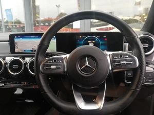 18" 5 twin spoke design alloy wheels painted in titanium grey with high sheen finish, Light and sight pack - CLA, Mirror pack - CLA, Parking package - CLA, Seat comfort pack - CLA, 10.25 inch touchscreen central media display, Apple CarPlay, Android Auto, 7 inch Instrument display with digital cockpit, AMG body styling with AMG front apron and rear apron and visible exhaust tailpipe in chrome trim elements, Rear parking sensor, DYNAMIC SELECT with a choice of driving modes (ECO, Comfort, Sport and Individual), MBUX multimedia system with DAB digital radio and touchpad including satellite navigation, Cruise control, Speed limiter, Steering wheel audio controls, Active lane keeping assist, Attention assist - Monitors steering behaviour and long journey fatigue, Bluetooth connection, ECO start/stop function, Speed limit assist, 7G-DCT 7 speed automatic transmission, Lowered comfort suspension, Mercedes Benz sound system (100 W) with 6 speakers, DAB digital radio tuner, Adaptive brake lights, 40:20:40 split folding rear seat backrests, Air conditioning - Two zone thermotronic luxury automatic climate control with display, Black roof lining, Galvanished gear shift paddles on steering wheel, Heated front seats, Sport seats with fixed head restraints, Two outer rear seat isofix and top tether child seat fixing points, Active bonnet pedestrain safety measure which detects an impact and raises bonnet by 65mm, Active brake assist includes forward collision warning system with autonomous braking, LED daytime running lights, LED Headlights