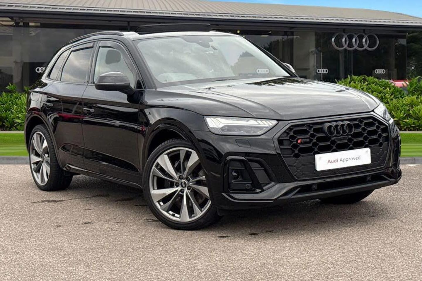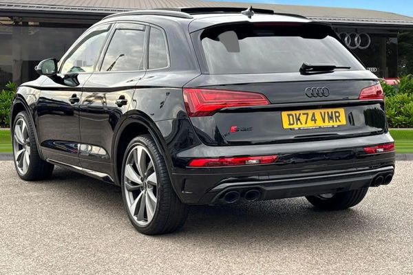 Panoramic / Sunroof, Alloys, Park Assist;We are pleased to present this Audi Approved used Audi SQ5 Black edition in Mythos Black with its 21" 5-twin spoke turbine design Audi sport alloy wheels which look superb out on the roads. The Matrix LED headlights with LED rear combination lights create that strong visibility in all weather conditions. This vehicle comes fitted with some brilliant optional extras, such as the Technology Pack pro which does include the Panoramic glass sunroof, perfect for those sunny days. It also includes the 360 degree camera, which maximises vision and assists in all maneuvering situations. Safety and convenience is increased with the head-up display, allowing the driver to keep their eyes on the roads. The heated front seats would be perfect for those cooler mornings. This Audi SQ5 also comes with the Bang and Olufsen 3D premium sound system for that excellent sound experience. The Audi phone box with wireless charging, makes fully charging or just topping up your phones battery on any journey, a breeze. ISOFIX child seat anchors are also fitted to this vehicle, making it the perfect choice for the whole family to enjoy. Thed multimedia interface allows you to access a range of different media, such as the driver assist which can be adjusted to your driving preference as and when required. Also accessible via the multimedia interface is the Audi Wireless Smartphone Interface, compatible with Android Auto and Apple CarPlay, keeping you connected on all journeys. The Audi drive selec...