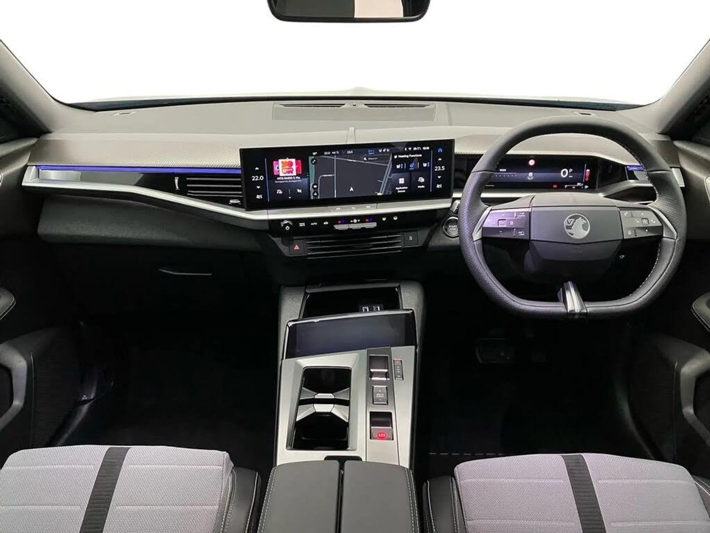 10" digital instrument cluster,16" multimedia navigation with wireless Apple Carplay/Android auto,Adaptive cruise control with Stop and Go,Central facia display with digital clock, outside air temperature and audio information,Digital fuel gauge with low fuel level warning light,Digital rev counter,Digital speedometer,Digital water temperature gauge with warning light,Drive mode selector (Eco, Normal, Sport),Driver drowsiness alert system,Driver information - Total mileage, service indicator, oil life,Electric power steering,Extended traffic sign recognition,Front and rear parking sensors,In-crash braking,Intelligent speed adaptation,Lane keep assist,Lights on audible warning,Manual tailgate,Multi function trip computer - Trip odometer, vehicle range, average speed and fuel economy, instantaneous fuel economy and driving time,Rear view camera,Speed sign recognition,Start/stop system,Vauxhall connect including Emergency call (SOS e-call) and Breakdown call (b-call),Wireless charger for mobile devices,Anti-roll bars,Compound crank rear suspension with coil springs and gas pressure dampers,Independent decoupled MacPherson strut front suspension with gas pressure dampers and coil springs,Stability control,2 rear USB-C sockets,6 speakers,AM/FM and DAB radio,Radio controls on steering wheel,Acoustic windscreen,Auto headlights,Automatic headlight beam levelling,Black door mirrors,Black grained wheel arch claddings,Black roof,Body colour door handles,Dark tinted rear windows,Electrically defrosting driver and passenger door mirrors,Electrochromic rear view mirror,Front illuminated griffin,Front wiper system spraying directly from wipers,Grained lower door claddings,High gloss black front and rear bumpers,High gloss black roof spoiler,Illuminated rear Vauxhall name plate,IntelliLux LED headlights with 3D illuminated vizor, welcome and farewell animation, 11 driving modes and adaptive high beam assist,Intermittent rear window wash/wipe,LED 3rd brake light,LED daytime running lights,LED tail lights,Magic wash,Power folding door mirrors,Power front and rear windows,Rain sensor windscreen wipers,Rear side wing doors,Rear wipers with camera cleaning,Soundproof insulated windscreen,Two speed windscreen wipers with variable intermittent wipe,Welcome lighting,10 way manual adjustable heated front seats with AGR approved with pneumatic lumbar support, cushion nose extension and power tilt,2 cupholders with slider,3 12V plugs,3 bench rear seats in 2nd row,3 spoke leather effect steering wheel with dimpling,7 colour ambient lighting,Automatic air conditioning,Bird cloth upholstery,Centre console armrest,Chrome effect interior door handles,Cooled glove box and central console storage with LED light,Dashboard and door panels polychromatic ambient lighting,Dual zone electronic climate control,Front and rear LED reading lights,Front door storage with 1.5 litre capacity,Front seat back storage pockets,Fully carpeted luggage area,Heated steering wheel,Height adjustable headrests,Illuminated vanity mirrors,Paddle shifts,Pixel storage in centre console with edge light technology,Rear armrest,Rear centre seat head restraint,Rear clothes hooks on B pillar trims,Single passenger seat,Sunglasses Box,Anti-lock braking system (ABS),Automatic emergency braking system,Child proof locks on rear doors,Deactivation switch for front passenger front and side impact airbags,Deflation detection system,Driver airbag,Dual seatbelt pretensioners on front seats,EBD - Electronic brakeforce distribution,Electronic parking brake,Front and rear ventilated discs,Front passenger airbag,Front seat side impact airbags,Full-size curtain airbags for driver and front passenger,Hill assist control,Hydraulic Brake Assist (HBA),Inertia reel lap and diagonal seatbelts for all seats,Load limiters on outer rear seatbelt retractors,Pretensioners on outer rear seatbelt retractors,Rear 3 point ISOFIX,Smart seatbelt reminder for front and rear seats,Tyre pressure monitoring system,Central locking,Deadlocking system,Electronically protected audio equipment,Engine deadlock immobiliser,Keyless entry and start,Locking wheel nuts,Remote security alarm system,Mistral dark ambience,19" Diamond cut alloy wheels,Tyre repair kit