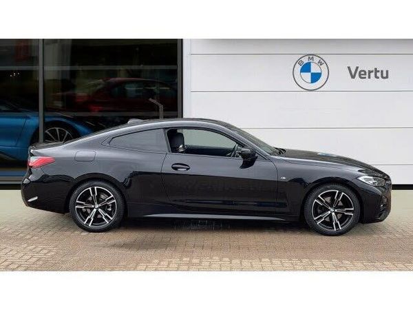 The 2023 BMW 4 Series 420i M Sport 2dr Auto is now available and ready to test drive at Vertu BMW Teesside. Finished in sleek Black Sapphire Metallic and complemented by 18 alloy wheels, this coupe perfectly balances sporty performance with refined style. Equipped with the M Sport Package, this 4 Series features dynamic M Sport suspension, bold M Sport exterior styling, and an M Sport rear spoiler that enhances both appearance and aerodynamics. The interior is equally impressive, with sun protection glass, ambient lighting, folding wing mirrors, and front heated seats adding both comfort and practicality. Additional highlights include front LED foglights, Parking Assistant for effortless manoeuvring, cruise control for relaxed motorway driving, and BMWs Live Cockpit Professional for seamless access to navigation, media, and vehicle data. At Vertu BMW Teesside, our experienced sales team is here to support you through every step of your car buying journey. We begin with a detailed, personalised video presentation, tailored to highlight the features that matter most to you. When you buy an Approved Used BMW from us, you benefit from a thorough preparation process completed by BMW-trained technicians, along with 12 months warranty, 12 months roadside assistance, 12 months MOT, and a full BMW service history for added peace of mind. Contact us today to arrange your test drive or request your bespoke video presentation of the 2023 BMW 4 Series 420i M Sport.
