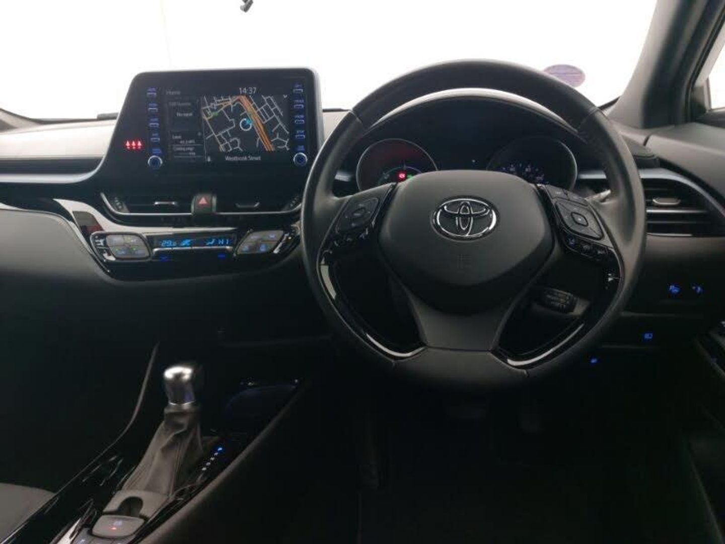 Touch 2 Go navigation system, Reversing camera, Adaptive cruise control, Voice recognition, Road sign assist - RSA, Lane departure alert with steering control, Hybrid system indicator, Bluetooth connectivity, 4.2" coloured TFT screen for multi-information display, 18" Alloy Wheels, Toyota touch 2 multimedia system with 8" display, DAB Radio (Digital Audio Broadcasting), Automatic headlights, Automatic headlights cut-off, Auto wipers, Auto up and down function on all power windows, Auto high beam, LED daytime running lights, Audio and telephone switches on steering wheel, Dual zone automatic air conditioning, Heated driver and front passenger seats, Parking sensor pack - C-HR