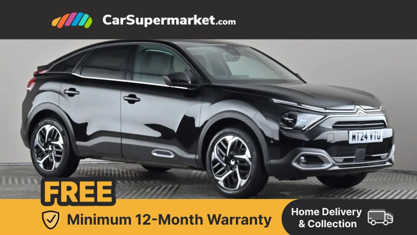 5.5 inch backlit full TFT driver's instrument cluster with LED ambient lighting,Active blind spot detection,Apple car play and Android auto,Citroen connect box emergency and assistance system,Citroen Smart Pad Support - integrated support for attaching a tablet computer for front passenger,Driver's head-up display,Electronic Power Steering (EPS),Front, rear and lateral parking sensors,In-crash braking,My Citroen Drive Plus: 10" high-resolution touchscreen user interface, controlling media, connectivity, vehicle settings + connected nav,Speed limiter,Tailgate,Voice commands,Advanced comfort suspension - double hydraulic stops on front and rear suspension,6 speakers,Bluetooth telephone and audio streaming,DAB Digital radio,3rd brake light,Automatic headlights,Body colour bumpers,Body colour door handles,Boot spoiler,C-Series badging on front wing,Dark tinted rear windows and side windows with chrome detail,Electrically heated, folding and adjustable external rear view mirrors with courtesy lighting,Electrochrome interior rear-view mirror with automatic day-night switching,Front and rear electric windows,Gloss black rear skirt,Intelligent beam headlights,LED daytime running lights in V signature,LED front fog lamps with static cornering function,LED front headlamps,Perla Nera black painted external rear view mirrors,Rain sensing automatic front windscreen wipers,Rear side wing doors,Rear wiper,Shark fin roof aerial,Welcome and goodbye lighting,12V power outlet, 1x USB Type-C socket & data connection, 1x USB Type-A socket at 1st row + 1x USB Type-A socket , 1x USB Type-C socket in 2nd row,3 rear headrests,3 seat bench in 2nd row,Alcantara and black leather effect textile seats,Boot light,Dashboard tray in front cabin,Deluxe leather steering wheel with two command blocks,Driver and passenger sunvisors with illuminated vanity mirrors,Dual zone automatic air conditioning,Electrically heated front seats,Front and rear LED interior lighting,Front head restraints,Heated steering wheel,Height adjustable driver's seat with adjustable lumbar support,Height adjustable front passenger seat,Height and reach adjustable steering wheel,Map pockets in rear of front seats,Raised centre console with armrest and two cup holders,Rear central folding armrest with cupholders and ski hatch,Single front passenger seat,Split folding rear seats,Two position boot floor,XXL storage in front cabin,High level acoustic insulation pack - C4/C4 X/e-C4 X,Safety pack plus - C4/C-Series Edition/Max,3x3 point rear seatbelts,ABS,Driver and front passenger airbags,Electric parking brake,ESP,Front seatbelt pretensioners,Hill start assist,Manual child lock in second row,Manual deactivation of front passenger airbag,Row 1 and 2 curtain airbags,Row 1 side thorax airbags,Seatbelt unfastened on the move warning,Tyre underinflation detection,Anti-theft alarm (volumetric protection),Immobiliser,Keyless entry and start,Remote locking with deadlocks,18" Bi-tone diamond-cut aeroblade alloy wheels with anti-theft locking wheel nuts,Puncture repair kit with compressor