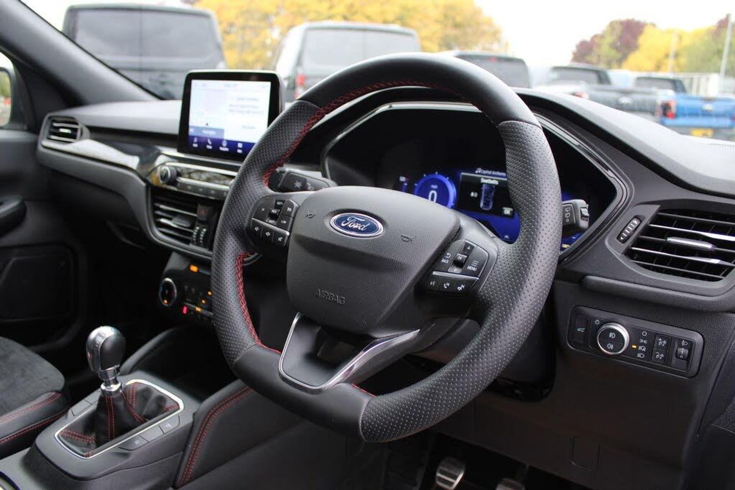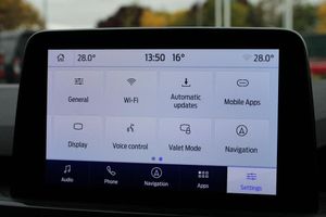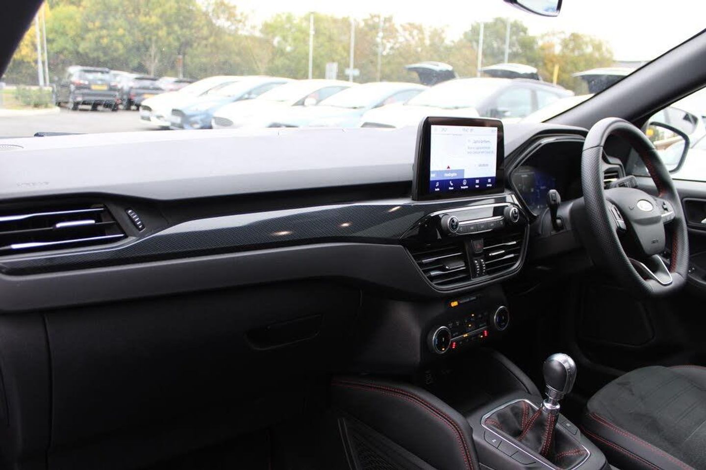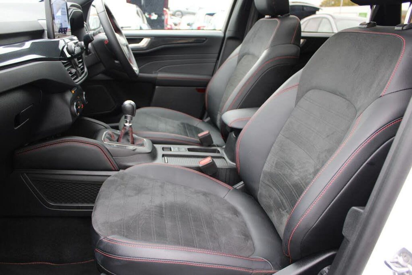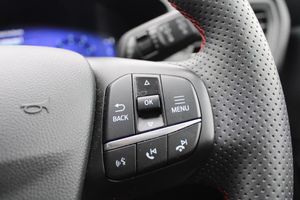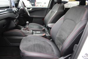 12.3" digital colour instrument cluster, Ford easy fuel, Ford SYNC 3 with 8" TFT LCD touchscreen, App Link, andriod auto/apple carPlay, emergency assistance and navigation with Ford pass connect, Front and rear parking sensors, Hands free power tailgate, Lane keeping aid with lane departure warning, Power assist steering, Rear view camera, Selectable drive modes, Service interval indicator, BO premium audio system with 10 speakers and subwoofer, 2 USB ports, DAB radio/CD, Auto headlamps with high and low beam, Black roof rails, Body colour bumpers, Day/night rear view mirror, Front LED fog lamps, Large rear roof spoiler, LED daytime running lights, LED rear lights, Power folding, electrically adjustable and heated door mirrors with puddle lights, Power front/rear windows with global close, Power opening panoramic roof, Quickclear heated windscreen, Rain sensing wipers, Rear privacy glass, Rear side wing doors, Rear wiper, ST Line body styling kit with unique front and rear fascia and bumper, rear painted diffuser, front painted skid plates, dark mesh upper grille, ST Line front scuff plates, Third brake light, Twin exhausts, 2nd row sliding seats with 60:40 split, Alloy pedals, Centre console with electronic parking brake, Dark headlining and pillars, Electronic automatic temperature control (EATC), Flat bottomed leather steering wheel in sensico with red stitching, Front and rear head restraints, Heated passenger and driver seats, Heated rear seats, Heated steering wheel, Partial premium touch Sensico with black cloth inserts and red stitching, Rear centre head restraint, Single front passenger seat, Sports seats, ST Line front and rear floor mats, ST Line gear knob, Engine immobiliser, Keyless entry and Ford power start button (Keyless start), Locking wheel nuts, Remote powered central double locking doors, Thatcham category 1 alarm, Partial Sensico - Rapton Cloth - Black with Red Stitching