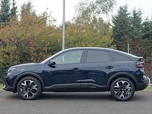 My Citroen Drive Plus: 10" high-resolution touchscreen user interface, controlling media, connectivity, vehicle settings + connected nav, Apple car play and Android auto, Electrically heated front seats, Dual zone automatic air conditioning, Active blind spot detection, 7 inch backlit full TFT driver's instrument cluster, Driver's colour head up display, 18" Bi-tone diamond cut Amber alloy wheels orbital black and Aluminium with anti-theft locking wheel nuts, Front, rear, lateral parking aid plus, LED front headlamps, Rain sensing automatic front windscreen wipers, Heated steering wheel, Keyless entry and start, DAB Digital radio, Bluetooth telephone and audio streaming, Advanced comfort suspension - double hydraulic stops on front and rear suspension, High level acoustic insulation pack - C4/C4 X/e-C4 X, Safety pack plus - C4/C-Series Edition/Max, Electrically heated, folding and adjustable external rear view mirrors with courtesy lighting, Electrochrome interior rear-view mirror with automatic day-night switching, Tinted front side windows, dark tinted rear side, rear quarter and tailgate windows with matt black detail, Hill start assist, Electric parking brake, Tyre underinflation detection