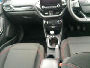 17in Alloy Wheels - 5x2 Spoke - Black Machined Finish, ABS - Anti-lock Braking System, Acoustic Laminated Windscreen, Active Grille Shutter, Alloy Sports Pedals, Automatic Headlights with Rain-Sensing Wipers and Auto High Beam, Centre Console with Armrest - Stowage, Courtesy Lights - Ambient LED Courtesy Lighting - Single Colour, Cruise Control - Lane Keeping Aid and Lane Departure Warning, Driver Seat Lumbar and Height Adjustment, EBA - Emergency Brake Assist, ESC - Electronic Stability Control and Hill Start Assist, Electric Windows - Front and Rear, Floor Mats - Front and Rear, Ford Easy Fuel System, Ford MegaBox Extended Bootspace, Ford SYNC 3 Navigation, Front Bumper - Unique ST-Line Sport Design - Body Colour, Front Fog Lights with Cornering lights and LED Rear Lamps, Full Digital 12.3in Instrument Cluster, Headliner - Deluxe, Instrument Panel - High Level, Locking Wheel Nuts, Lower Bodyside Moulding - Body Colour, Manual Air Conditioning, Post Collision Braking, Power Steering, Power-Foldable Heated Door Mirrors with Puddle Lamps, Pre-Collision Assist with Autonomous Emergency Braking and Pedestrian-Cyclist Detection, Projector Headlamps with LED Daytime Running Lights, Puma Badge, Quickclear Heated Windscreen, Rear Bumper Body Colour - Diffuser, Rear Parking Sensors, Rear Seats - 2-Way Head Restraint Up-Down, Rear Seats - Second Row 60-40 Folding Seats, Restrain Device Pack, ST-Line Badge, ST-Line Bodykit with Large Rear Spoiler and Sports Suspension, ST-Lined Flat-Bottomed Leather Steering Wheel - Leather Handbrake and Aluminium Gear Knob, Selectable Driving Modes - Normal - Eco - Sport - Slippery and Trail, Speed Limiter, Thatcham Alarm, Traction Control - TC, Trip-Fuel Computer, Tyre Inflation Kit, Tyre Pressure Monitoring System - TPMS, Tyre Repair Kit, Wireless Charging, Cloth - Ebony with Red Stitching