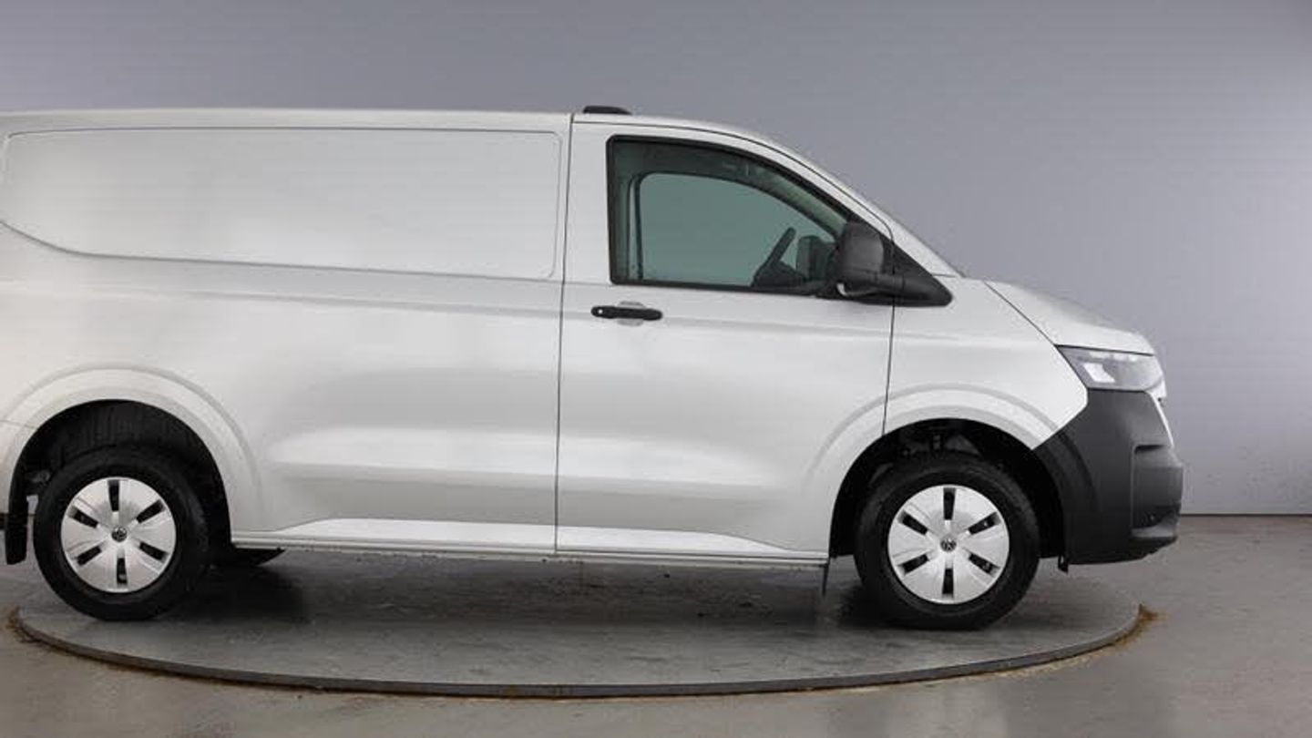 Metallic - Light grey, Heat reflecting side window glass, Body coloured door handles, Mud flaps front and rear, Rear Transporter nameplate in black grained decorative trim, Vehicle opening configuration 1x 1st row of seats, 2x all doors, Electronic stability control, ABS, ASR with deactivation button, hill start assist and brake assist system, Cruise control, Electromechanical speed sensitive power steering, height and longitudinally adjustable steering column, Wrong way driver warning, Driver and front passenger airbag with front passenger airbag deactivation, Dual tone horn, Seat belt pretensioner for driver seat, Apple CarPlay and Android Auto, 4 speakers - 2x dashboard, 2x cab doors, 12 digital drivers display, 13 touchscreen infotainment display with wireless app connect and DAB radio, Dynamic road sign display, Preparation of VW connect and connect plus, 2x 15-W USB data/charging ports in dashboard and 1x USB-C, 1x USB-A center bottom, 3 spoke leather wrapped multi function steering wheel, Black plastic scuff plate for sliding door in cargo without illumination, Leatherette gear lever, Roof grab handle on front passenger side, Striped fabric upholstery, Cabin interior lighting, 2x LED lights in load compartment, Without passenger seats in load compartment, 4 way height and tilt adjustable head restraints, Anti theft alarm system with interior monitoring in cab, backup horn and towing protection, Electronic immobiliser, Preparation for alcohol ignition interlock, 5+ Promise, [Audio and Communications]eCall emergency system, [Drivers Assistance]Lane assist, [Interior]5G Modem, Narrow centre console with cup holder and compartment for mobile phone, Overhead storage compartment, Rubber floor covering in cab, Lashing rings for reinforced floor covering, [Performance]Alternator - 230A, [Safety and Security]Front and curtain airbags for driver and front passenger