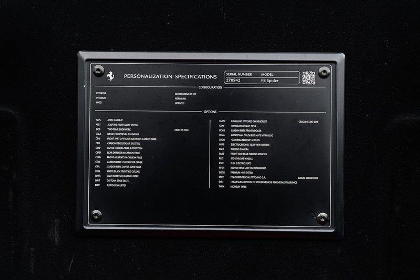 2021 (71 Reg) Ferrari F8 Spider | Finished in Rosso Corsa with Nero Leather Interior | 20inch Standard Chrome Rims | Nero DS Two-Tone Bodywork | Brake Calipers in Alluminio | Front Part of Front Bumper in Carbon Fibre | Carbon Fibre Side Air Splitter | Outer Carbon Fibre B-Post Trim | Rear Diffuser in Carbon Fibre | Front Air Vents in Carbon Fibre | Carbon Fibre Underdoor Cover | Carbon Fibre Driver Zone + LEDS | Carbon Fibre Front Spoiler | Dash Inserts in Carbon Fibre | Suspension Lifter | JBL Premium Hi-Fi System | Apple CarPlay | Adaptive Frontlight System | Parking Camera | Front and Rear Parking Sensors | Full Electric Seats | Matt Black Front Lid Collar | Daytona Style Seats | Titanium Exhaust Pipes | Scuderia Ferrari Shields | Electrochromic Rear View Mirror | Red Air Vent Grip on Dashboard | Grigio Scuro Coloured Special Stitching | Grigio Scuro Cavallino Stitched on Headrests | Additional Coloured Mats with Logo.Full Paint Protection Film (PPF) Applied