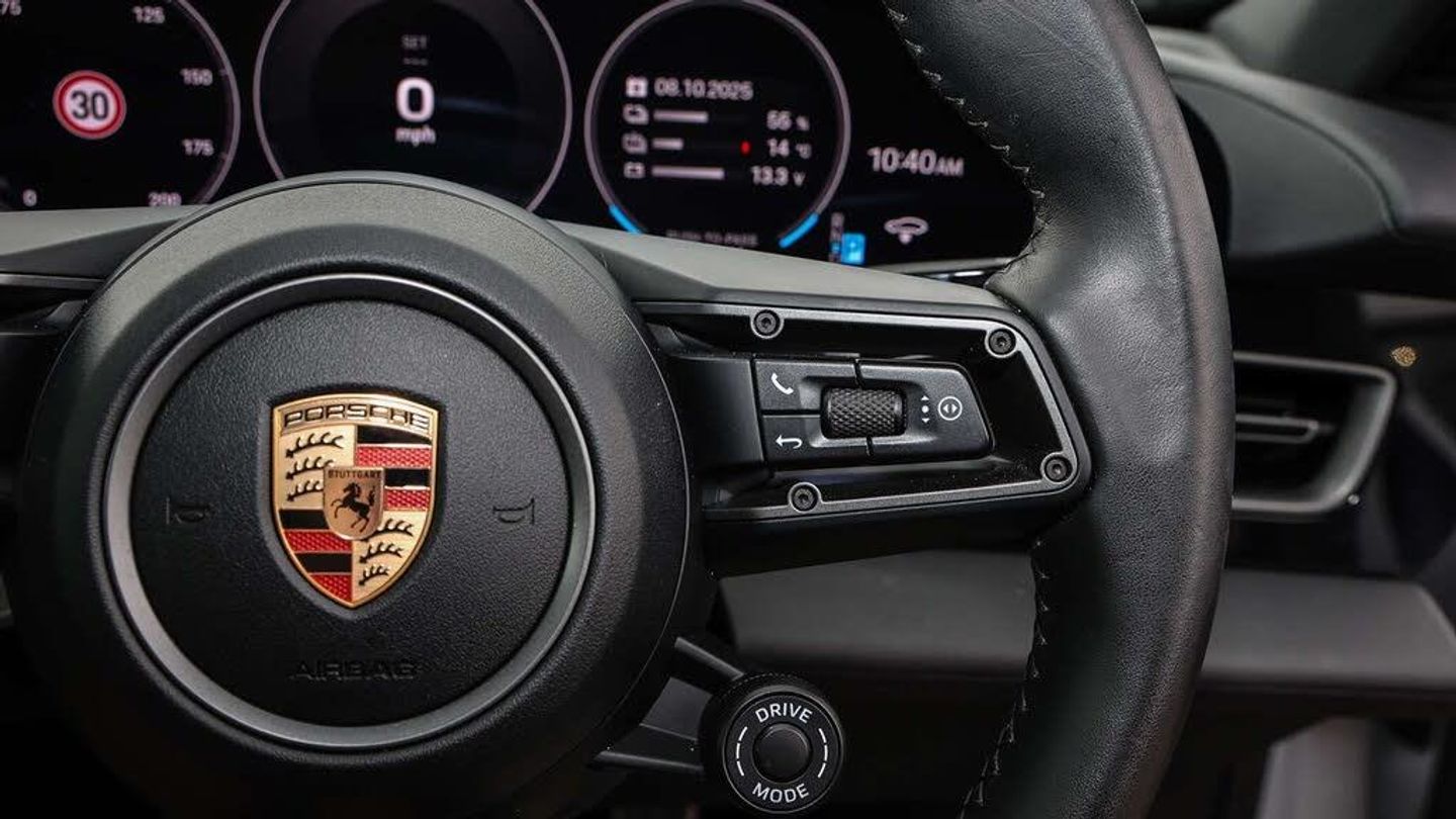 Features:Side window trims in black (high-gloss) (QJ4), Deletion of model designation (0NA), Performance Battery Plus (J9Q), Sport Chrono Package with Push-to-Pass (8LD), Porsche Electric Sport Sound (GM3), Wheels painted in satin black (1NX), 21-inch RS Spyder Design wheels (48D), Porsche Crest on Headrests (Front and Outer Rear Seats) (5ZF), 41 Seats (5KA), BOSE® Surround Sound System (9VL), Panoramic Roof (3FG), Privacy glass (VW1), Preparation for Porsche Dashcam Front and Rear (QK3)