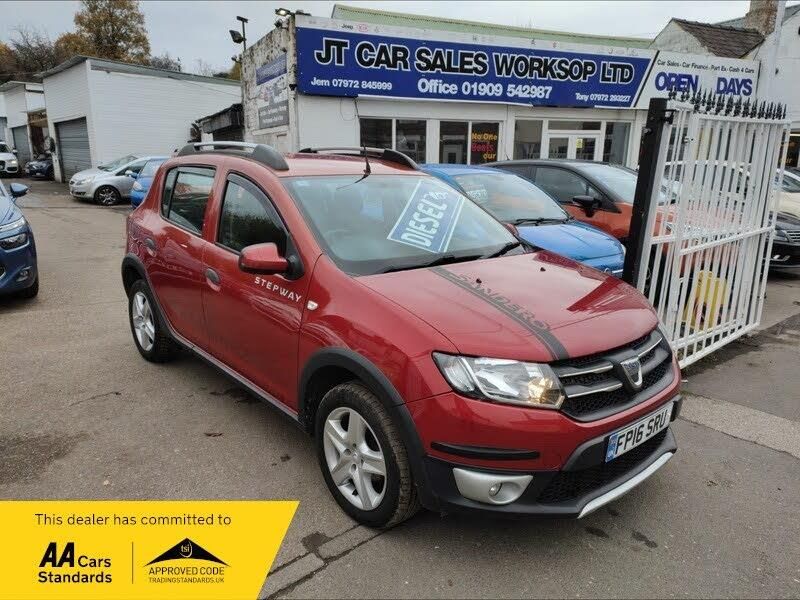 This 2016 Dacia Sandero Stepway dCi Laureate is a rare find, having had only two owners from new and boasting a clear vehicle history check. This Euro 6 compliant 1.5L diesel engine is presented in the Laureate trim, offering a manual air conditioning system for your comfort. Inside, you'll find a radio with 24 AM-FM presets and a branded Arkamys sound system, alongside Bluetooth connectivity for seamless audio streaming and calls. For added convenience, rear parking sensors are fitted, and the Comfort Pack enhances the overall driving experience., , The Dacia Sandero Stepway excels with its impressive 74 mpg fuel economy, making it an economical choice for your journeys. Its low CO2 emissions are also a significant benefit, contributing to lower road tax. Furthermore, this model sits in a low insurance group, which can help reduce your running costs. You'll also appreciate the generous boot space, providing ample room for shopping or luggage, making this Sandero Stepway a practical and cost effective option., , Dacia Sandero Stepway 1.5 dCi Laureate Euro 6 (s/s) 5dr - in good working order, lovely overall condition, one lady owner, serviced every year, recent timing belt replacement, low tax and insurance groups, High MPG, all docs / handbooks with car, upgraged sound system unit, , Next MOT due 13/04/2026, Excellent bodywork, Interior - Clean Condition, Tyre condition Good, 5 seats, Red, 1 owner, Upgrades - Comfort Pack, Emergency Spare Wheel, Standard Features - 12V Power Socket, 16in Steel Wheels - Stepway Design, 7in Touchscreen Multimedia System, ABS - Anti-lock Braking System, ASR - Traction Control, AUX Input, Air Recirculation - 4-speed Heating and Ventilation, Air Vents - Chrome Surrounds, Airbags - Driver, Airbags - Front Passenger, Airbags - Front Passenger Deactivation, Airbags - Front Side, Anti-intruder Automatic Door-locking System, Bluetooth Connectivity, Bumpers - Front and Rear Upper Section - Body Coloured, Central Console Surround - Graphite, Central Locking - Remote, Child Locks in Rear Doors, Chrome Front Grille, Chrome Heating Control Inserts, Cruise Control and Speed Limiter, DRL - Daytime Running Lights, Door Handles - Black, Door Handles - Interior Front - Graphite, Door Handles - Interior Rear - Black, Door Mirrors - Body Coloured, Door Mirrors - Heated and Electrically Adjustable, Door Open - Visual Warning, Door Panels - Dark Carbon, Driver and Front Passenger Seat Belt Unfastened - Visual and Audible Warning, EBA - Emergency Brake Assist, ECO Mode, ESC - Electronic Stability Control, Electric Windows - Front, Front Courtesy Light, Front Fog Light - Satin Chrome Surrounds, Gear Knob - Leather, Gear Shift Indicator, Headlights - Single Optic with Chrome Surrounds, Headlights Left On - Audible and Visual Warning, Headrests - Rear Height Adjustable x3, Height-Adjustable Drivers Seat, Height-Adjustable Front Headrests, Height-Adjustable Steering Wheel, High Level Third Brake Light, ISOFIX Points for Child Seats in Both Outer Rear Seats, Instrument Dial Surrounds - Chrome, Luggage Compartment - Light, Manual Air Conditioning, Map Pockets on Front Seatbacks, Outside Temperature Gauge, Power Assisted Steering, Radio with 24 AM-FM Presets and Sound by Arkamys, Raised Ride Height, Rear Parking Sensors, Rear Passenger Grab Handles, Roof Bars - Satin Chrome, Satellite Navigation - MediaNav 7in Touchscreen Multimedia System, Scuff Plates - Front and Rear - Satin Chrome, Seats - 60-40 Split Folding Rear, Side Sills - Black, Speakers - x2 - Front, Speakers - x2 - Rear, Steering Column Mounted Fingertip Controls, Steering Wheel - Chrome Logo Surround, Steering Wheel - Graphite Lower Insert, Stepway Logo on Front Door Panel, Sunvisor with Vanity Mirror - Passenger, Thatcham Approved Engine Immobiliser, Tinted Windows, Trip Computer - 7 Function, Tyre Inflation Kit, Tyre Pressure Monitor, USB Connection for MP3 Players, Wheelarch Extensions - Black, JT Car Sales Worksop LTD is a family run business Est in 2014. Selling quality used cars at affordable prices, we offer Warranty Wise and Finance on all our vehicles - We can finance cars at any prices, please ask office for more details - FINANCE AVAILABLE, we take in part exchange towards any of our cars, we are a AA dealer approved company, we make sure all our cars come with a minimum 6 months mot, test drive / inspection welcome any time, HPi report can be requested on any vehicles, we aim to provide the best service possible - we help all our customers in office to complete all docs at the point of sale and can help with insurance if needed, All list if stock vehicles can be find on our profile page / website - you can find us on 118 Gateford road, Worksop, s80 1ue, car 55 fp16sru