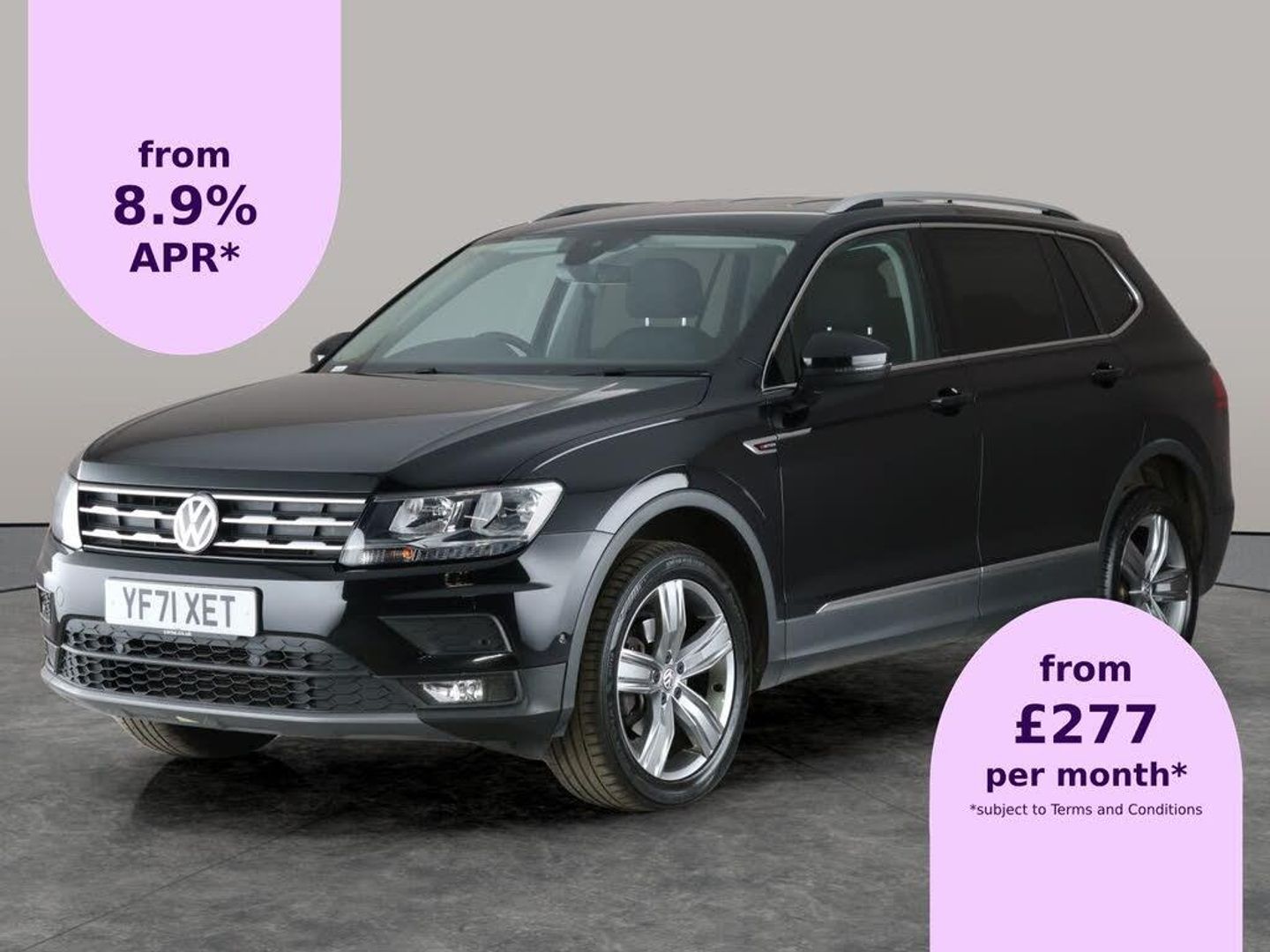 This sleek black Volkswagen Tiguan Allspace is packed with fantastic features for a comfortable and connected drive. Enjoy Adaptive Cruise Control, Discover Navigation, Apple CarPlay, and an intuitive Park Assist with a Reversing Camera. Stay safe with the Lane Departure Warning System and make parking a breeze with front and rear sensors. The dual zone digital climate control keeps everyone comfortable, and with paddle shift and selectable driving modes, your journeys are always enjoyable. Experience versatile and refined SUV driving with Bluetooth audio and seamless app connectivity. 3 services recorded, last serviced on 23/09/2025 at 53,850 miles. MOT to 24/09/2026. Visit our website for service history, online valuation, full vehicle specification plus multiple images. This vehicle is VAT qualifying. Any feature/option specified here is from 3rd party data. We cannot guarantee the accuracy of any specification supplied by a 3rd party. We recommend that you physically check the specification of the vehicle on site prior to purchase. This information does not form part of the buying contract. Terms & Conditions apply. We have over 2,000 cars available from our 10 national branches, check our website to see all our stock. Our Trustpilot rating is 4.4/5 with over 9,000 reviews.