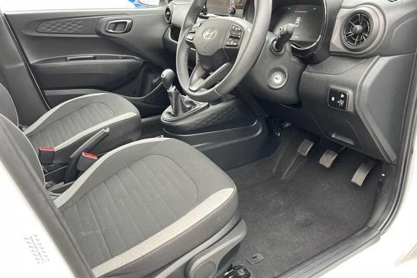 12.5 touchscreen centre console display audio with navigation, mapcare and live services,Apple car play/Android Auto,Bluelink mobile remote connectivity,Bluetooth connectivity with voice recognition,Cruise control,Driver attention alert system,eCall emergency call system,Forward Collision-Avoidance Assist (FCA) - Pedestrian/Cyclist,Front USB-C charging and USB-A data,Full-width 4.2 LCD instrument cluster,Intelligent speed limit assist,Lane departure warning system with lane keep assist - LKAS,Lane follow assist,PAS,Rear parking sensors,Rear view camera with guidelines,Roadside assistance,Start/Stop function,Tailgate,Trip computer,2 front/2 rear speakers,Rear USB-C device charger,Steering wheel audio, phone and cruise controls,1 speed non intermittent rear windscreen wiper,Black finish on B pillars,Body colour door handles,Body coloured bumpers,Body coloured door mirrors,Electric front windows,Electric rear windows,Electrically adjustable and heated door mirrors,Flat metal emblem,Front grille in matte black,Front intermittent wipers,Halogen daytime running lights,Halogen headlights,Headlights inner with Black Blade design,Heated rear window,High beam assist,Indicator light on door mirrors,Rear roof spoiler with integrated LED brake light,Rear side wing doors,12v power outlet - front,3 seat bench in 2nd row,60/40 split folding flat to floor rear seats,Air conditioning,Auto light control,Bottle holders in front/rear doors + front centre console,Cabin and luggage compartment interior lighting,Cloth upholstery,Driver + passenger vanity mirrors,Driver\u0027s seat height adjustment,Driver/passenger sunvisors with ticket holders,Floor mats,Front door pockets,Front Head Restraints - Vertical and Horizontal Adjustment,Glove compartment,Height adjustable steering column,Isofix child seat preparation,Leather multifunction steering wheel,Rear door pockets,Single front passenger seat,Vertical adjustment rear head restraints,3x3 point rear seatbelts,Airbags - front, front side and curtain airbags,Anti-lock brake system (ABS),Autonomous emergency braking (AEB) with forward collision warning system,Brake assist function,Childproof rear door locks,Electronic stability control,Front and rear seatbelt reminder,Front seatbelt pretensioners,Hill start assist control (HAC),Passenger airbag deactivate switch,Traction control,Tyre pressure monitoring system,Immobiliser,Perimeter alarm,Rear occupant alert,Remote central locking,Second remote key,Speed sensitive auto door locking,15 Alloy wheels,Tyre repair kit