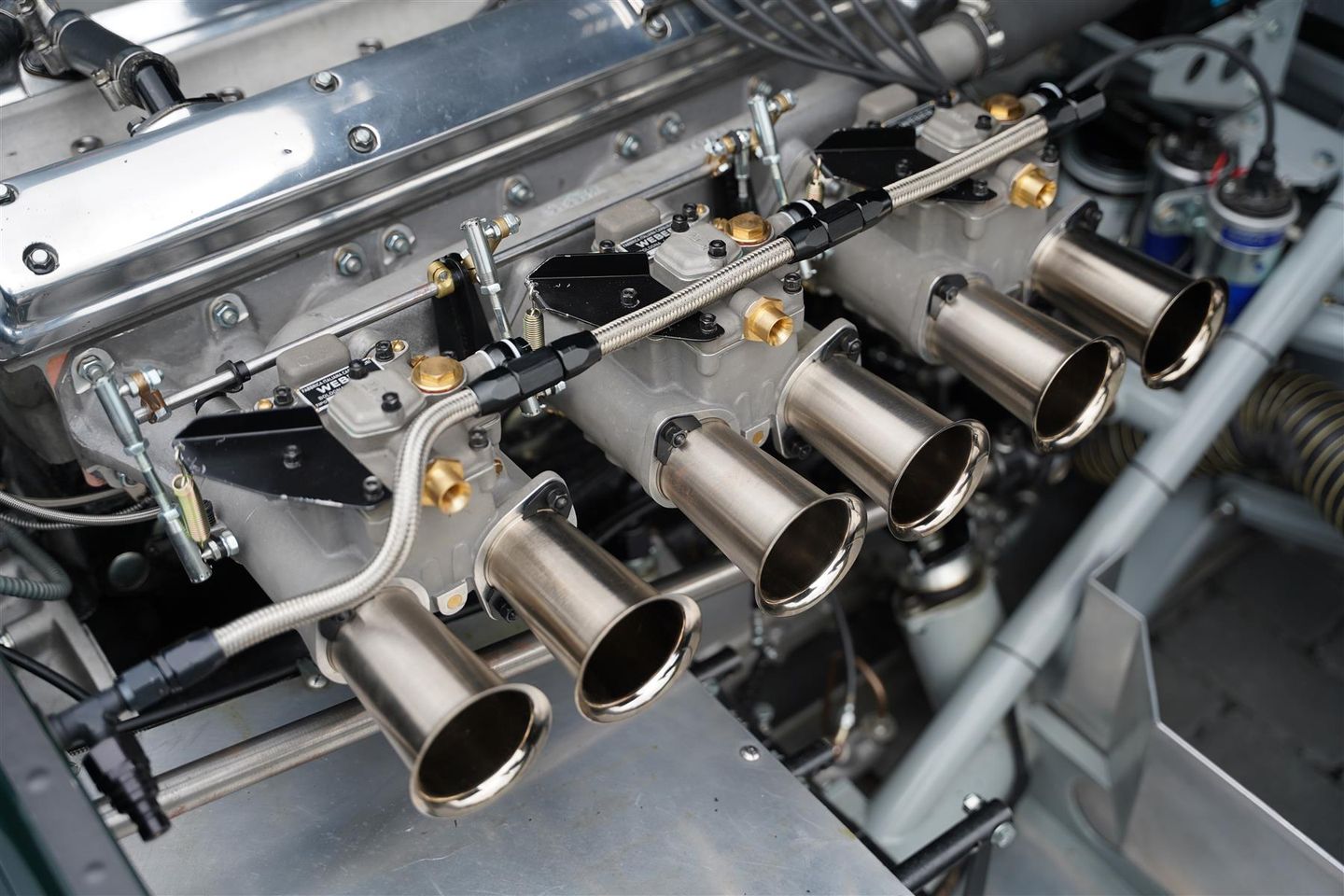 Upon completion of the body and chassis the car was delivered to Riedling and Mouser, leading historic Jaguar racing engineers. The car was built to a top, competitive racing specification which included a purpose built 325bhp (at the wheels) engine and period correct 45 DCO3 Triple Weber carburettors. Fresh FIA HTP papers were granted which remain valid until 2027.