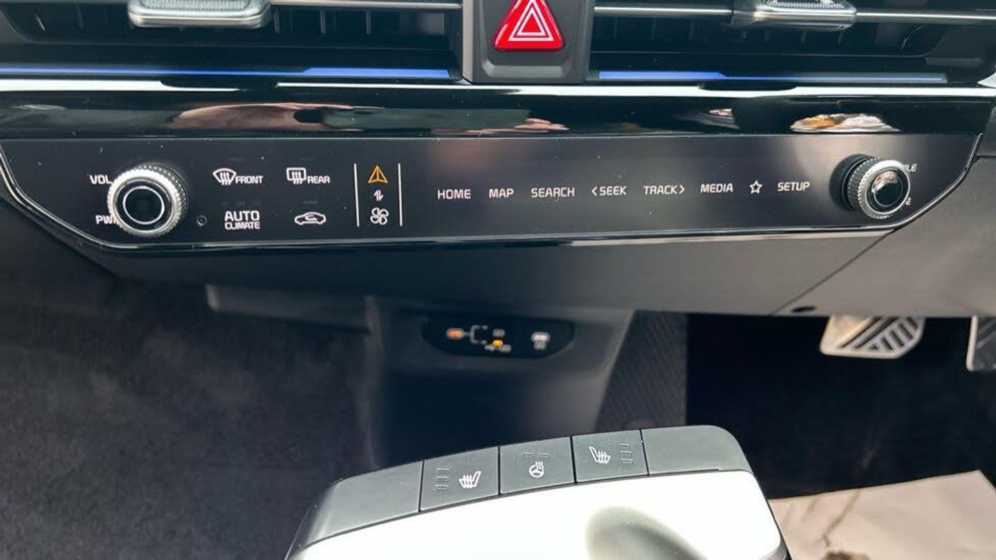 12.3in Curved Driver Display Screen, 12.3in Curved Touchscreen Navigation, 12V Front and Luggage Compartment Power Socket, 19in Alloy Wheels, 2x Front USB-C Charge Port, 3-Spoke GT-Line Artificial Leather Steering Wheel, 6-Speaker Audio System, 60-40 Split Remote Folding Rear Seats, Airbags - Curtain, Airbags - Rear, Airbags - Side, All-Round 3-Point Seatbelts, All-Round Height Adjustable Headrests, Anti-Lock Braking System with Emergency Stop Signalling, Auto Dimming Rear-View Mirror, Automatic Air Conditioning, Automatic Defog System, Automatic Headlight Control, Blind-Spot Collision Avoidance Assist, Bluetooth Connection, Body Coloured Exterior Flush Door Handles, Centre Console with Storage Box, Customisable Ambient Lighting, Customisable Automatic Door Locking, Customisable Automatic Door Unlocking, Drive Mode Select, Driver Attention Warning - DAW, Dual LED Headlights with Adaptive Driving Beam, Dynamic Brake Control - DBC, ESC - Electronic Stability Control, Electric Drivers Seat Adjustment with Memory Function, Electric Drivers Seat Lumbar Support, Electric Front Passengers Seat Adjustment, Electric Front Passengers Seat Lumbar Support, Electric One-Touch Front Windows, Electric Parking Brake with Auto Hold Function, Electrically Folding-Adjustable and Heated Door Mirrors with LED Indicator Lights, Forward Collision-Avoidance Assist 1.5, Free 7-year Kia Connect Services, Front Airbags, Front Passenger Airbag Cut Off Switch, Front Relaxation Seats, Front and Rear Door Storage, Frunk, Frunk LED Lights, GT-Line Exterior Styling, GT-Line Interior Styling, Gloss Black Door Mirrors, Glovebox with Illumination, Heated Front Seats, Heated Rear Window, Heated Steering Wheel, Height Adjustable Front Seatbelts, High Gloss Black Beltline, High Gloss Black Door Garnish with Body Colour Wheel Arches, Highway Driving Assist - HDA 1.0, Hill-Start Assist Control - HAC, ISOFIX Child Seat Top Tethers and Anchor Fixings Rear, Intelligent Speed Limit Assist - ISLA, LED Daytime Running Lights, LED Front Cabin and Rear Lights, LED Luggage Compartment Lights, LED Rear Fog Lights, LED Rear Lights, Lane Follow Assist 2.0 with Hands-On Detection, Lane Keep Assist - LKA, Locking Wheel Nuts, Luggage Board, Luggage Compartment - Load Cover, Luggage Net Hooks, Manual Child Lock, Manual Steering Wheel Adjustment, Metal Paint Interior Door Handles, Over-The-Air - OTA - Functionality, Parking Sensors - Front and Rear, Pedals - Alloy, Privacy Glass - Rear Windows and Tailgate, Rain Sensing Front Wipers, Rear Centre Armrest with Cupholders, Rear Occupant Alert, Rear Passenger USB-C Charging Ports x 2, Rear Spoiler, Regenerative Braking Paddle Shifters with iPedal Functionality, Reversing Camera System, SEW - Safe Exit Warning, Seatbelt Reminder Warning, Ski Hatch, Smart Cruise Control with Stop and Go Functionality, Smart Key with Motion Sensor, Solar Glass Windscreen, Start-Stop Button with Smart Entry System, Sunvisors with Illuminated Vanity Mirror - Driver and Front Passenger, TMK - Tyre Mobility Kit, Thatcham Category 1 Security Alarm and Immobiliser with Interior Protection, Tyre Pressure Monitoring System - TPMS, USB-C Port for Media Device Connection, VSM - Vehicle Stability Management, Vehicle-2-Load - V2L Capability, Visible Vehicle Identification Number - VIN, Wireless Apple Carplay and Android Auto, Wireless Mobile Phone Charger, eCall System