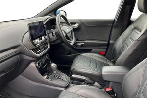 Driver Assistance Pack, Panorama Roof - Openable, Handsfree Power Tailgate, Premium Sensico - Black with Metal Grey Stitching, 18in Alloy Wheels - Unique 5x2-Spoke - ST-Line Vignale, ABS - Anti-lock Braking System, Acoustic Laminated Windscreen, Active Grille Shutter, Automatic Dimming Rear View Mirror, Automatic Headlights with Rain-Sensing Wipers and Auto High Beam, B&O Premium Audio System and Ford SYNC 3 Navigation, Brighter Upper Door Frame Mouldings, Carbon-Look Interior Deco Spears, Centre Console - Premium with Openable Stowage Area with USB Connectivity - 2 Cupholders and 12v Power Point, Courtesy Lights - Ambient LED Courtesy Lighting - Single Colour, Cruise Control with Intelligent Speed Assist, Drivers Manual 4-Way Seat Adjustment with Manual Lumbar Adjust, ESC - Electronic Stability Control and Hill Start Assist, Ecoboost Hybrid Tailgate Badge, Electric Windows - Front and Rear, Electronic Air Temperature Control - EATC, Emergency Brake Warning - Automatic Hazard Warning Lights, First Aid Kit Strap, Fixed LED Signature Headlamps, Floor Mats - Front and Rear, Ford KeyFree System, Ford MegaBox Extended Bootspace, Ford Power Starter Button, Front Bumper - Unique ST-Line Vignale Design - Body Colour, Front Door Threshold Plates - ST-Line, Front Fog Lights with Cornering lights and LED Rear Lamps, Front Parking Sensors, Front Seats - Sports Style, Full Digital 12.3in Instrument Cluster, Gearshift Knob - Soft Feel with Red Stitching, Handbrake - Black Sensico Trimmed with Stitching, Headliner - Deluxe, Instrument Panel - High Level, Intelligent Speed Assistance, Lane Keeping Aid with Lane Departure Warning, Large Rear Spoiler - Body Colour with Centre High Mounted Stop Light, Locking Wheel Nuts, Lower Bodyside Moulding - Body Colour - High Gloss Black Painted Spear with Chrome Insert, Passenger 4-Way Seat with Lumbar Adjustment, Post Collision Braking, Power Steering, Power-Foldable Heated Door Mirrors with Puddle Lamps and Puma Logo Projection, Pre-Collision Assist with Autonomous Emergency Braking and Pedestrian-Cyclist Detection, Premium Sensico Wrapped Instrument Cluster, Privacy Glass, Puma Badge, Quickclear Heated Windscreen, Rear Bumper - ST Line Vignale Body Colour with Special Masking, Rear Parking Sensors, Rear Seats - 2-Way Head Restraint Up-Down, Rear Seats - Second Row 60-40 Folding Seats, Remote Central-Double Locking, Restrain Device Pack, ST-Line Badge, ST-Line Flat-Bottomed Leather Steering Wheel with Unique Red Stitching, Selectable Driving Modes - Normal - Eco - Sport - Slippery and Trail, Soft-feel Gearshift Boot with Metal Grey Stitching, Speed Limiter, Sports Suspension, Tailgate - Manual, Thatcham Alarm, Traction Control and Emergency Braking Assistance, Trip-Fuel Computer, Tyre Inflation Kit, Tyre Pressure Monitoring System - TPMS, Vignale Body Styling Kit, Winter Pack, Wireless Charging Pad with Electronic Air Temperature Control EATC