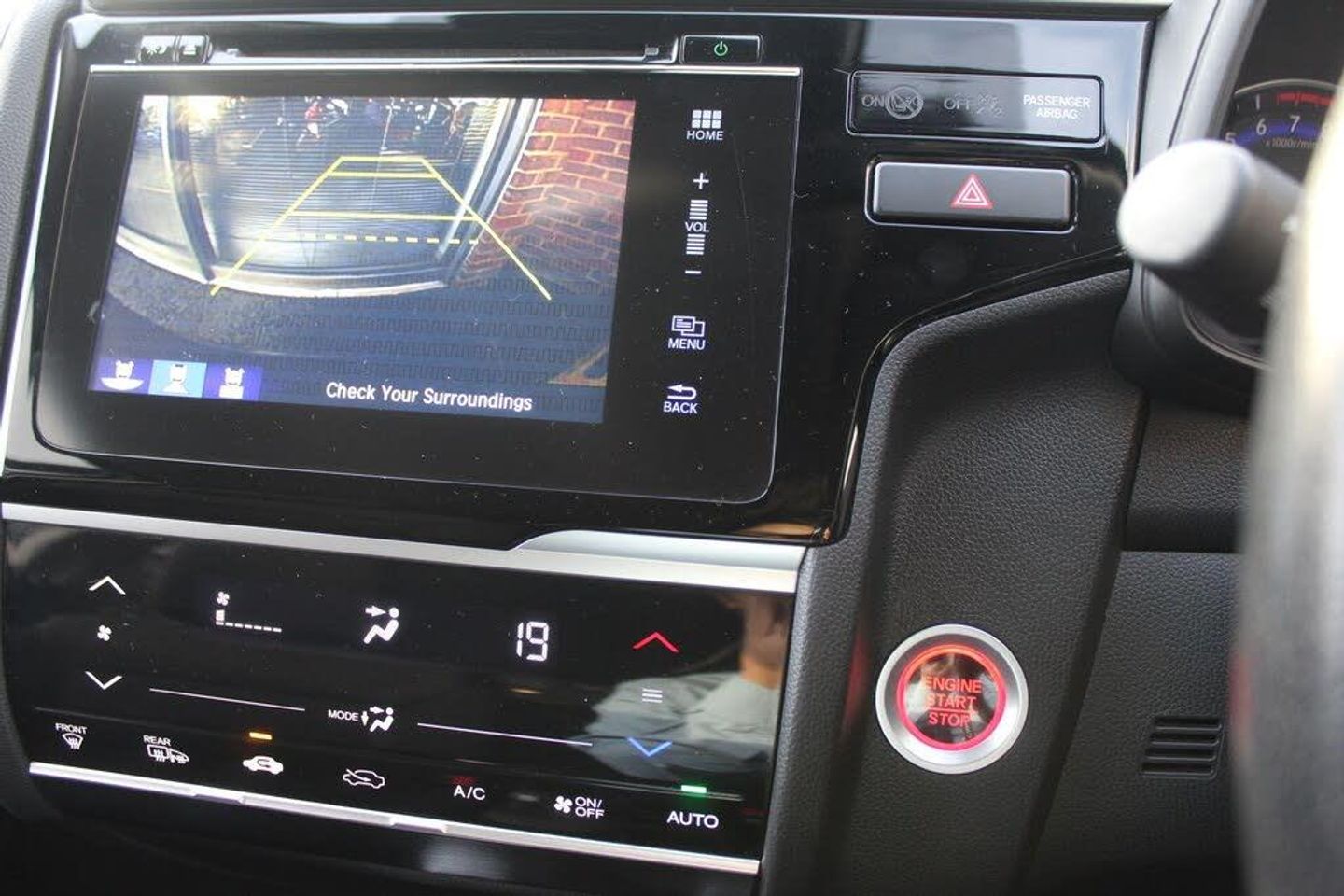 Automatic rain sensing wipers, Drivers one touch power window up/down, Front and rear power windows, One touch passenger power window up/down, Rear privacy glass, Rear wiper with intermittent and reverse linked, Vehicle stability assist, Body colour door handles, Body coloured bumpers, Automatic coming/leaving home lighting function, Automatic headlights with dusk sensor, Front fog lights, High beam assist, LED daytime running lights, LED Headlights, LED high level brake lights, ABS/EBD, Active city braking, Brake assist function, Hill start assist, Adaptive motion for electric power steering, Cruise control with speed limiter, Emergency stop signalling system, Forward collision warning, Front and rear parking sensors, Idle stop, Intelligent speed assist, Lane departure warning system, Rear view camera, Traffic sign recognition, Body colour door mirrors, Electric heated + adjustable door mirrors, Electrically retractable door mirrors, 3x3 point rear seatbelts, Anti-whiplash front headrests, Deflation detection system, Driver's side SRS airbag, Dual front SRS airbags, Front and rear curtain airbags, Front and rear seat belt with emergency locking retractor, Front side airbags, Passenger SRS airbag cut-off device, Bluetooth hands free telephone connection, 'Shark fin' mobile antenna, 2x USB and HDMI, 6 speakers, Steering wheel mounted audio controls, Connect Navigation with 7" touchscreen, Digital Radio, Radio/CD/Mp3, Aha app integration, internet browsing, Multi-information display, Automatic climate controlled air conditioning, Centre console accessory socket, Cloth upholstery, Front accessory power socket, Gear shift indicator, Leather gear knob, Leather steering wheel, Luggage area under floor storage box, Paddle shift controls, Rear parcel shelf, Tilt/telescopic adjustable steering wheel, Front map lights, Front/rear courtesy lights, Trunk light, Driver/passenger sunvisors and vanity mirrors, Driver seat back pocket, Driver's seat height adjustment, Height adjustable passenger seat, Isofix child seat restraint mechanism, Magic seat flexibility system, Passenger seat back pocket, Rear head restraints, Reclining rear seats, Honda super locks, Immobiliser, Security alarm, Smart entry + Smart start, 16" alloy wheels, Tyre repair kit