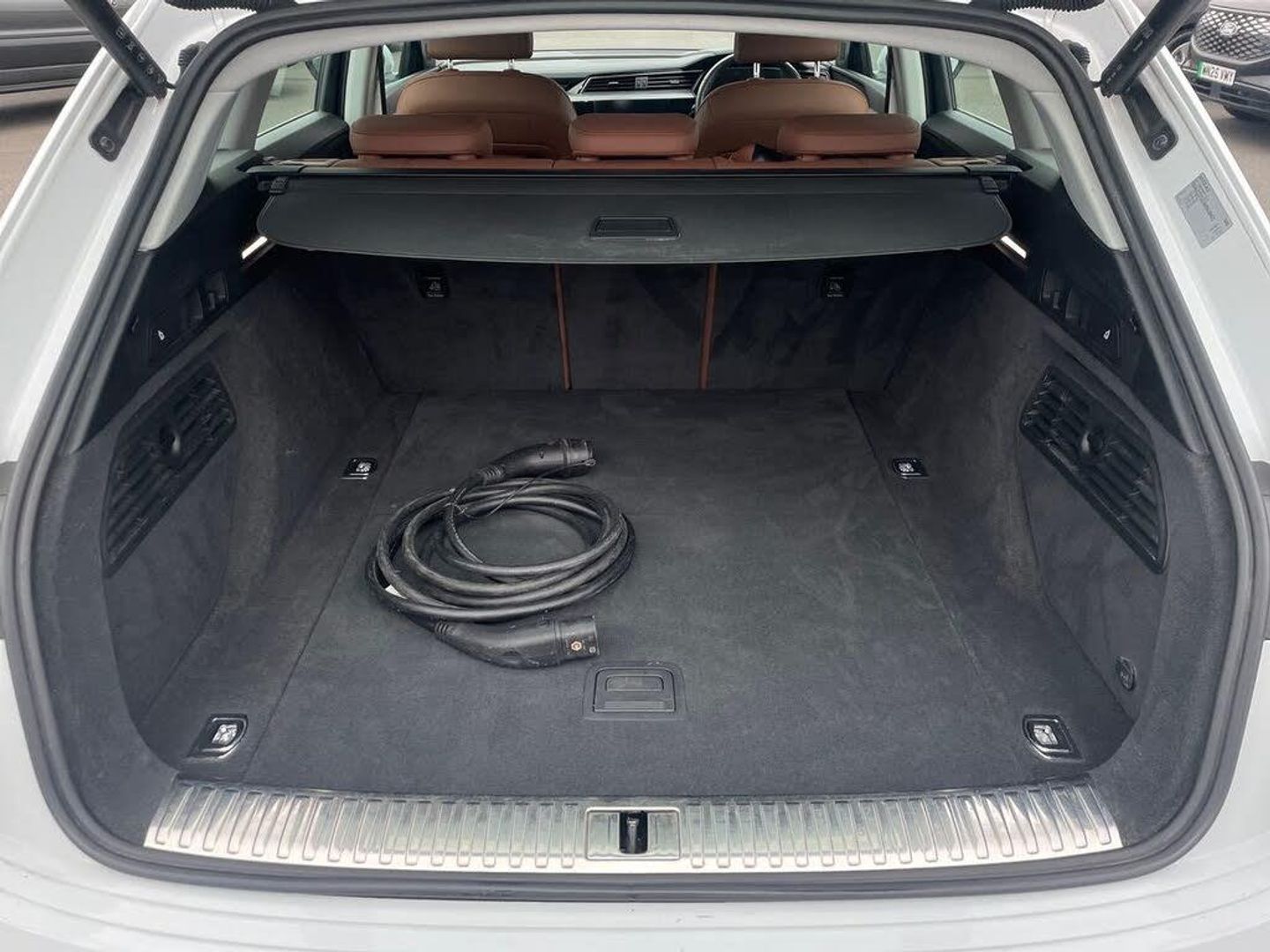 11 kW Onboard Charger 2-Zone Automatic Air Conditioning 20in Alloy Wheels - 5-Arm Design 4-Way Lumbar Support for Front Seats ABS - Anti-Lock Braking System AC and DC Charging Access Point on Drivers Side and Second AC Charging Access Point on Passenger Side AMI - Audi Music Interface - Front Active Vehicle Alerting System - AVAS Adaptive Air Suspension Airbags - Driver Anti-Theft Alarm Anti-Theft Wheel Bolts and Wheel Loosening Warning Audi Connect Audi Connect Safety and Service - e-call Audi Drive Select Audi Pre-Sense Front and Basic Audi Smartphone Interface Includes Wireless Functionality Audi Sound System Audi Virtual Cockpit Auto Dimming and Frameless Rear View Mirror Body Coloured Door Mirrors Bumpers - Contrasting Cloth Headlining in Lunar Silver Compact e-tron Charging System Cruise Control with Speed Limiter DAB Digital Radio Door Mirrors - Electrically Adjustable - Heated - Folding - Automatically Dimming with Memory Function with Kerb View Function for Passenger Side Door Sills with Aluminium Inlays Electric Windows - Front and Rear Electrically Adjustable Front Seats including Memory Function for Drivers Seat First Aid Kit and Warning Triangle Four-Spoke Multi-Function Leather Steering Wheel with Paddles Front and Rear Floor Mats Gloss Styling Pack Heated Front Seats Household Plug Type G - GB ISOFIX Child Seat Mounting for Front Passenger Seat with Front Passenger Airbag Deactivation ISOFIX Child Seat Mounting for Outer Rear Seats Industry Plug CEE 32 A-230 V Inlays in Graphite Grey Paint Finish Keyless Go LED Headlights with Function-On-Demand Preparation LED Interior Light Package LED Rear Lights Lane Departure Warning Luggage Compartment Cover MMI Navigation Plus with MMI Touch - Twin Touch Screens with Haptic Feedback Mode 3 Type 2-AC Charging Cable 22kW Parking System Plus with 360 Degree Sensors and Function-On-Demand Preparation Power Operated Tailgate Progressive Steering Rear View Camera Removable Net Partition Side Airbags - Front and Head Airbag System Sun Visors with Illuminated Vanity Mirrors Tool Kit Vehicle Inlet Combo 2 - EU CCS