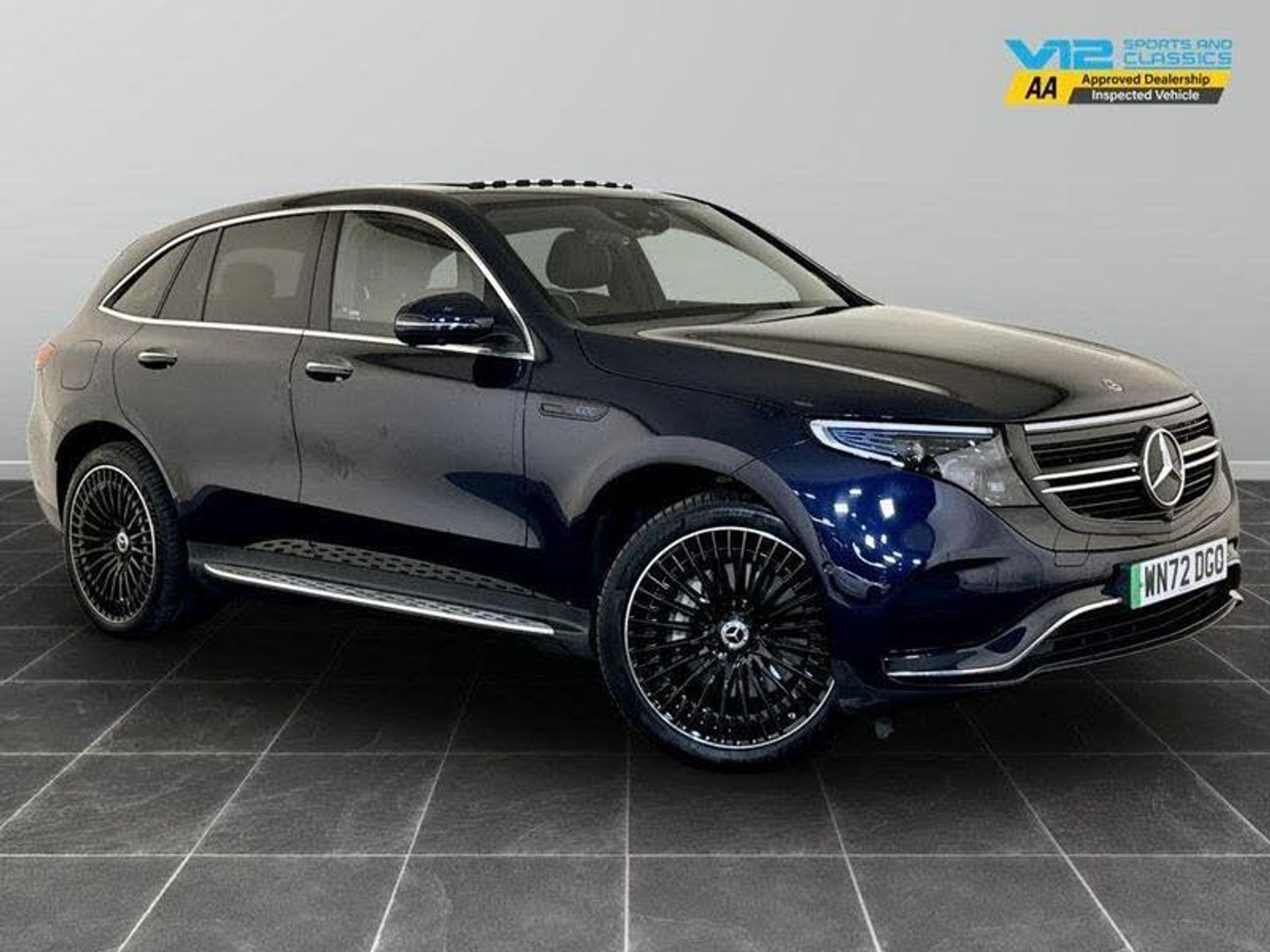 TIREFIT, [Audio and Communications]12V Socket in Load Area, Digital Radio, Hard-Disk Navigation, IONITY 1 Year, Live Traffic Information, MBUX - Mercedes-Benz User Experience - Infotainment System, MBUX Multimedia System with Widescreen Cockpit - 2x 10.25in Displays with Touchpad, Mercedes Me Charge (3 Year Subscription From New), Mercedes Me Connect, Mercedes-Benz Emergency Call System, Smartphone Integration, [Drivers Assistance]Active Lane Departure Warning, Blind Spot Assist, Cruise Control, Dynamic Select, Head-Up Display, Traffic Sign Assist, [Exterior]21in Alloy Wheels - AMG Multi-Spoke Design - Black, AMG-Specifc Rear Apron with Visible Air Outlets, AMG-Specific Black Panel Radiator Grille in a Twin-Blade Design and Surround in High-Gloss Black, AMG-Specific Front Apron in a Jet-Wing Design, Aluminium - Running Boards, Badge on the Wing in High-Gloss Black with Chrome Stripes and Blue EQC Lettering, CCS-2 Connector - Combined Charging System - Compatible with AC and DC, Door Mirrors - High Gloss Black, Electric Sliding Sunroof, Electric Windows - Front and Rear, Front and Rear LED Light Bands, Heat and Noise Insulating Acoustic Glass, Mirror Package, Privacy Glass, Summer Tyres, [Illumination]MULTIBEAM LED Headlights, [Interior]AMG Brushed Stainless Steel Sports Pedals with Black Rubber Studs, Ambient Lighting, Dashboard in ARTICO, EASY-PACK Electric Tailgate, EQ Navigation Services, Floor Mats - AMG, Heated Front Seats, Interior Lighting Package, KEYLESS-GO Comfort Package, MBUX Interior Assistant, Memory Package, Multifunction Sports Steering Wheel in Nappa Leather with Control Panel - Flattened Bottom Section and Perforated Grip Area, Roof Lining - Black Fabric, Seats - AMG Sports in Leather, Seats - Rear Split Folding 40-20-40, Stowage Package, Trim - Black Open-Pore Ash Wood with High Gloss Centre Console, Vehicle Set-Up and Vehicle Monitoring - 3 Years, [Performance]110kW DC On-board Charger, 11kW On-Board Charger, Charging Cable for Domestic Plug Socket - Type G - Mode 2 - 5m, Charging Cable for Wallbox and Public Charging Stations - Type 2 Mode 3 - 5m, Power Assisted Steering, [Safety and Security]ABS - Anti-Lock Braking System, Active Brake Assist, Airbags - Driver and Front Passenger, Parking Package with Parking Assist PARKTRONIC and 360 Camera, URBAN GUARD Vehicle Protection