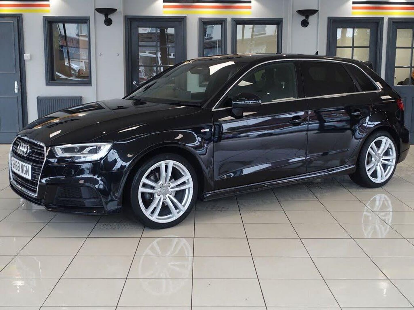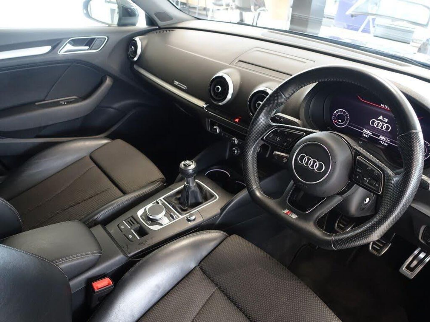 18in Alloy Wheels - 5-Parallel Spoke Design with Diamond Cut Finish, 2 x USB Charging Ports and 1 x AUX-IN, 6-Airbag System with Knee Airbag for Driver, Aluminium Interior Elements, Aluminium Window Trims, Anti Theft Locking Wheel Bolts, Anti-Theft Alarm, Audi Connect, Audi Connect Infotainment Services - 3 Month Trial, Audi Drive Select, Audi Smartphone Interface, Audi Sound System, Auto-Dimming Rear-View Mirror with Light and Rain Sensor, Bluetooth Interface, Body Coloured Door Mirrors, CD Drive, Chrome-Plated Exhaust Tailpipe Trim, Cloth Headlining in Black, Colour Drivers Information System - DIS, Cruise Control, DAB Digital Radio, Door Mirrors - Electrically Adjustable and Heated with Integrated LED Side Indicators, Dual-Zone Electronic Climate Control, Electric Windows - Front and Rear, Electromechanical Parking Brake, Electromechanical Power Steering, ESC - Electronic Stabilisation Control inc ABS - ASR and EDL, First Aid Kit and Warning Triangle, Front and Rear Floor Mats, Front Centre Armrest, Heated Windscreen Washer Jets, Hill Hold Assist, Illuminated Door Sill Trims with S Logo, Inlays - Matt Brushed Aluminium, ISOFIX Child Seat Mounting and Top Tether, Lashing Points in Luggage Compartment, LED Headlights with LED Rear Lights and Dynamic Rear Indicators, LED Interior Light Package, Manual Seat Adjustment, MMI Navigation - SD Card Based, MMI Radio Plus with 7in Electrically Retractable Colour MMI Screen, Mythos Black, Non-Smoking Package, Pedals in Stainless Steel, Privacy Glass, Rear Parking Sensors, Remote Central Locking with 2 Fold Away Keys, S Line Badges on the Front Wings, S Line Design Body Styling, Seat Belt Monitoring, Split Folding Rear Seat Bench - 60-40 or Fully, Sport Suspension, Steering Wheel - 3-Spoke Leather-Multifunction-Flat Bottomed, Storage Compartments in the Door Side Trims-Centre Console-Under Drivers Seat, Storage Package, Technology Pack, Tool Kit, Tyre Pressure Warning Light, Tyre Repair Kit, Voice Control System
