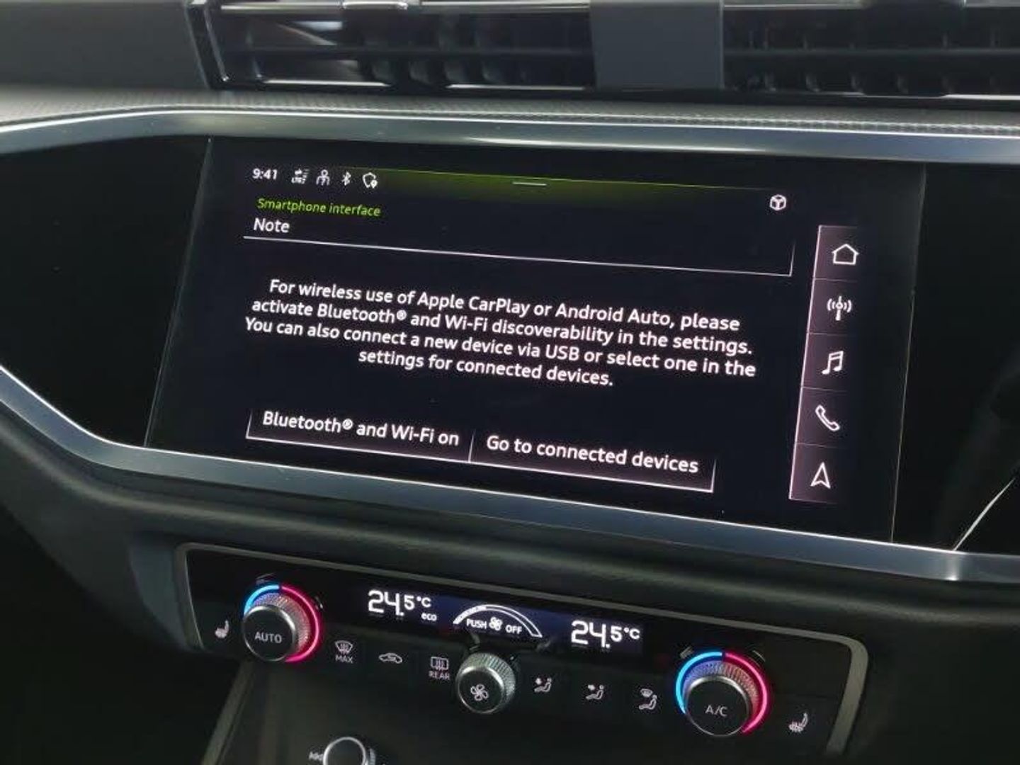 Android Auto, Apple CarPlay, LED daytime running lights, LED Headlights, Audi drive select, Audi lane departure warning, Bluetooth interface, MMI Navigation Plus with high resolution 10.1 inch touchscreen colour display, Power operated tailgate, Progressive steering, Smartphone interface includes wireless Apple carplay/Android Auto, Start stop system with recuperation, Voice control system with natural language interaction, Cruise control + speed limiter, Rear parking sensors, Diesel particulate filter, Sports suspension, DAB digital radio module