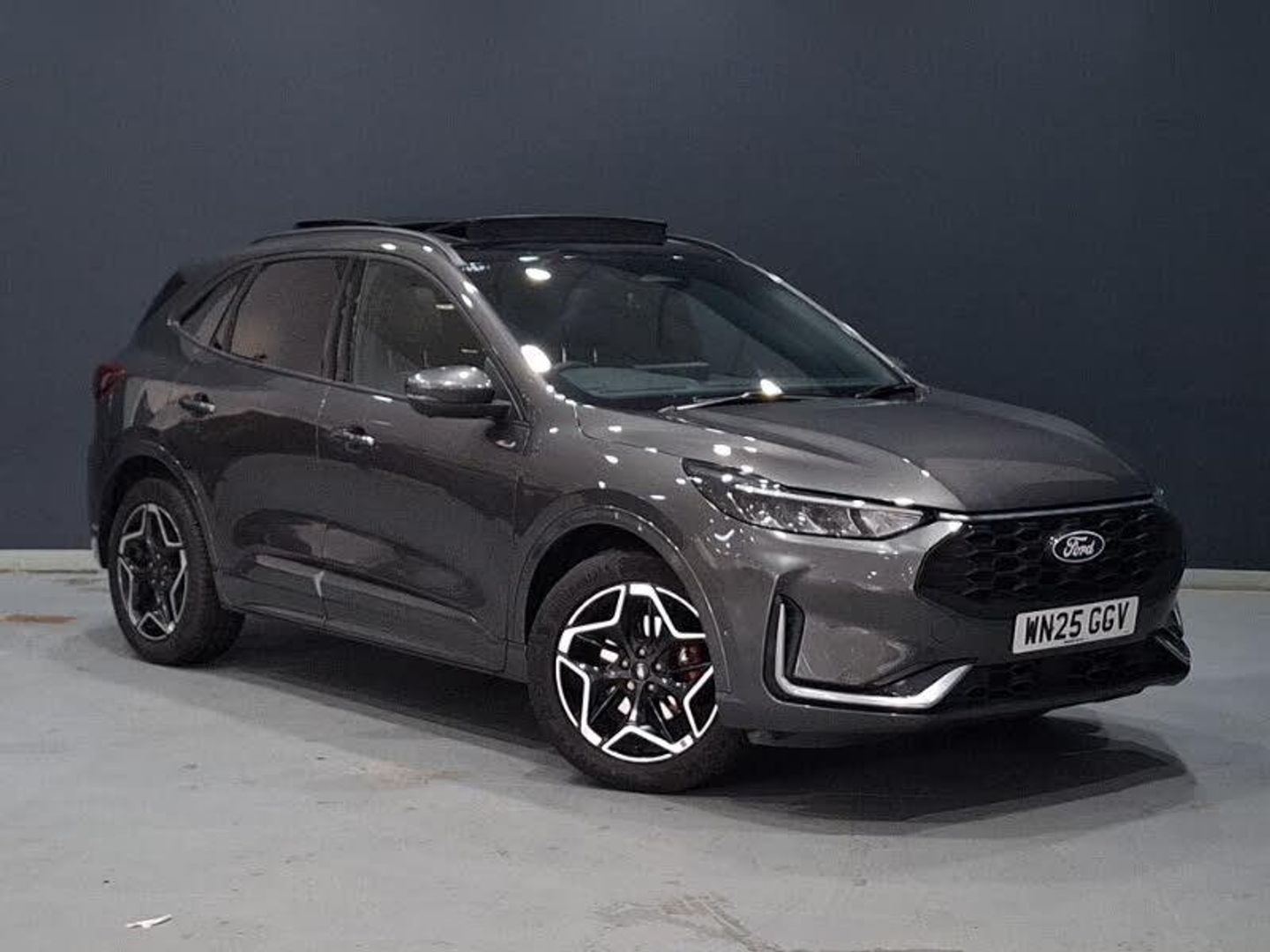 Electric panoramic sunroof, 12.3" digital colour instrument cluster, 360 degree camera, Front and rear parking sensors, Hands free power tailgate, Lane keeping aid with lane departure warning, Selectable drive modes, B&O premium audio system with 10 speakers, subwoofer and 2 USB ports, LED rear lights, LED daytime running lights, Auto headlamps with high and low beam, Power opening panoramic roof, Rain sensing wipers, ST-Line body styling kit, 12 way ergonomic power adjust driver's seat with memory (AGR certified), Partial premium touch sensico upholstery, Winter pack - Kuga, Driver assistance pack with intelligent adaptive cruise control - Kuga, Ford MyKey Gen 2 safety system, Keyless entry and Ford power start button (Keyless start), Ford SYNC 4 Navigation with 13" touchscreen, DAB radio, emergency assistance, Andriod Auto/Apple CarPlay, 5G modem & Ford Pass connect, Thatcham category 1 alarm