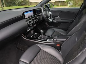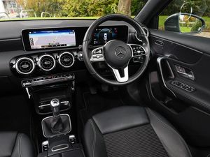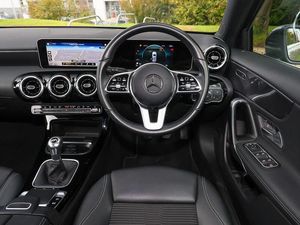 7" colour screen in instrument panel, 180 degree rear view camera with parking guidelines, Active lane keep assist, Active park assist with parktronic system including front and rear parking sensors, DYNAMIC SELECT with a choice of driving modes (ECO, Comfort, Sport and Individual), Mercedes me connect including emergency call system, accident recovery, breakdown and maintenance management, Light and sight pack - A Class, Speed sensitive power steering, Mirror package - A Class, Lowered comfort suspension, MBUX multimedia system with DAB digital radio and touchpad including satellite navigation, Diamond radiator grille with black pins with one louvre in silver + chrome insert, Exhaust system - Twin trapezoidal tailpipes in polished stainless steel, LED high performance headlamps with integrated LED daytime running lights, Seat comfort pack - A Class, 3 Spoke leather multi function steering wheel, Heated front seats, Artico man-made leather/Fleron fabric upholstery, Dual bluetooth interface, 2 USB ports (type C), Active aerodynamics with AIRPANEL in the front apron, Heated glass rear windscreen + timer control, Touchpad, Keyless Go, Dark carbon fibre interior trim, 17" 10 spoke light alloy wheels painted in vanadium silver