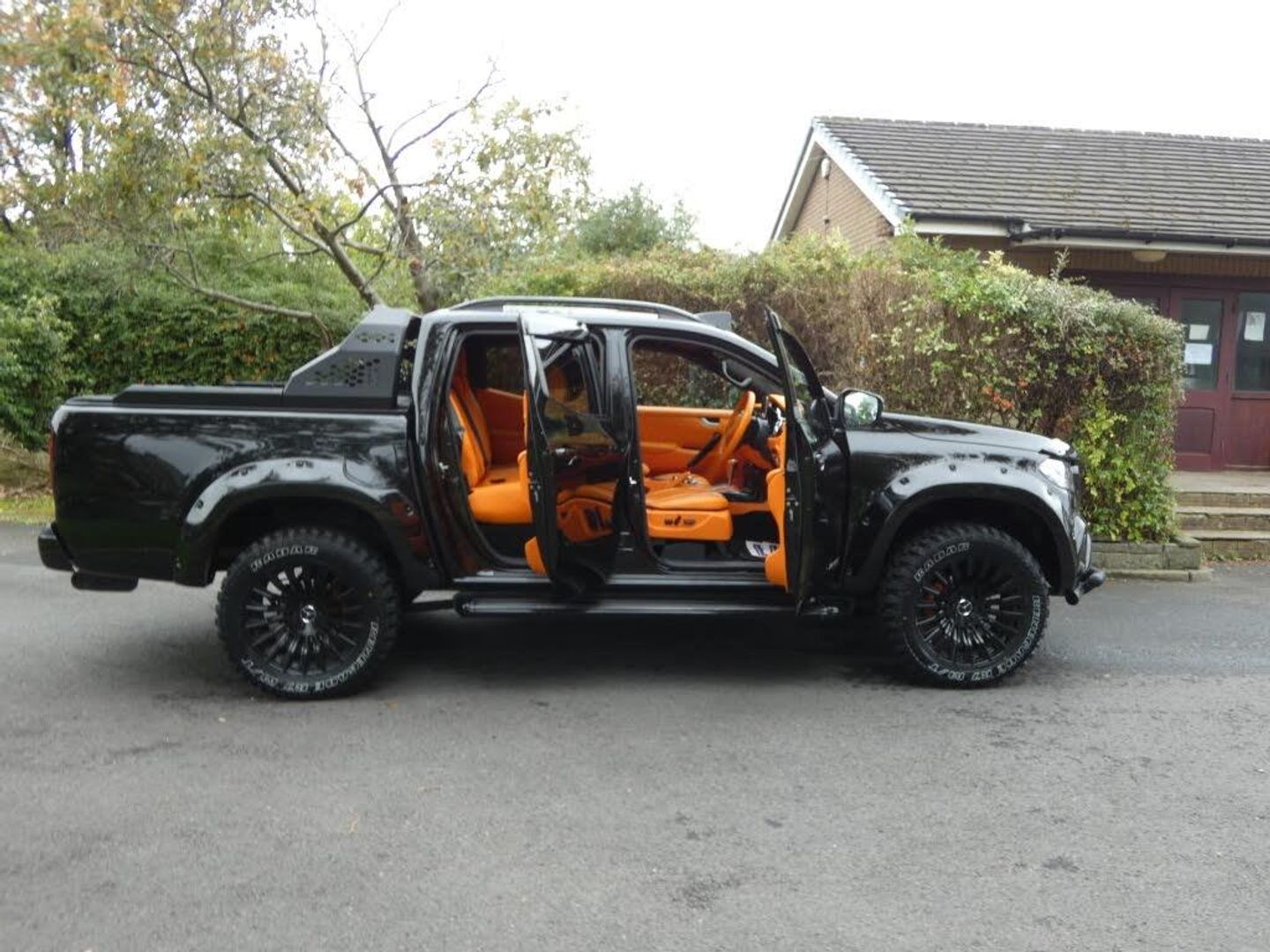 An absolutely stunning, one-off Mercedes X250 finished in deep gloss black, showcasing exceptional craftsmanship and bespoke detailing throughout. This is not your average pickup â itâs a head-turning statement piece built to impress. Inside, the cabin features a full quilted custom Mandarin leather interior, creating a luxurious, handcrafted finish complemented by a starlight roof lining that adds an exclusive, ambient atmosphere. On the exterior, the truck boasts a full wide-arch, colour-coded body kit, black pack styling, and 20-inch gloss black alloys wrapped in brand-new mud terrain tyres, giving it an aggressive stance and commanding road presence. Practicality meets style with an electric rear shutter, a rear Spyder roll bar with integrated LED lighting, and front roof-mounted LED lights paired with a twin nudge bar. The interior tech suite includes satellite navigation, a reverse camera, and DAB radio, ensuring every drive is as connected as it is comfortable. With low mileage and immaculate presentation, this X250 is a truly unique and stunning example â a perfect fusion of power, luxury, and individuality. If youâre looking for something that stands out from the crowd, this one-off Mercedes X250 delivers unmatched presence and refinement in every detail.