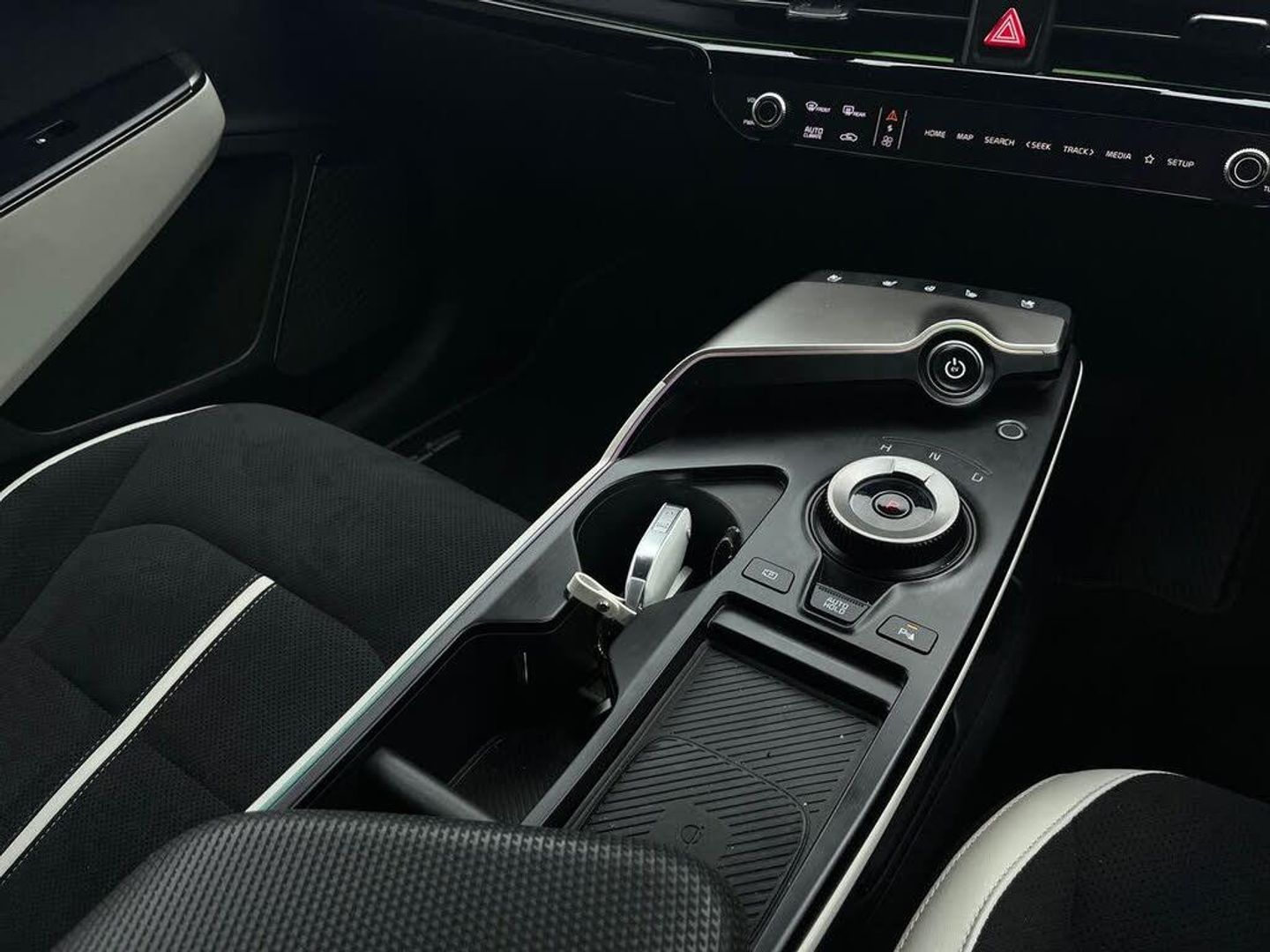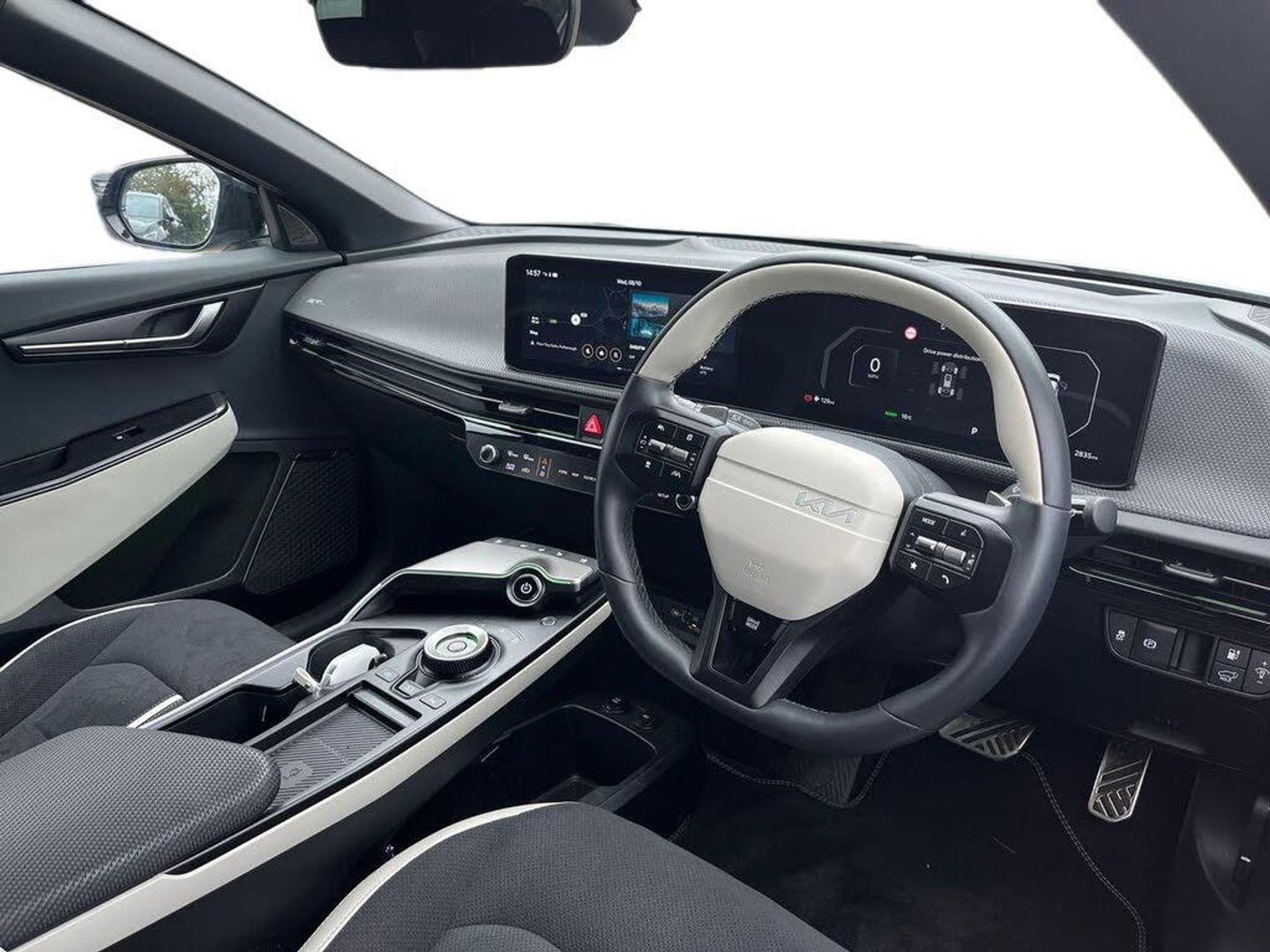 12.3" Curved driver display screen, 12.3" Curved touchscreen navigation, 360 degree around view monitor, Blind spot collision avoidance assist, Blind spot monitor, Bluetooth connectivity, Customisable Head Up Display, Drive mode select (Eco, normal, sport and Mydrive), Driver attention warning, E-call, Emergency stop signalling system, Fingerprint recognition, Forward Collision-Avoidance Assist (FCA) 2.0 - City/Pedestrian/Cyclist/Junction turning and junction crossing, Front parking sensors, Highway Driving Assist 2 with hand-on detection (HDA2 w HOD), Intelligent speed limit assist (ISLA), Kia connect, Lane Following Assist 2.0 (LFA) with hands-on detection, Lane keep assist, Low washer fluid warning, Over the air updates, Parking collision avoidance assist (PCA), Power assist steering, Rear parking sensors, Remote Smart Park Assist 2.0 (RSPA 2.0), Reversing camera, Safe exit warning (SEW), Side parking sensors, Smart cruise control with stop and go functionality, Smart power tailgate, Terrain mode select, Voice control, Wireless apple car play/android Auto, Wireless Mobile Phone Charger, 11 kW AC onboard charger, 5m Type 2 to type 2 charging cable, Charging port door opening button with a small light inside the door, Vehicle to load adaptor, 2 USB-C charge ports in rear, 2 x USB-C charge port on front seats, Meridan premium sound system with 14 speakers and active sound design (ASD), Steering wheel mounted controls, USB port for connection of a media device, Auto dimming rear view mirror, Automatic defog system, Automatic headlight control system, Body colour exterior door handles - flush auto, Body coloured side sills, Dual LED headlights with adaptive driving beam, Electrically folding/adjustable/heated door mirrors with LED indicators, Frunk, Gloss black door mirrors, GT-Line exterior styling, Heated rear window, High gloss black beltline, High gloss black door garnish with body colour wheel arches, High level LED brake light, LED daytime running lights, LED rear combination lights, LED rear fog lights, One touch electric front/rear windows, Panoramic sunroof with tilting and sliding function, Rain sensing front wipers, Rear privacy glass, Rear roof spoiler, Rear side wing doors, Rear wiper, Sequential indicators, Solar glass windshield, 1 x Front 12V socket, 1 x Luggage compartment 12V socket, 3 Pin power socket, 3 seat bench in 2nd row, 3 spoke GT Line artificial leather steering wheel, 60:40 split remote folding rear seats, All-round height adjustable headrests, Alloy pedals, Automatic air conditioning, Centre console with storage box, Cloth headlining, Customisable ambient lighting, Driver and passenger sunvisors with illuminated LED vanity mirrors, Driver power adjusted memory seat, Electric front lumbar support, Electric steering wheel adjustment, Front and rear door storage, Front cabin LED light, Front passenger power adjusted seat, Front relaxation seats, Front seat back pockets, Frunk LED lights, GT-Line Interior Styling, Heated front seats, Heated steering wheel, Illuminated glovebox, Interior door lock/unlock function, ISOFIX Child seat top tethers and anchor fixings, LED luggage compartment lighting, Luggage area load cover, Luggage board, Luggage net with hooks, Metal paint interior door handles, Outer 2nd row heated seats, Rear cabin LED light, Rear centre armrest with cupholder, Single front passenger seat, Ski through, Suede/Artificial leather bolsters upholstery, Ventilated front seats, 3 point seatbelts on all seats, ABS, Automatic unlocking of doors in case of impact, Curtain airbags, Dual shell horn, Dynamic brake control, Electric parking brake with auto hold function, Electronic stability control, Front airbags, Front passenger airbag cut-off switch, Front seatbelt pre-tensioners, Height adjustable front seatbelts, Hill start assist control (HAC), Multi collision brake assist, Rear airbags, Regenerative braking paddle shifter with iPedal functionality, Seatbelt reminder warning, Side airbags, Tyre pressure monitoring system, Vehicle stability management, Customisable automatic door locking, Customisable automatic door unlocking, Digital key, Engine Start/Stop Button with Smart Entry System, Locking wheel nuts, Manual child locks, Rear occupant alert, Smart key with motion sensor, Thatcham category 1 security alarm and immobiliser with interior protection, Visible vehicle identification number, 20" Alloy wheels, Tyre mobility kit