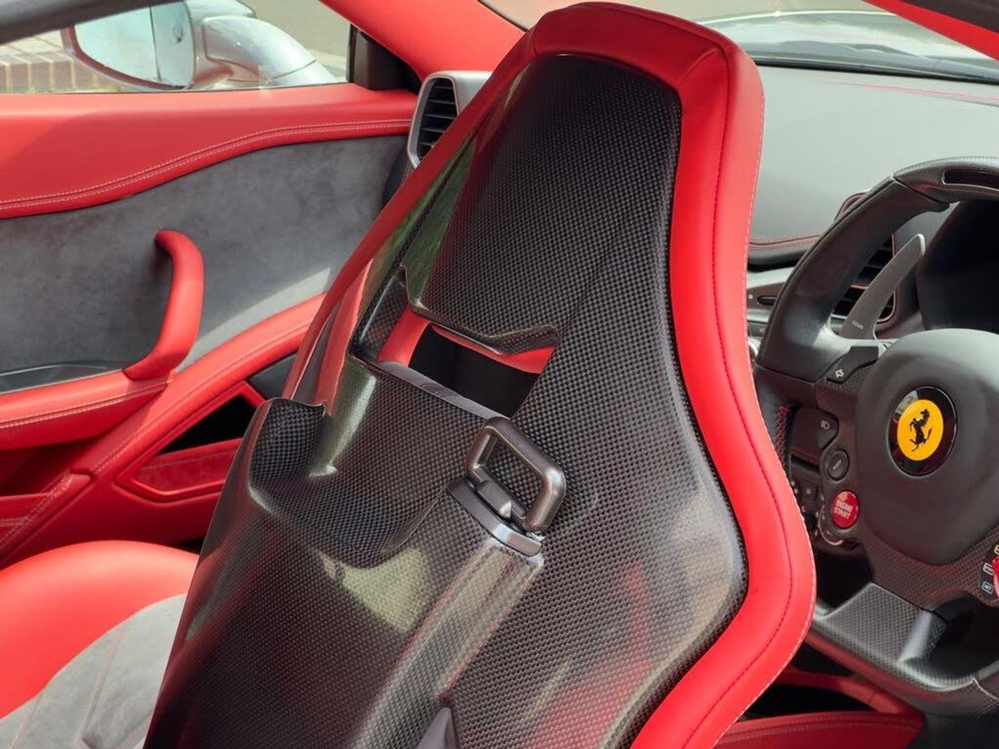 Carbon Racing Seats, FFSH-This 2012 Ferrari 458 Italia presented in stunning Grigio Silverstone over a refined leather/alcantara interior, is further enhanced by the factory-fitted Carbon Fibre Racing Seats and the desirable Allestimento Speciale Commessa Package which includes a special extended Leather/Alcantara interior, Grigio Ferro Metallic upper interior trim and Internal Speaker Grilles in Coloured Leather. All of this giving it a focused, motorsport-inspired edge. Powered by a naturally aspirated V8 that revs to 9,000 rpm and paired with a lightning-fast F1 dual-clutch gearbox, the 458 delivers a raw yet refined driving experience that defines the modern classic Ferrari era. PERFORMANCE & DRIVETRAIN: 4.5L Naturally Aspirated V8 Engine 570 PS (562 bhp) | 540 Nm Torque 062 mph in 3.4 Seconds | Top Speed: 202 mph 7-Speed Dual-Clutch F1 Transmission Rear-Wheel Drive | E-Diff & F1-Trac Systems Manettino Drive Mode Selector (Wet, Sport, Race, CT Off, ESC Off) SCM Adaptive Magnetorheological Suspension EXTERIOR SPECIFICATION: Paint: Grigio Silverstone Metallic 20'' Forged Dark Painted Rims in Grigio Ferro Carbon Ceramic Brakes with Yellow Calipers Bi-Xenon Headlights with LED Daytime Running Lights Scuderia Ferrari Shields Active Aero Front Vents & Rear Diffuser INTERIOR FEATURES: Factory Carbon Fibre Racing Seats (Large) Lightweight and Supportive Allestimento Speciale Commessa Leather & Alcantara Trim Rosso / Charcoal Carbon Fibre Driver Zone with LED Steering Wheel Opaco Carbon Fibre Steering Wheel | Sport Sill Covers Dual-Zone Climate Control | iPod Connection Coloured Standard Stitching in Rosso to Nero Leather Coloured Standard Stitching in Charcoal to Rosso Leather Ferrari Infotainment with Navigation & Bluetooth Internal Speaker Grilles in Leather Colour - Charcoal Grigio Ferro Metallic upper interior trim TECHNOLOGY & SAFETY: F1-Trac Traction Control | ESC Stability Control High-Performance ABS with EBD Tyre Pressure Monitoring System (TPMS) Front & Side Airbags ADDITIONAL DETAILS: Year: 2012 Model: Ferrari 458 Italia Coupe Mileage: 8,300m Transmission: 7-Speed F1 DCT Drivetrain: Rear-Wheel Drive Condition: Excellent Enthusiast-Owned Ownership: 4 Previous Owners Service History: Full Ferrari Main Dealer (Just Serviced) ULEZ Compliant | HPI Clear Price: £147,975 Finished in elegant Grigio Silverstone and equipped with Carbon Fibre Racing Seats, this 458 Italia blends timeless Ferrari design with true driver engagement. A collector-grade example of one of the finest naturally aspirated supercars of the modern era.-The Home of Iconic Automobiles, Kaaimans International
