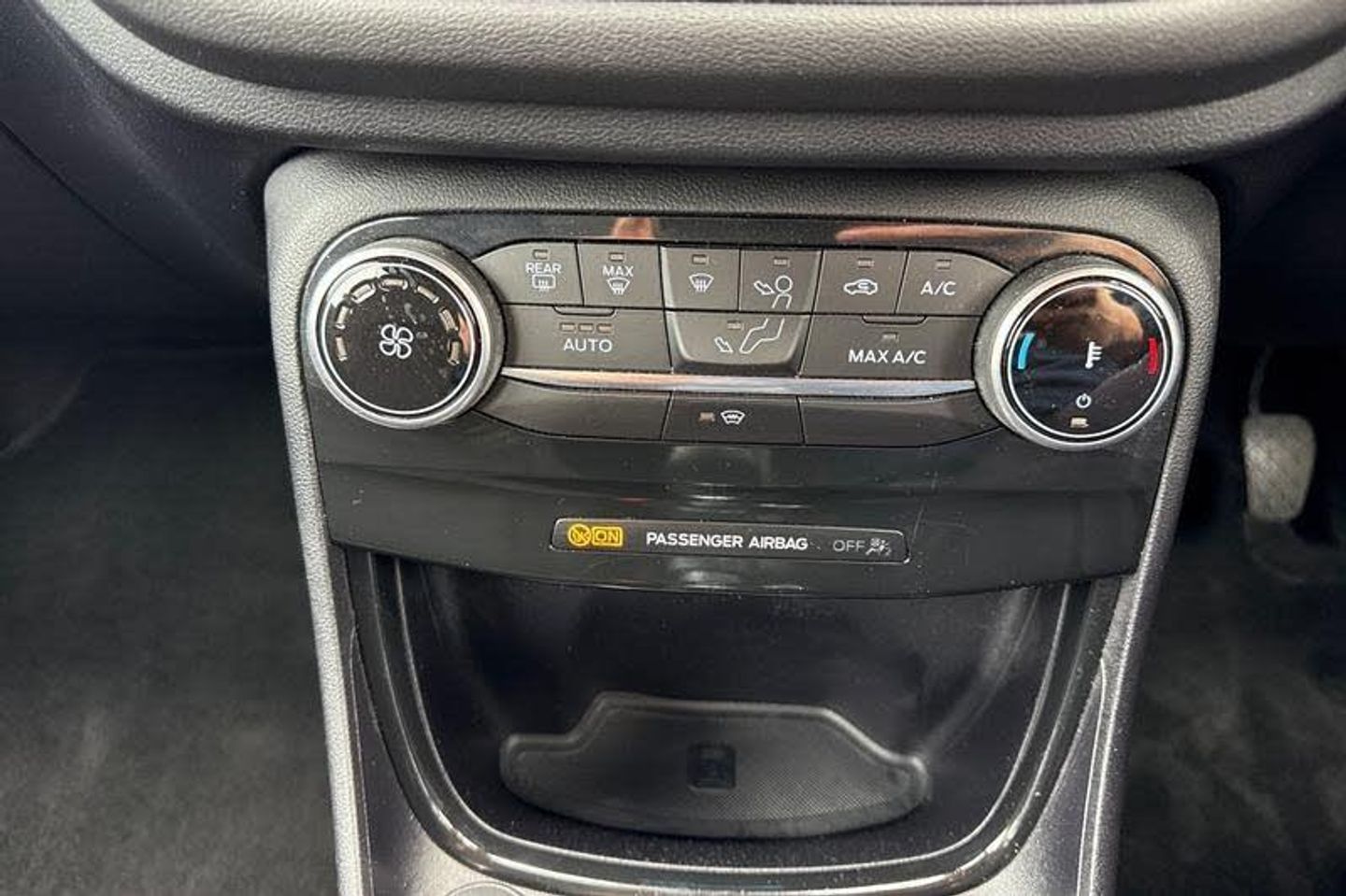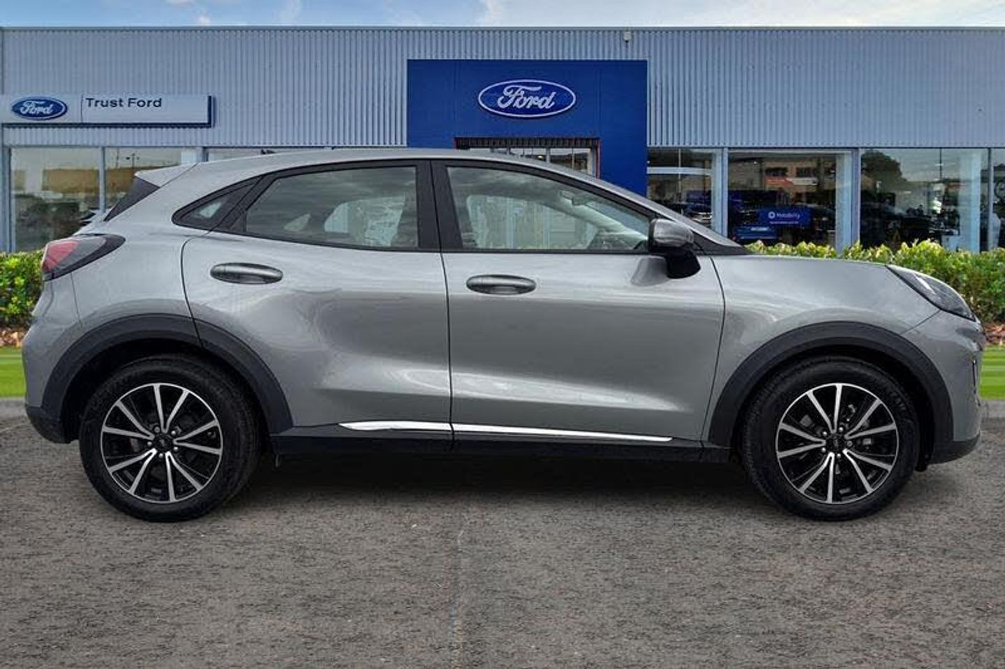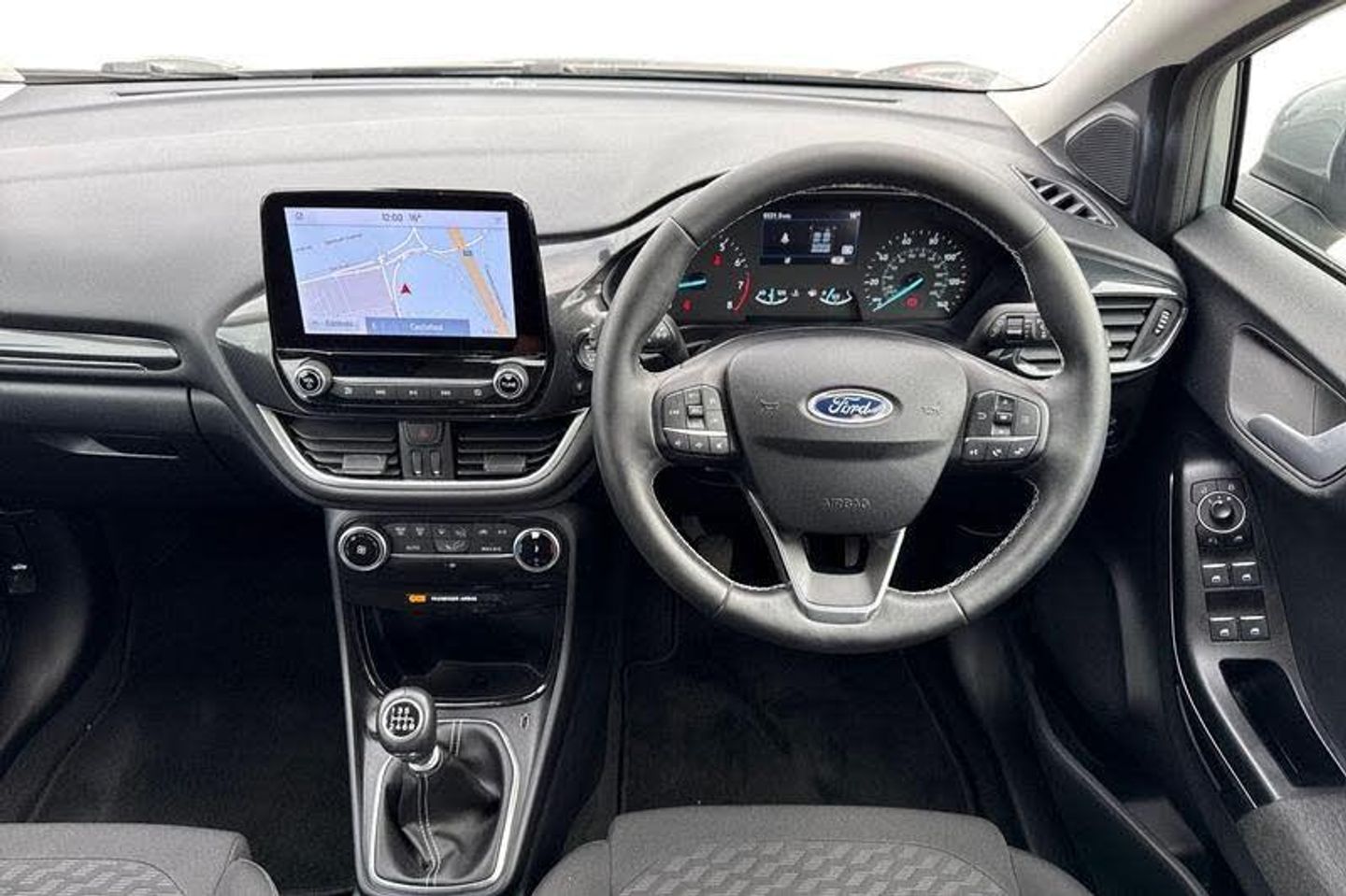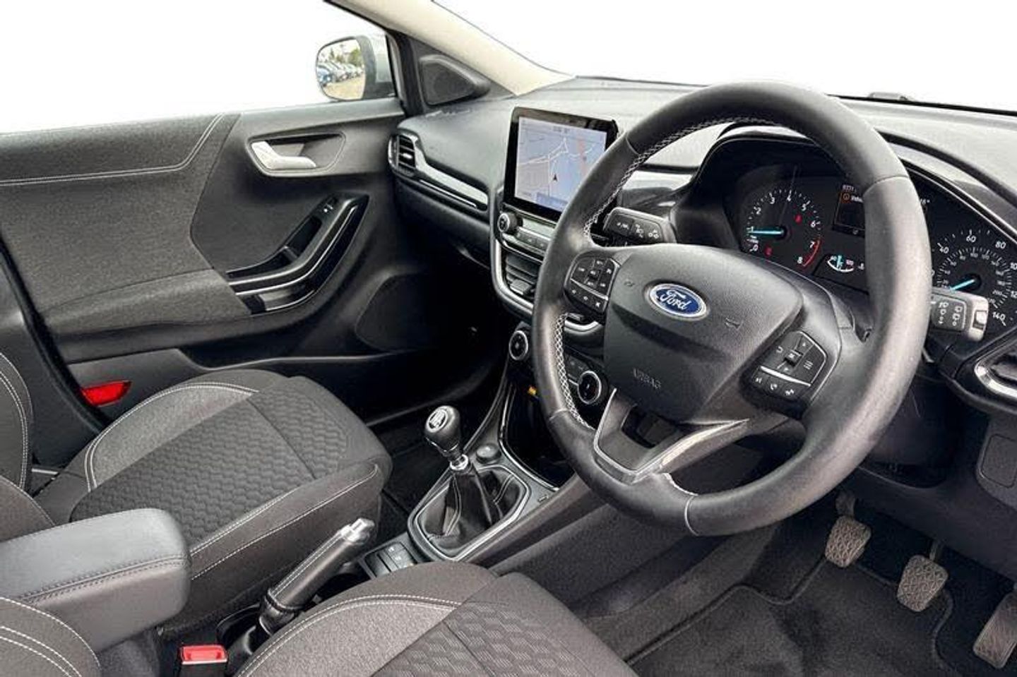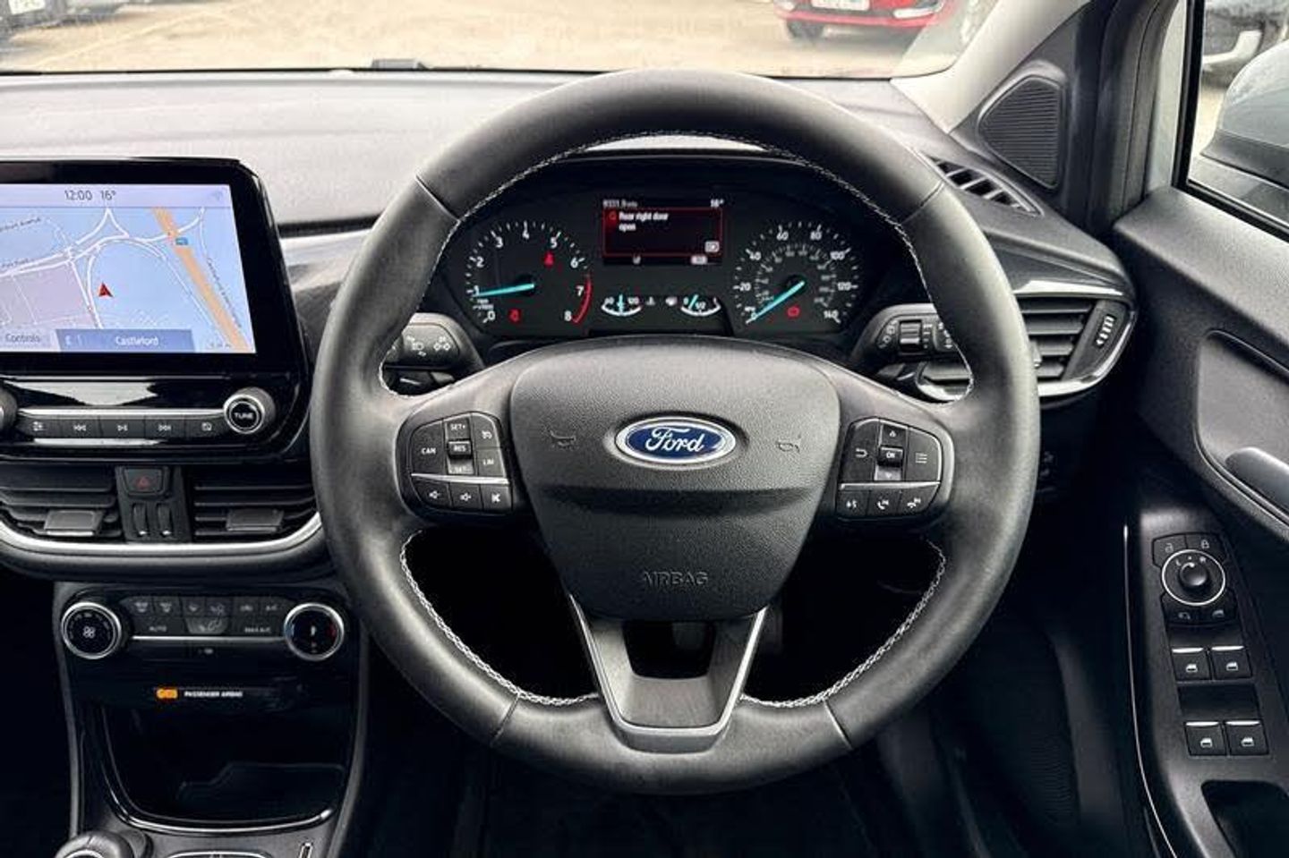 Satellite Navigation System, Rear parking sensor, Power start button, Driver impairment monitor, Emergency call service, Ford easy fuel, Lane keeping aid with lane departure warning, Power assist steering, Selectable drive modes(Normal, sport, Eco, trail, slippery), Speed sign recognition, Automatic headlights with auto high beam, Automatic rain sensing wipers, LED rear lamps, Power foldable heated door mirrors with puddle lamps, Projector headlamps with LED day time running lights and front fog lamps, Quickclear heated windscreen, Rear side wing doors, Rear wiper, Third brake light, 3 seat bench in 2nd row, Centre console with armrest and stowage, Electronic automatic temperature control (EATC), Ford megabox extended bootspace, Front and rear head restraints, Front floor mats, Manual 2 way passenger seat adjustment, Manual 4 way driver seat adjust with lumbar adjustment, Sensico leather steering wheel/gear knob/handbrake, Single front passenger seat, Titanium cloth upholstery, 3 rear seatbelts, Child safety lock, Electronic stability control (ESC) and hill start assist, Pedestrian/cyclist detection & post-collision braking, Pre collision assist system, Tyre pressure monitoring system (TPMS)