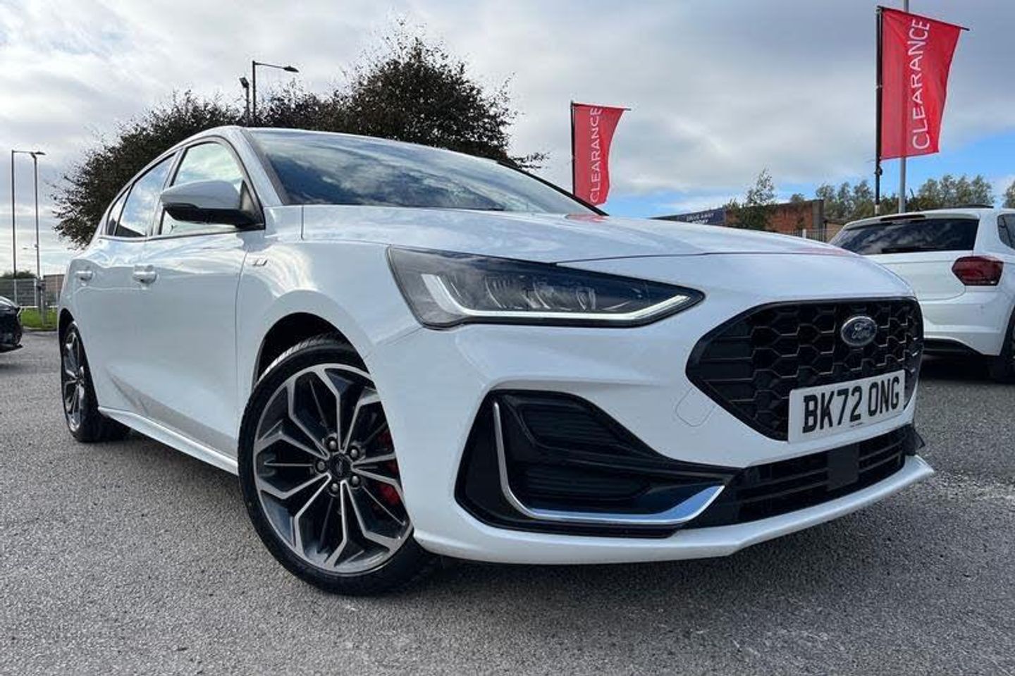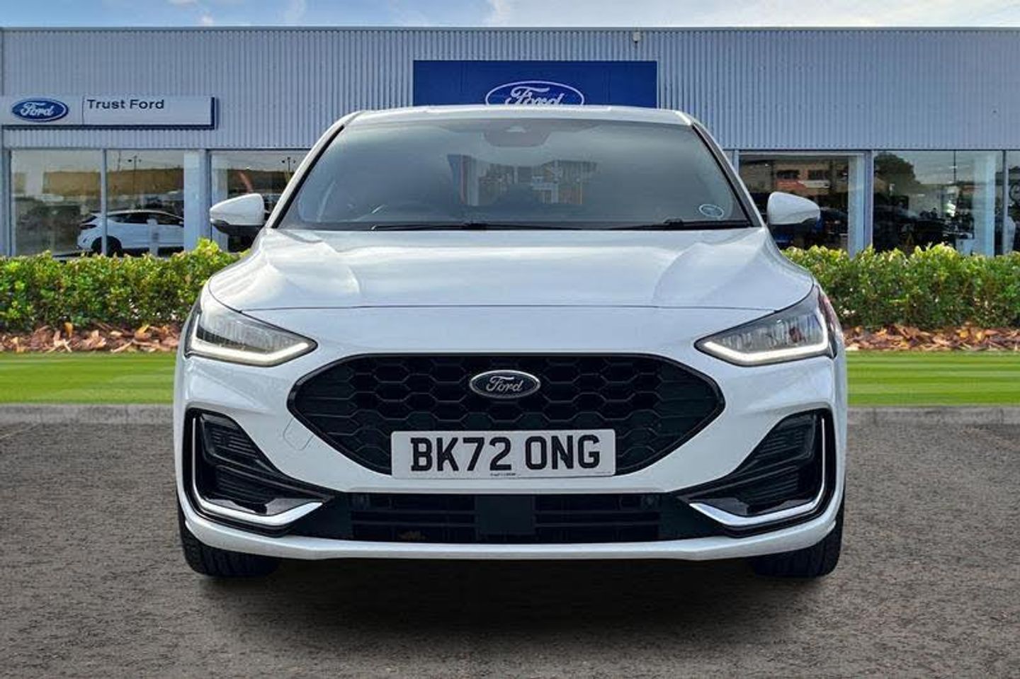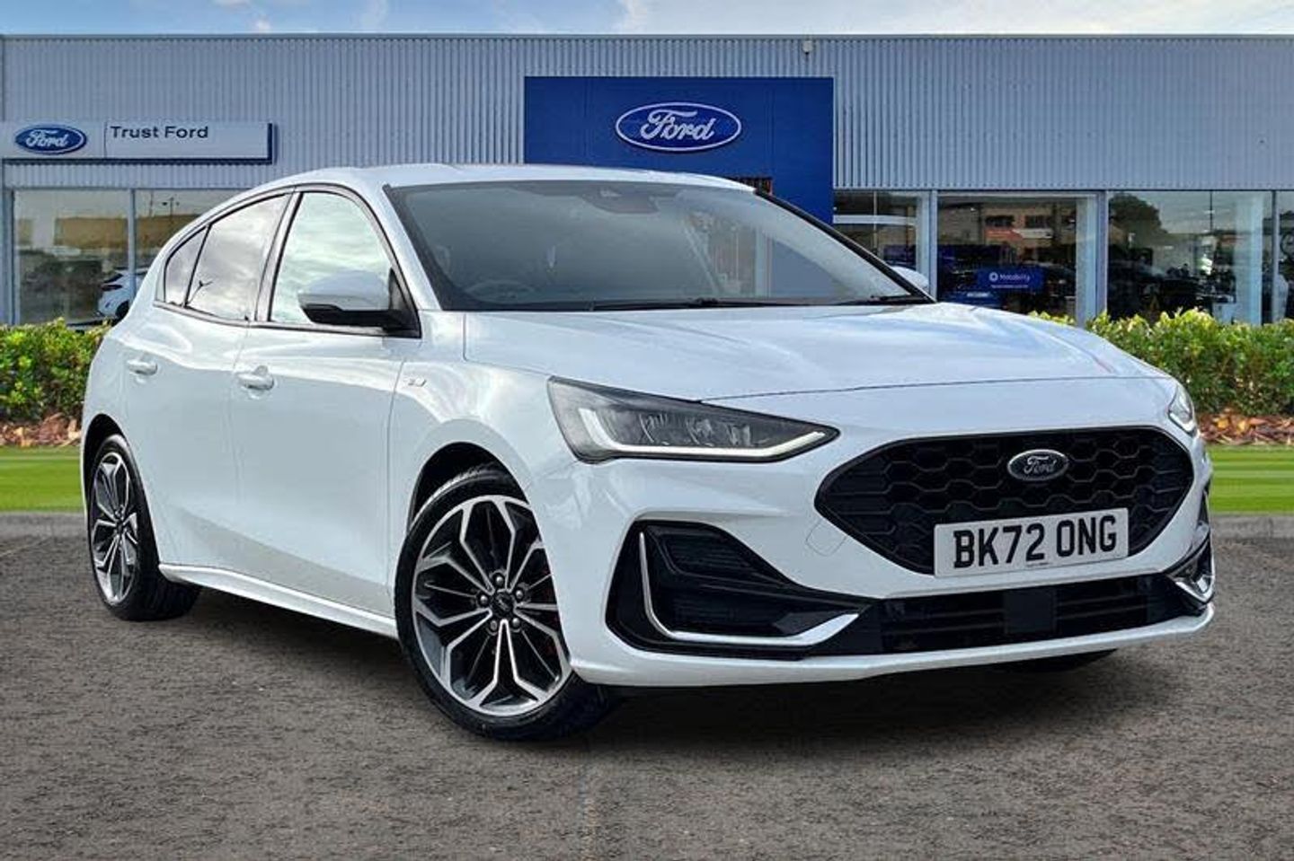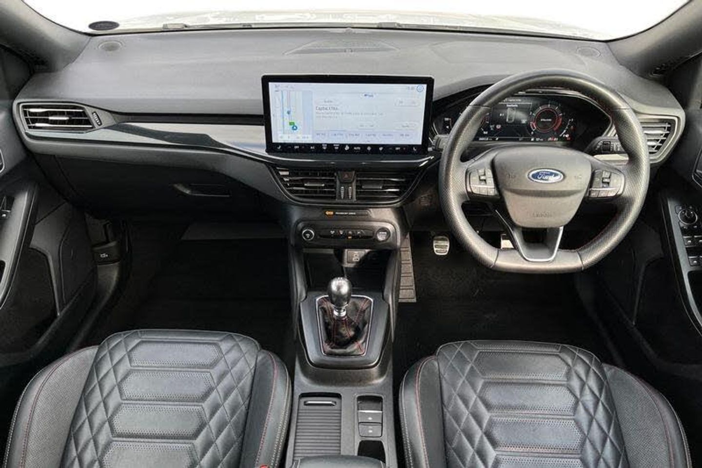 12.3 Digital instrument cluster, Bluetooth system, Digital clock, Easy fuel capless refuelling system, Eco mode, Ford SYNC4 Nav with 13.2'' touchscreen, DAB, Emergency Assistance, Apple Carplay & Android Auto, B&O Premium Audio with 10 speakers, FordPass Connect, Lane keeping system - lane keeping alert and lane keeping aid, PAS, Rev counter, Selectable drive mode, Service interval indicator, Trip computer, Wireless charging pad, Auto headlamps (on/off), Body coloured door handles, Electrically operated front and rear windows with one touch opening and closing, Electrically operated heated power fold door mirrors with puddle lamp with side indicators, Front variable intermittent wipers with electric wash, Heated rear window, LED daytime running lamp, LED rear lamps, LED third brake light, Polished twin tailpipe, Privacy glass, Quickclear heated windscreen, Rain sensor, Rear side wing doors, Tailgate wash/wipe, Unique ST-Line grille, full bodystyling kit, and large body coloured rear spoiler, 3 rear headrests, 3 seat bench in 2nd row, Dual zone electronic air temperature control, Full sensico premium upholstery, Height adjustable front headrests, Isofix child seat preparation, Load through ski hatch, Manual 4-way passenger seat adjusts, Power 4-way driver seat adjust, with power lumbar adjust, Reach + rake adjustable steering column, Single front passenger seat, 3x3 point rear seatbelts, ABS+Electronic Brake force Distribution, Auto hold function, Driver airbag, EDL traction control, Electronic parking brake, Electronic stability control, Front and rear seatbelt reminder, Front inertia reel height adjustable seatbelts with pre-tensioners, Front passenger airbag, Front side airbags, Passenger airbag deactivate switch, Post collision braking, Pre collision assist with autonomous emergency braking and pedestrian/cyclist detection, Red brake calipers, Remote/power child rear door locks, Side curtain airbags, Three rear inertia reel lap/diagonal seatbelts, Tyre pressure monitoring system
