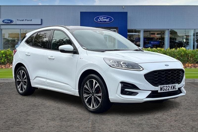 12.3 digital colour instrument cluster, Ford easy fuel, Ford SYNC 3 with 8 TFT LCD touchscreen, App Link, andriod auto/apple carPlay, emergency assistance and navigation with Ford pass connect, Front and rear parking sensors, Hands free power tailgate, Lane keeping aid with lane departure warning, Power assist steering, Rear view camera, Selectable drive modes, Service interval indicator, Auto headlamps with high and low beam, Black roof rails, Day/night rear view mirror, Front LED fog lamps, Large rear spoiler, LED daytime running lights, LED rear lights, Power folding heated door mirrors with puddle lights, Power front/rear windows with global close, Power opening panoramic roof, Privacy glass, Quickclear heated windscreen, ST Line body styling kit with unique front and rear fascia and bumper, rear painted diffuser, front painted skid plates, dark mesh upper grille, ST Line front scuff plates, Third brake light, Twin exhausts, 10 way power adjustable drivers seat, 2nd row sliding seats with 60:40 split, 8 way manual passenger seat including lumbar support and height adjust, Alloy pedals, Centre console with electronic parking brake, Dark headlining and pillars, Dual electronic automatic temperature control, Flat bottomed leather steering wheel in sensico with red stitching, Front and rear head restraints, Heated passenger and driver seats, Heated rear seats, Heated steering wheel, Partial premium touch sensico leather upholstery with black cloth inserts and red stitching, Rear charging point, Sports seats, ST Line front and rear floor mats, Steering wheel mounted paddle shift, 3x3 point rear seatbelts, Airbags - front driver/passenger, front and rear curtain, Drivers knee airbag, Electronic stability control (ESC) and ABS, Ford MyKey Gen 2 safety system, Manual child proof rear door locks, Post collision braking, Pre collision assist with autonomous emergency braking, Rear seat Occupancy alert, Red brake calipers, Tyre pressure monitoring system