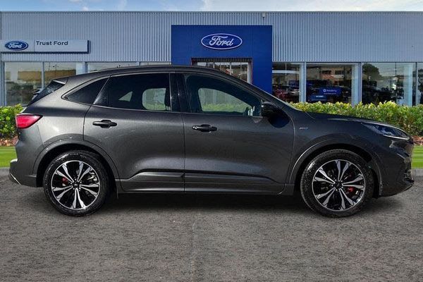 12.3 digital colour instrument cluster, Ford easy fuel, Ford SYNC 3 with 8 TFT LCD touchscreen, App Link, andriod auto/apple carPlay, emergency assistance and navigation with Ford pass connect, Front and rear parking sensors, Hands free power tailgate, Lane keeping aid with lane departure warning, Power assist steering, Rear view camera, Selectable drive modes, Service interval indicator, Auto headlamps with high and low beam, Black roof rails, Body colour bumpers, Day/night rear view mirror, Front LED fog lamps, Large rear roof spoiler, LED daytime running lights, LED rear lights, Power folding, electrically adjustable and heated door mirrors with puddle lights, Power front/rear windows with global close, Power opening panoramic roof, Quickclear heated windscreen, Rain sensing wipers, Rear privacy glass, Rear side wing doors, Rear wiper, ST Line body styling kit with unique front and rear fascia and bumper, rear painted diffuser, front painted skid plates, dark mesh upper grille, ST Line front scuff plates, Third brake light, Twin exhausts, 2nd row sliding seats with 60:40 split, Alloy pedals, Centre console with electronic parking brake, Dark headlining and pillars, Electronic automatic temperature control (EATC), Flat bottomed leather steering wheel in sensico with red stitching, Front and rear head restraints, Heated passenger and driver seats, Heated rear seats, Heated steering wheel, Partial premium touch Sensico with black cloth inserts and red stitching, Rear centre head restraint, Single front passenger seat, Sports seats, ST Line front and rear floor mats, ST Line gear knob, 3x3 point rear seatbelts, Airbags - front driver/passenger, front and rear curtain, Drivers knee airbag, Electronic stability control (ESC) and ABS, Ford MyKey Gen 2 safety system, Manual child proof rear door locks, Post collision braking, Pre collision assist with autonomous emergency braking, Rear seat Occupancy alert, Red brake calipers, Tyre pressure monitoring system