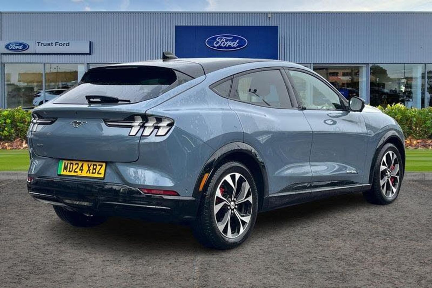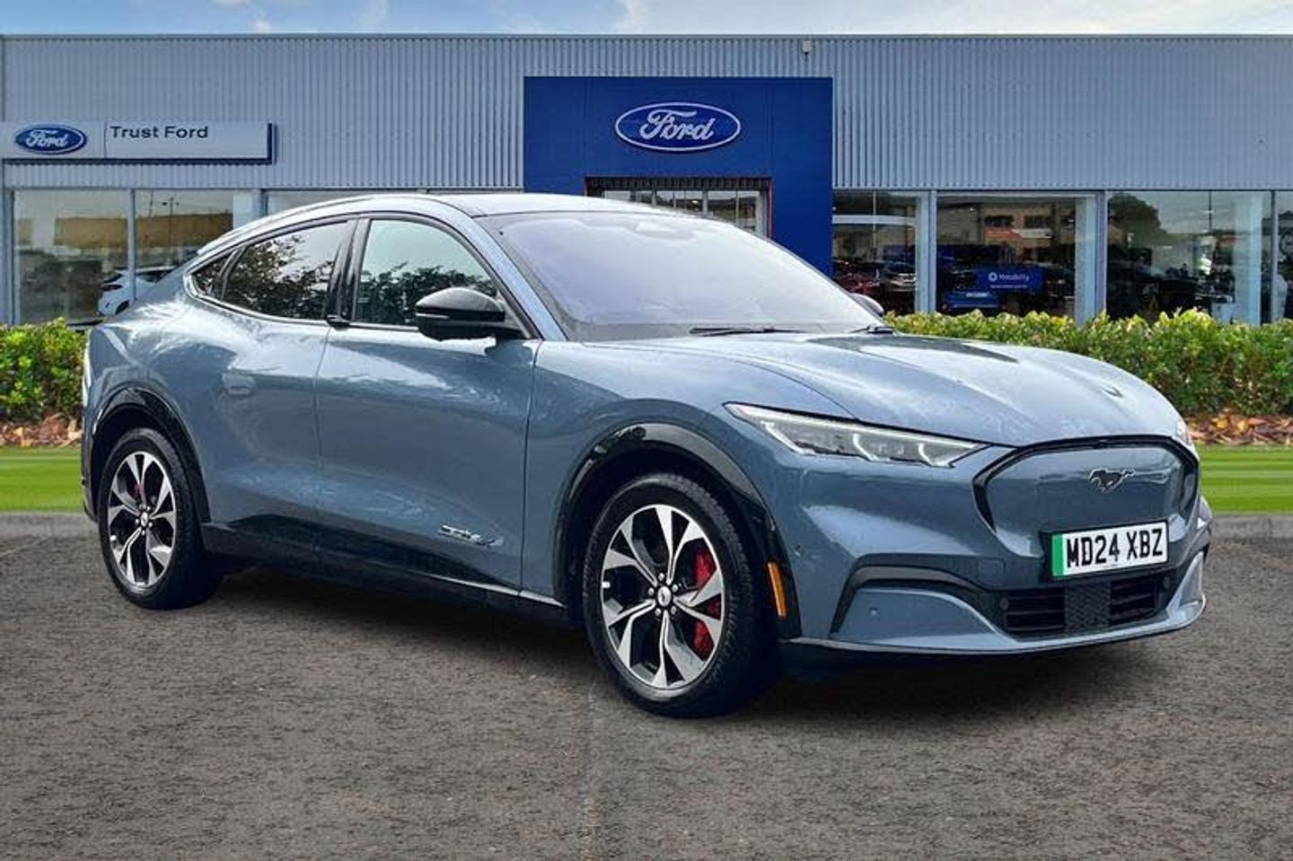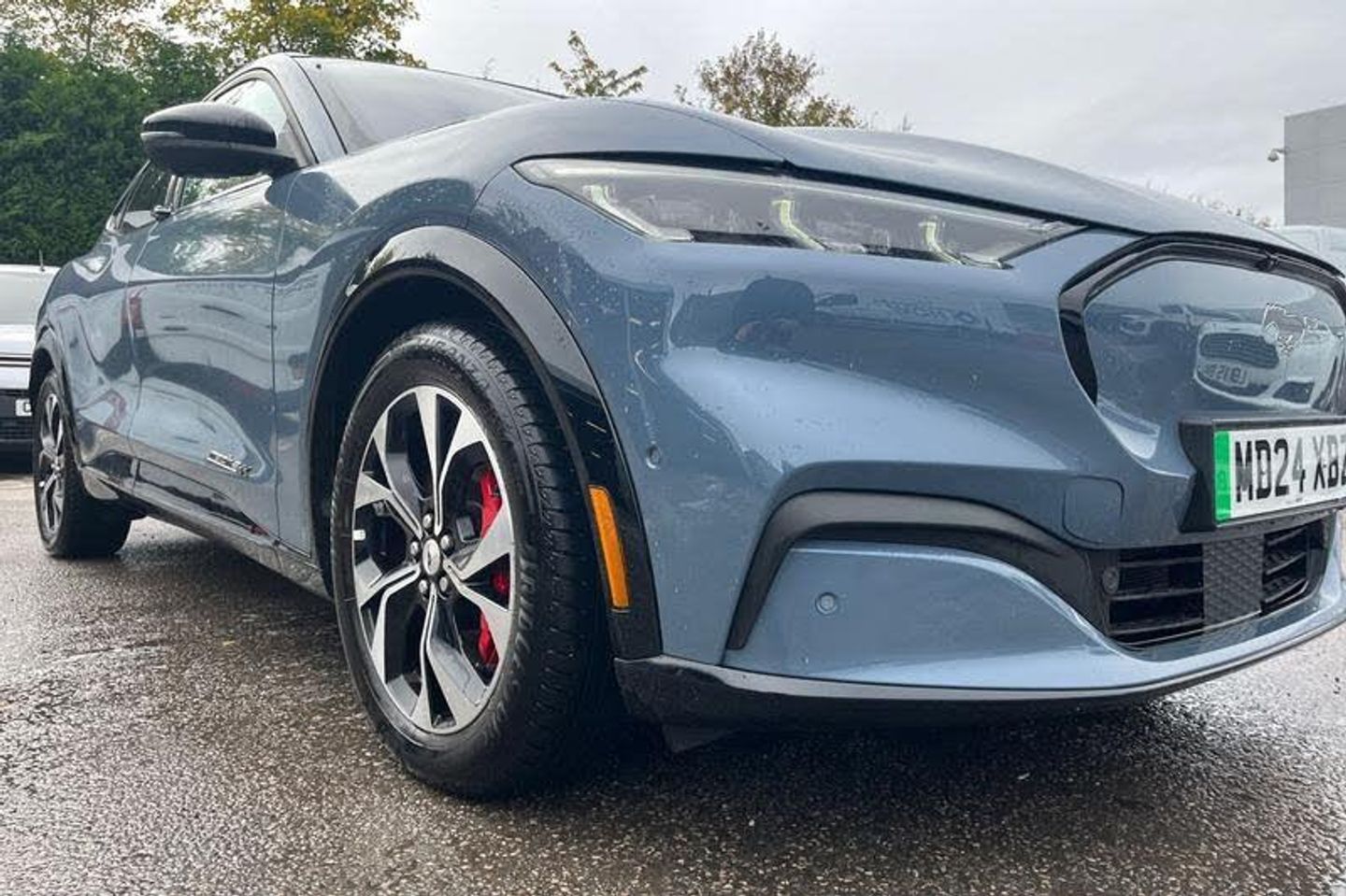 10.2 digital insturment cluster, 360 degree camera, Active park assist, Applink remote control system, BLIS (Blind Spot Information System) with cross traffic alert, Distance alert and indication system, Electric power steering, Emergency services call system, Ford SYNC4A with 15.5Touch, DAB radio, Emer assist, Wireless carplay androidauto, 2 front, rear USB ports, FordPass connect, Connected naviation, Front and rear parking sensors, Hands free tailgate, Intelligent adaptive cruise control with stop and go + lane centering, Lane departure warning with lane keeping aid, Selectable drive modes - active, whisper and untamed, Trip computer, Wireless charging pad, Adaptive LED Mustang signature headllamps, Black painted power fold heated mirrors with puddle light mustang logo projection, Blade front grille design, Body colour bumpers, Daytime running lights, Fixed full panoramic roof, LED 3rd brake light, LED Mustang signature tail lights, Quickclear heated windscreen, Rear privacy glass, Rear side wing doors, Rear wiper, Side cladding and wheel arches in piano black, 3 seat bench in 2nd row, 8 way power driver seats with lumbar support, 8 way power passenger seats with lumbar support, Ambient lighting, Dual electronic automatic temperature control, Front headrests, Front trunk, Heated front seats and steering wheel, One pedal drive, Perforated full sensico artificial leather upholstery, Rear head restraints, Single front passenger seat, 3 point rear seatbelts, ABS, Child locks on rear doors, ESP, Evasive steering assist, Pre collision assist inc Collision mitigation, Forward collision warning, Dynamic brake support, Automated emergency braking