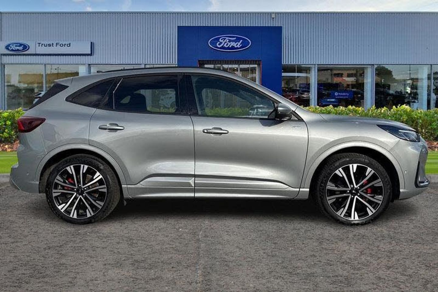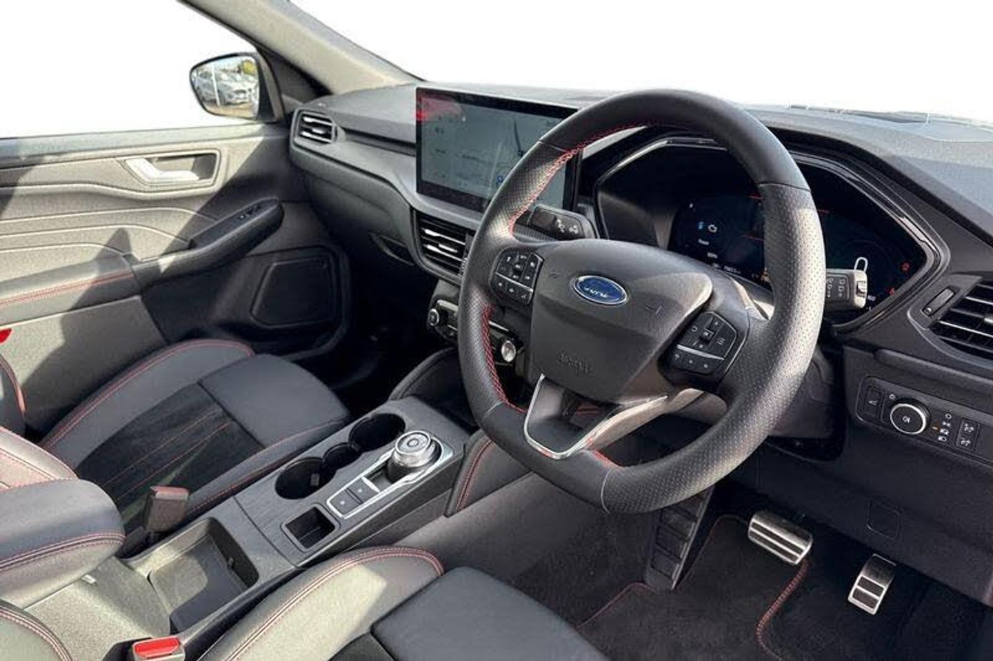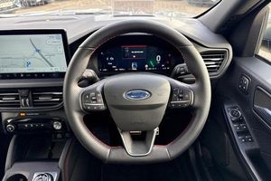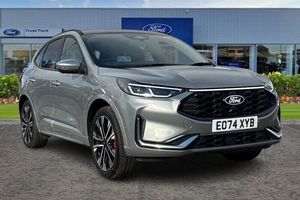BLIS Blind Spot Information System, Adaptive Cruise Control, Panoramic Glass Roof , Heads Up Display, Bang Olufsen Sound System , Heated Seats, Heated Steering Wheel, Power Tailgate, 360 Camera, Electric Memory Seats, Ford SYNC 4 Navigation with 13 touchscreen, Charging Mat, Front + Rear Parking Sensors , Privacy Glass, Push Button Start, Dual Zone Climate Control, Part Leather Seats , Cruise Control + Speed Limiter, Heated Front Windscreen, Lane keeping aid with lane departure warning, 12.3 digital colour instrument cluster, Clear exit assist, e-Call (emergency call), Ford easy fuel, DAB radio, emergency assistance, Andriod Auto/Apple CarPlay, Power assist steering, Selectable drive modes, Service interval indicator, Auto headlamps with high and low beam, Black roof rails, Body colour bumpers, Front LED fog lamps, Large rear spoiler, LED daytime running lights, LED rear lights, LED third brake light, Pop out door edge protectors, Power front/rear windows with global close, Power heated folding door mirrors with puddle lights, Rain sensing wipers, Rear side wing doors, Rear wiper, ST-Line body styling kit, 2nd row sliding seats, Front and rear head restraints, Partial premium touch sensico upholstery, Rear centre head restraint, Single front passenger seat, Sports seats, 3x3 point rear seatbelts, Airbags - front driver/passenger, front and rear curtain, Drivers knee airbag, Dynamic brake support, Electronic stability control (ESC) and ABS, Evasive steering assist, Ford MyKey Gen 2 safety system, Manual child proof rear door locks, Pre collision assist with autonomous emergency braking, Rear seat Occupancy alert, Red brake calipers, Tyre pressure monitoring system
