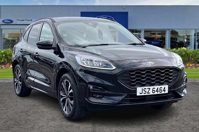 10-Way Power Adjustable Drivers Seat, 12V Power Point in Floor Console, 12v Power Point in Cargo Area, 12v Socket - Voltage Regulator, 19in Alloy Wheels - 5x2 Spoke - High Gloss - Machined, 2nd Row Sliding Seats, 8-Way Manual Passenger Seat including Lumbar Support and Height Adjust, ABS - Anti-Lock Braking System with Enhanced Electronic Stability Control - ESC with Traction Control - Emergency Brake Assist - EBA - Hill Start Assist, Air Conditioning - Electronic Automatic Temperature Control - EATC, Airbag - Driver and Front Passenger Side, Airbag - Front Passenger Deactivation Switch, Airbags - Driver and Front Passenger, Airbags - Front and Rear Side Curtain, Aluminium - Finish Front Scuff Plates with ST-Line Script, Aluminium Foot Pedals - ST-Line Design, Ambient Lighting, Auto Dimming Rear View Mirror, Auto Wipers, Automatic Door Relocking, Automatic Headlights with Auto High-Low Beam, Black Roof Rails, Centre Console with Electronic Parking Brake, Cruise Control with Intelligent Speed Limiter, Driver and Passengers Sun Visor with Illumination, Dual Exhaust Tailpipes with Unique Brushed Stainless Steel Finish, EPAS - Electric Power Assisted Steering, Electric Childproof Locks on Rear Doors, Electric Parking Brake with Auto Hold, Electrical Charging Point in Second Row, Engine Immobiliser - SecuriLock, Exterior Door Handles - Body Coloured, Ford Easy Fuel System, Ford Keyfree System - Keyless Entry with Ford Power Starter Button, Ford SYNC3 DAB Navigation System, Front Lower Grille - Ebony Black Mesh, Front Seats - 2-Way Manual Height Adjust Passive Head Restraints, Front Seats - Drivers and Passengers Seatback Map Pockets, Front Upper Grille - Carbon Black Honeycombe Mesh and High-Gloss Black Surround, Front Windows - Laminated Glass, Front and Rear Bumper - Sporty Body Colour with Rear Ebony High-Gloss Insert, Front and Rear Floor Mats with Red Stitching, Front and Rear Parking Sensors, Full Digital 12.3in Instrument Cluster, Full LED Headlamps, Gearshift - Automatic - Electronic Rotary Gearshift Dial, Glovebox Lights, Handsfree Power Tailgate, Headlights - Automatic Follow Me Home Lighting, Headlights - Levelling System - Manual, Headlights - Unique Bending, Headliner - Sports Dark, Heated Driver and Passenger Seats, Heated Rear Seats, Heated Steering Wheel, Heated and Power Folding Door Mirrors with Puddle Lights, High-Mounted Brake Light, Kuga Badge, LED Daytime Running Lights, LED Fog Lights - Front, Lane Keeping Aid with Lane Departure Warning, Large Rear Spoiler, Load Compartment - Lights, Load Compartment - Tie Down Hooks, Load Compartment Carpet, Locking Wheel Nuts, Lower Bodyside Moulding - Body Colour, Lower Door Frame Beltline - Black, Mini Overhead Console with Sunglasses Holder Bin, MyKey, Power Door Deadlocks - Double Locking, Power Door Locks, Power Opening Panoramic Roof, Pre-Collision Assist with Autonomous Emergency Braking - Camera Detection, Privacy Glass, Quickclear Heated Windscreen, Rear Duct on B-Pillar, Rear Lights - LED, Rear Seat - 60-40 Split Folding Seats, Rear Seat Centre Head Restraint, Rear Seats - 2-Way Head Restraint Up-Down, Rear Seats - Folding Centre Armrest with Integrated Cup Holder, Rear Seats - Sliding Seat Adjust Tracks - Fore-Aft, Rear View Camera, Red Brake Calipers, Remote Tailgate Release, Removable Package Tray, Rocker Panel Mouldings - Body Colour - ST-Line Design, ST-Line Badge on Left and Right Side Wings, ST-Line Bodystyling Kit, ST-Line Front and Rear Bumper Moulding - Body Colour, Seat Belt - Drivers - Front Passenger and Rear Seat Belt Reminder Alert, Seat Belts - Front 3-Point Seatbelts with Load Limiter, Seat Belts - Front Height Adjustable, Seat Belts - Rear Retractable Rear Belt - 3-Point All Positions, Seats - ISOFIX Mounting Provision for Child Seats - Outer Seats Only, Selectable Drive Modes, Single Rear Fog Light, Sports Seats, Steering Column - Locking Electric, Steering Column - Rake and Reach Adjustment, Steering Wheel - ST-Line Sports-Style Perforated Sen