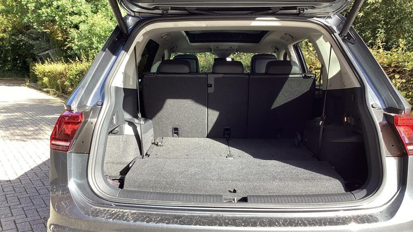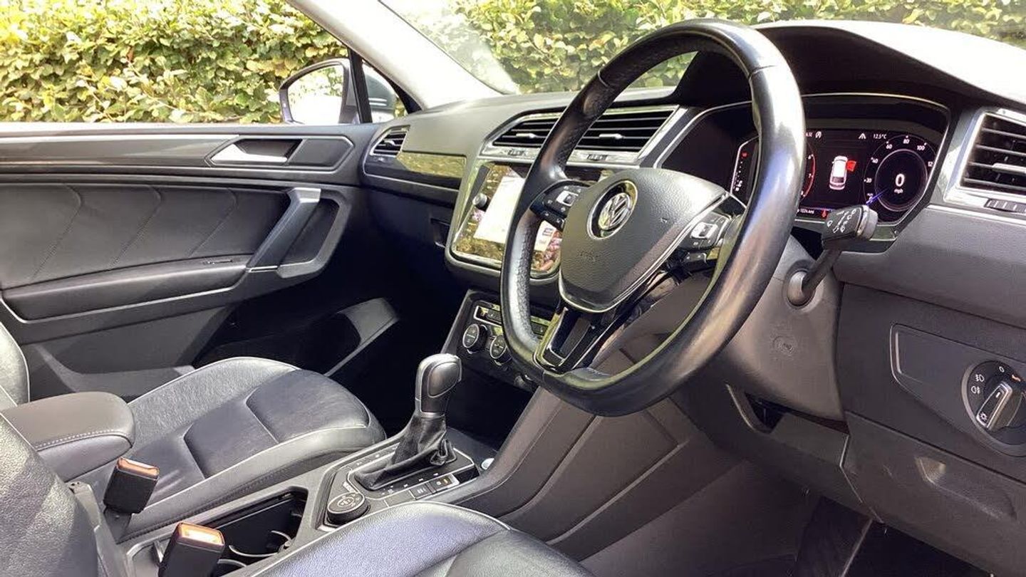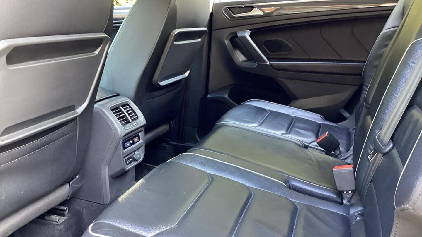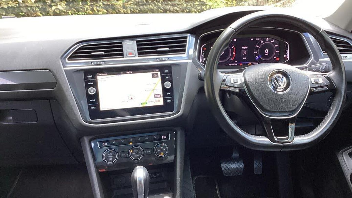 Active information display, Adaptive cruise control, App-Connect, Bluetooth phone integration system, Coasting function, Drive mode selector, Driver alert system, Driver profile selection, Fatigue detection system, Front assist, radar sensor controlled distance monitor, city emergency braking + predictive pedestrian protection, Fully electric tailgate + keyless entry and start, Instrument cluster, Lane assist, Low washer fluid warning light, Outside temperature display, Service interval indicator, Speed limiter, Start/Stop function, VW connect dongle, Warning sound and light for doors and tailgate open, Battery regeneration during braking, 2x USB sockets in front, 4 X 20 watt output, DAB Digital radio, Dynamic navigation based on TMC+, Music playback - MP3, WMA and AAC files, SD card slot, Simultaneous pairing of 2 compatible mobile devices, SMS Functionality, Three route options - Fast, Short, Eco, Title and cover art display, Volkswagen media control, 3D effect cherry red LED rear tail lights, Auto dimming interior mirror, Automatic activation of hazard warning lights, Black door protector with chrome inserts, Body colour door handles, Body colour door mirrors, Body coloured bumpers, Chrome side body trim, Chrome side window surrounds, Chrome trimmed radiator grille, Coming/leaving home lighting function, Door mirror puddle lights, Door sill protector, Dusk sensor + auto driving lights, Electric panoramic sunroof with sunblind, Electrically heated and foldable door mirrors, door mirror puddle lights and reverse activated kerb view adjustment on passenger's door mirror, Front air intake with chrome strip, Front and rear electric windows, Heated rear window, Heated windscreen washer jets, High level 3rd brake light, LED headlights with dynamic light assist daytime running lights and cornering front fog lights, LED rear number plate lights, Rain sensor windscreen wipers, Rear tinted windows from B pillar back, Rear windscreen washer and wiper with interval delay, Silver anodised roof rails, Silver rear diffuser trim, Twin trapezoid chrome exhaust pipes, Windscreen wipers/ intermittent wipe + 4 position delay, 12V socket in centre console storage area, 12V socket in luggage compartment, 12V socket on rear of front centre armrest, 2 cup holders in front, 2 head restraints in 3rd row, 2 individual 3rd row seats, 3 head restraints in 2nd row, 3 single seats foldable in 2nd row, 3 zone climate control, 4 load lashing points, Assymetric split folding rear bench seat and backrest with centre armrest, Bag hook in luggage compartment, Foldable front passenger seat backrest, Front + rear carpet mats, Front centre armrest with storage compartment, longitudinal and height adjustable and two rear air vents, Front passenger underseat drawer, Front seatback folding tables, Height/reach adjust steering wheel, Illuminated driver/passenger vanity mirrors, Illuminated scuff plates, Instrument lighting white adjustable panel illumination, Interior light with delay, Isofix Preparation 2 Rear child seats, Load through provision with 2 cupholders when folded, Lockable cooled glovebox, Luggage compartment lighting, Luggage compartment side storage, Map pockets on front seats, Passenger seat height adjuster, Rear cupholders, Removable luggage cover, Sliding/reclining rear seats, Storage compartment in driver's door, Storage compartment in passenger's door, Storage tray on dashboard, Sunglasses storage, Variable boot floor, Ambient lighting pack - Tiguan, 3 point seatbelts on all seats, ABS+EBD+Brake assist, Active bonnet, Active pedestrian safety system, Curtain airbags, Driver/Front Passenger airbags, Driver/Passenger whiplash optimised head restraints, Drivers knee airbag, Electronic parking brake with auto hold, ESC with EDL, ASR, EDTC and trailer stabilisation function, First aid kit, Front and rear brake disc, Front seat side impact airbags, Front side airbags, Front ventilated brake discs, Head airbag system, Height adjustable front 3 point seatb