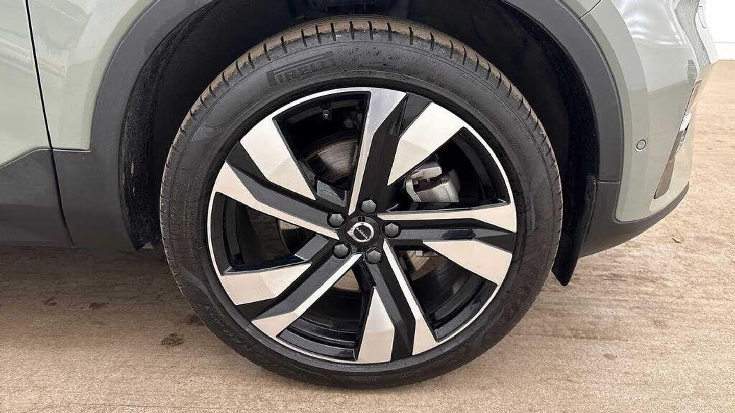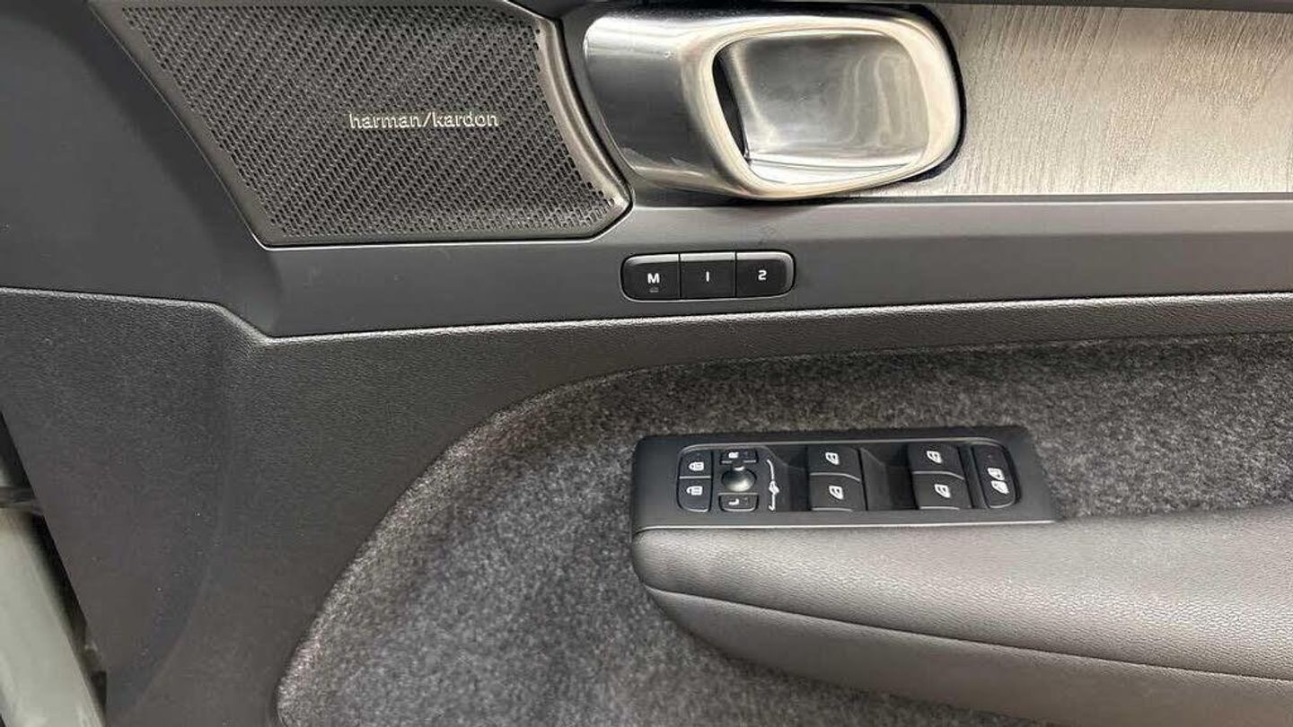 Temporary spare wheel, 20? 5-Double Spoke Black Diamond Cut, Crystal gear shift by Orrefors®, Blond headlining, Door mirror covers. high-gloss black, Driftwood decor, Leather upholstery, Tailored steering wheel. Charcoal, 7-speed Dual Clutch automatic, Two-zone climate system, Afterrun parking climate, Passenger airbag cut-off switch, Dual-stage airbags, Knee airbag. driver side, Panoramic roof, Charcoal interior inserts, Road Sign Information, Lane Keeping Aid and Lane Departure Warning, Front grille with high-gloss black insert, Heated grill emblem, Pixel LED headlights, Headlight cleaning, Trailer lamp control, Fog lamps, 12.3-inch driver display, Google Assistant. Google Maps and Google Play Store - included for 4 years, Adaptive cruise control, Pilot Assist, Intelligent Speed Assist (ISA), Volvo Cars App remote functions, Air-ventilated subwoofer, Digital Audio Broadcasting (DAB+), Harman Kardon Premium Sound, Power retractable door mirrors, Wireless phone charging, Automatic door locking, Remote key, Small storage. front, Double locking, Tinted rear windows, BLIS? and Cross Traffic Alert, Alarm, Power child safety lock, Power tailgate, Keyless entry with hands-free power tailgate, Air purifier and remote cabin pre-cleaning, Folding bag hook, Speech function, Digital owners manual, Power driver seat with memory, Power passenger seat, Heated front seats, Heated rear seats, Power folding rear head restraints, 5 seats, Mechanical release second seat row, Manual cushion extensions. driver and passenger, Power 4-way lumbar support, Sport textile interior cabin floor mats. Charcoal, Protection net, Foldable load floor with cargo divider and grocery bag, Rear centre armrest, Illuminated vanity mirrors, Interior illumination. high level, Power outlet. load compartment, First-aid kit, Auto-dimmed rear view mirrors, Front centre armrest, Glossy black tunnel console, Chassis, Hill Start Assist, Tyre pressure monitoring, Oncoming Lane Mitigation, Rear Collision Warning, Hill Descent Control, Slippery road alert, Emergency brake light, Heated steering wheel, Adaptive power steering, 20? 5-Double Spoke Black Diamond Cut, Temporary spare wheel, Lockable wheel bolts, Hidden tail pipes, Heated windscreen, Body-coloured door handles with ground lighting, High-gloss black side window trim, Roof rails. glossy black, Warning triangle, Volvo tread plates. aluminium, Tempered side and rear windows, Rain sensor, Park assist. front. rear and sides, Ticket holder, 360° camera, Alcohol lock software (not available in the UK), Protective cap kit. Matt Tech Grey, Apple CarPlay, Comfort front seats, 9-inch centre display, Whiplash injury protection, Inflatable Curtain, Side impact protection, ISOFIX mounting points. rear seat, Steering wheel remote control, Humidity sensor, Bluetooth® connection, Safety belts