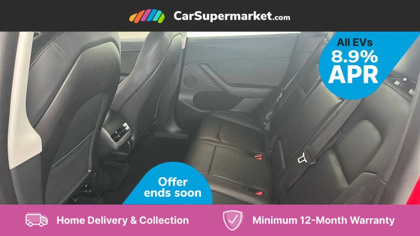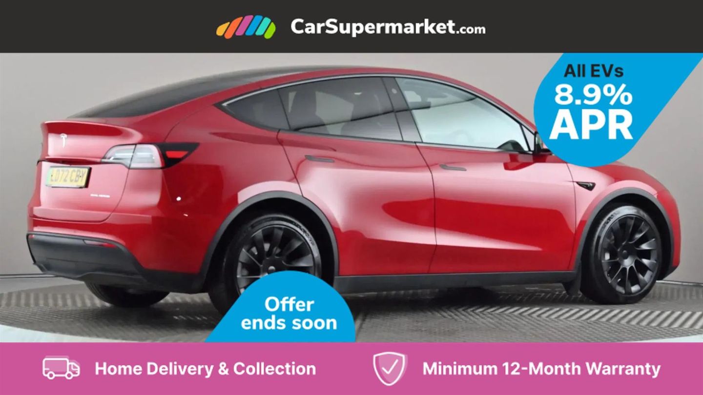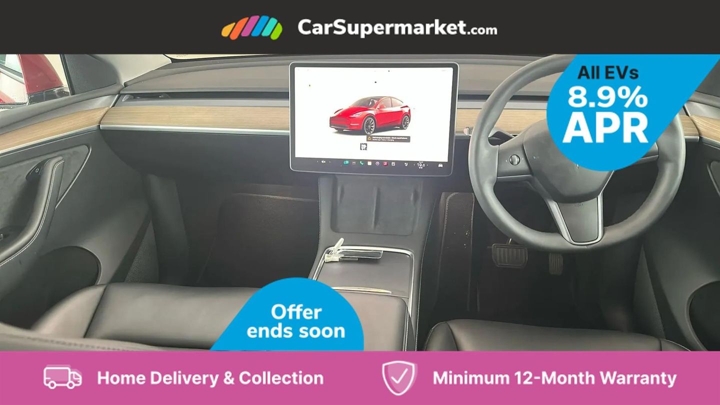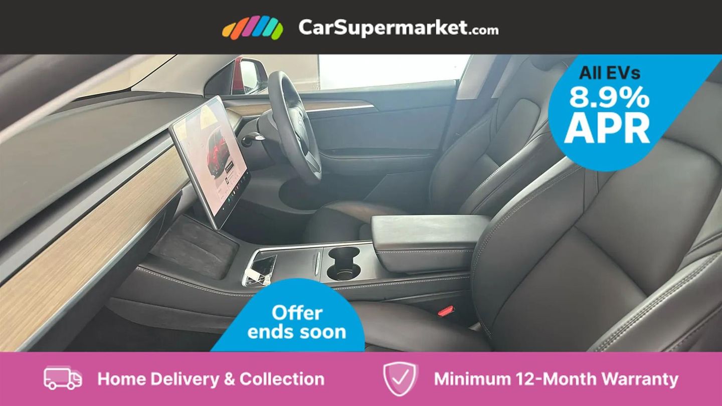 15" Touchscreen display,Acoustic seat-belt warning,Blind spot monitoring,Bluetooth hands free phone with voice control system,Custom driver profiles,Electric assisted front and rear doors,Emergency call service,Front and rear parking sensors,Homelink (programmable garage door opener),Mobile App interface,Navigation system,Power lift tailgate,Reversing camera,Service indicator,Software updates over WiFi,Speed limit recognition,Speed sensitive power steering,11 kW AC onboard charger,CCS charging connector,Dual motor AWD wheel drive,Tesla mobile connector + domestic adapter (British 3-pin),Type 2 connector,4 USB C ports,DAB Digital radio,Music and media via bluetooth,Premium audio 14 speakers, 1 subwoofer, 2 amps and full immersive sound,3rd brake light,Auto headlights,Auto high beam,Automatic headlights and wipers,Daytime running lights,Electric windows with one touch open,LED fog lights,LED Headlights,LED tail lights,Power folding, auto dimming and heated wing mirrors,Rain sensitive windscreen wipers,Rear side wing doors,Rear view mirror auto dimming,Rear window defroster,12 way Power adjustable driver seat with lumbar support,2 fixed rear headrests,3 seat bench in 2nd row,Auto dual-zone climate control system,Center console with storage, 2 cup holders and armrest,Driver and front passenger sunvisors with illuminated vanity mirrors,Electronic fold flat seat release 40/20/40,Expansive glass roof with ultraviolet and infrared protection,Front head restraints,Glovebox, lockable with illumination,Heated front seats,Heated rear seats,Heated steering wheel,HEPA filtration system - "Bioweapon defence mode",Interior ambient lighting,Map and reading lights,Power adjustable steering wheel,Rear centre armrest with 2 cup holders,Single front passenger seat,Type 2 cable,3 point front seatbelts with pre-tensioners,3x3 point rear seatbelts,ABS + traction control,Active safety technologies including collision avoidance and automatic emergency braking,Collision warning,Driver/Front Passenger airbags,EBD + Brake Assist,Electronic parking brake,Electronic stability control,Emergency braking,Rear door child safety locks,Side curtain airbags,Tyre pressure monitoring system,Anti theft alarm,Dashcam,Keyless driving and keyless entry,Wireless phone charging,Premium open pore wood decor,20in Alloy Wheels - Induction,Midnight Cherry Red