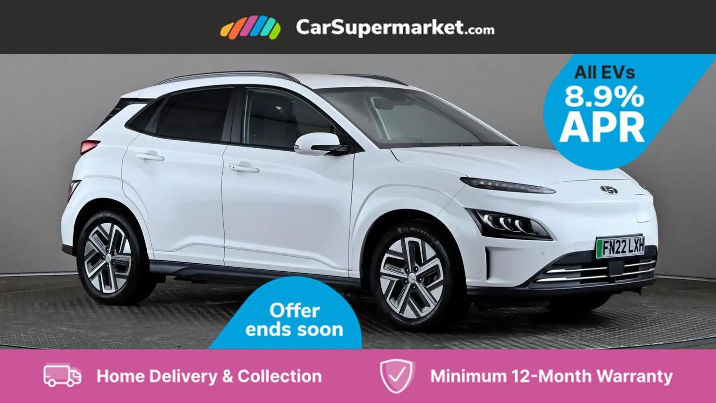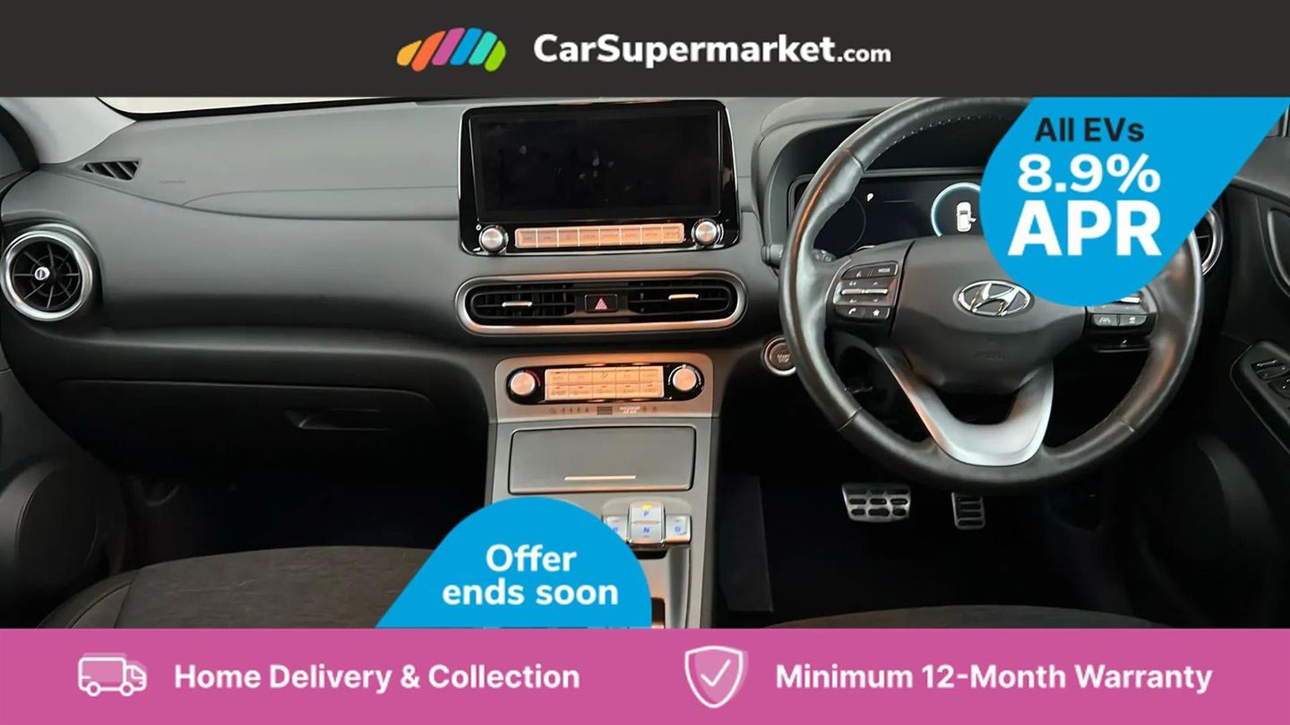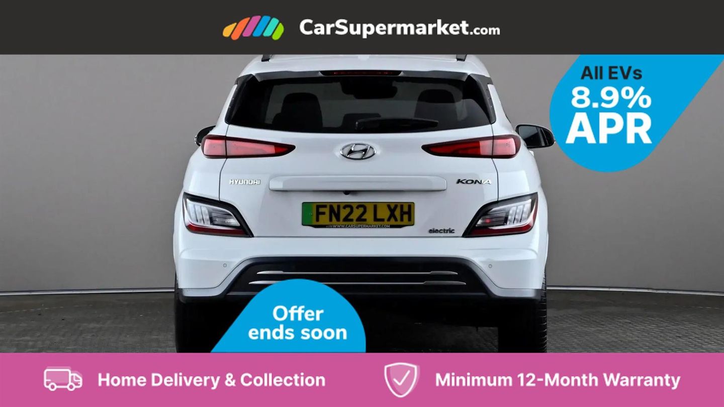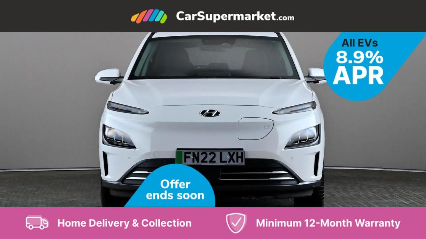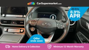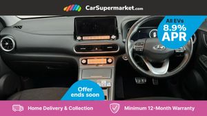 Sat Nav, Blind Spot Monitoring, Bluetooth, Cruise Control, Apple CarPlay, Android Auto, Wireless Phone Charging, Privacy Glass, Automatic Climate Control, Heated Front Seats, Heated Steering Wheel, Keyless Entry, 17" Alloy Wheels;This 2022 Hyundai KONA Premium Electric boasts an impressive MOT valid until September 2026 and was last serviced on 1st April 2025 at 29,239 miles, indicating excellent care. This single owner vehicle features a substantial 68 kWh battery, offering a maximum range of 300 miles when new. For convenience, it charges fully at home in approximately 10 hours and 16 minutes using a 7kW charger, and can reach 80% charge in just 53 minutes at a rapid public charging station. The Premium trim level comes equipped with desirable features that enhance your driving experience. Enjoy the comfort of heated front seats and a heated steering wheel, perfect for colder days. Automatic headlights with a dusk sensor ensure optimal visibility, while the smart adaptive cruise control with stop and go function makes motorway driving effortless. Furthermore, the integrated wireless phone charging pad keeps your devices powered up on the go. These features collectively demonstrate the KONA's superior comfort and advanced technology compared to other vehicles in its class.