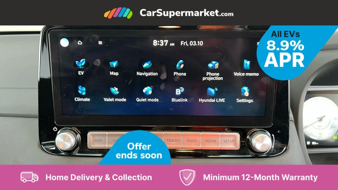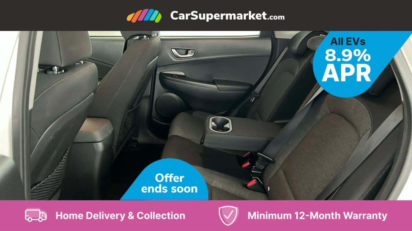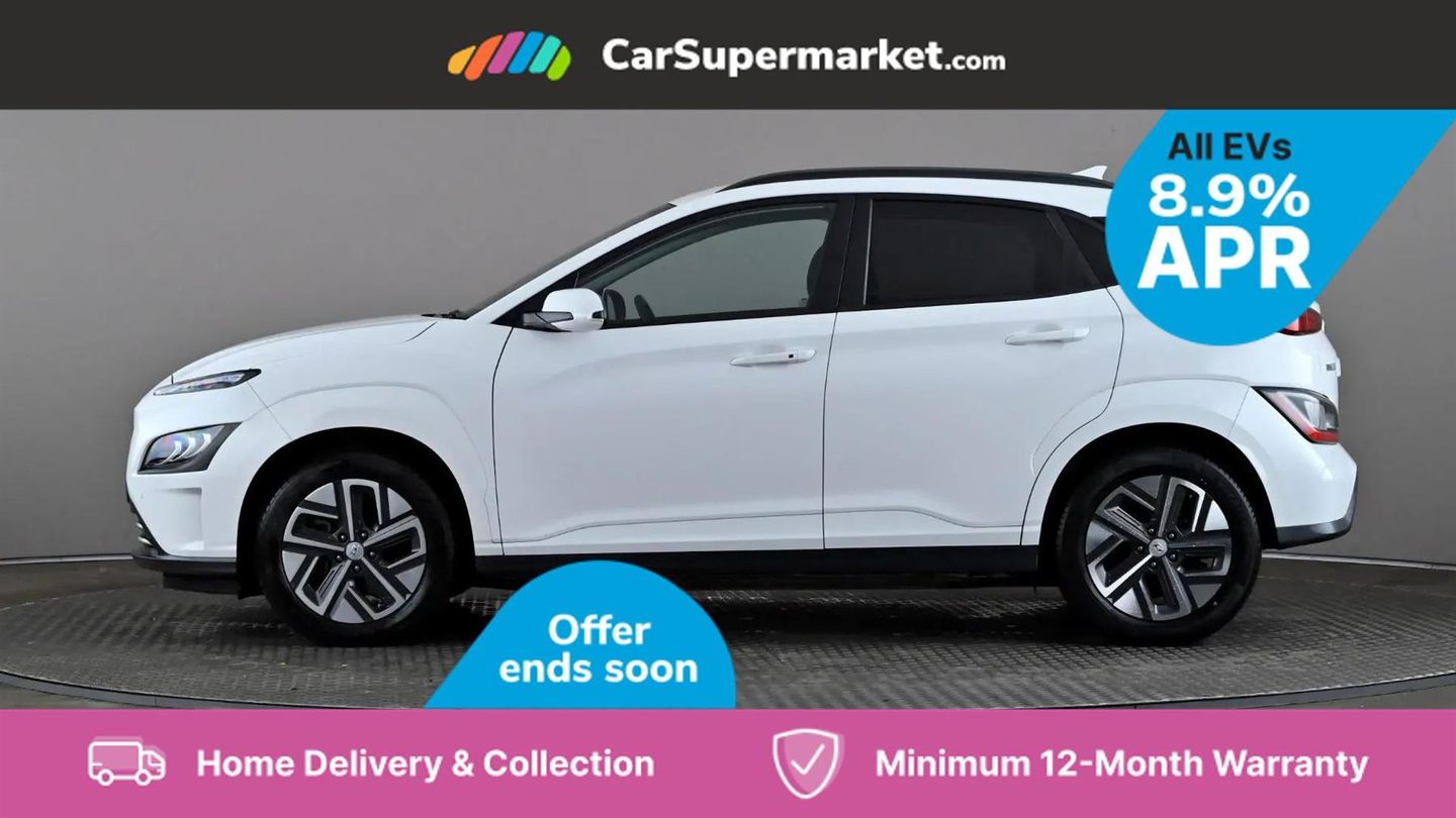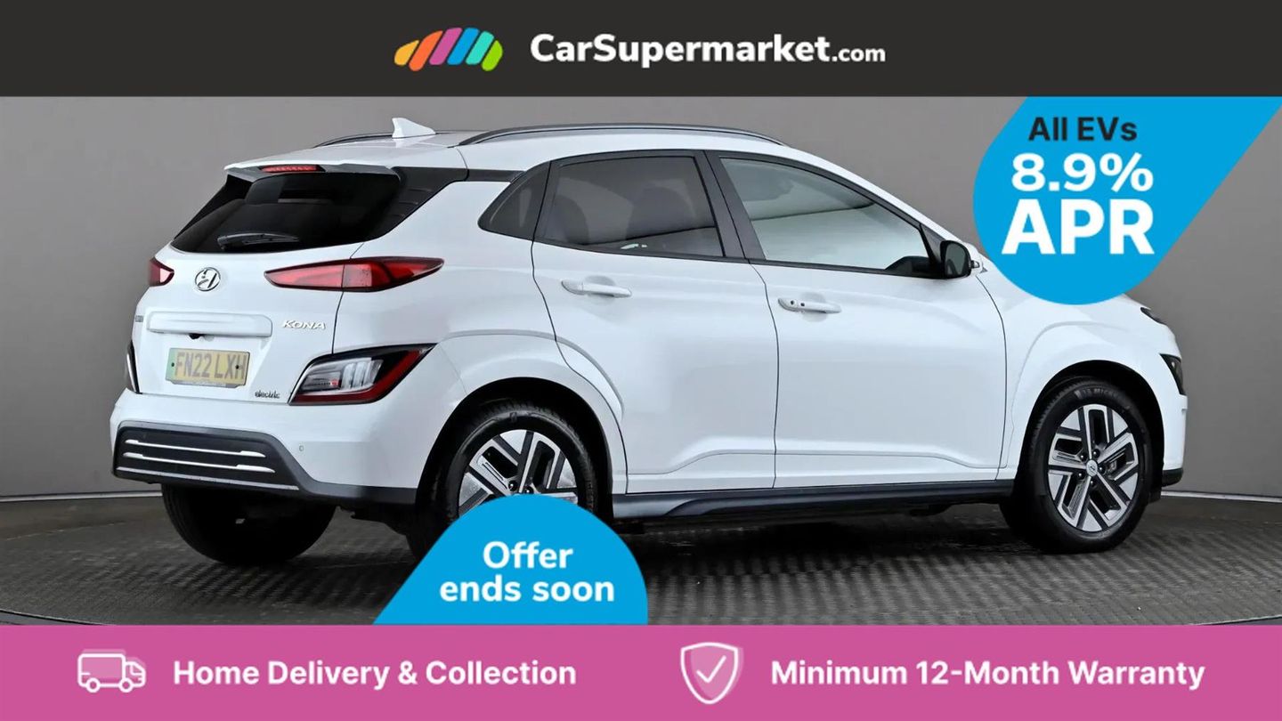 Sat Nav, Blind Spot Monitoring, Bluetooth, Cruise Control, Apple CarPlay, Android Auto, Wireless Phone Charging, Privacy Glass, Automatic Climate Control, Heated Front Seats, Heated Steering Wheel, Keyless Entry, 17" Alloy Wheels;This 2022 Hyundai KONA Premium Electric boasts an impressive MOT valid until September 2026 and was last serviced on 1st April 2025 at 29,239 miles, indicating excellent care. This single owner vehicle features a substantial 68 kWh battery, offering a maximum range of 300 miles when new. For convenience, it charges fully at home in approximately 10 hours and 16 minutes using a 7kW charger, and can reach 80% charge in just 53 minutes at a rapid public charging station. The Premium trim level comes equipped with desirable features that enhance your driving experience. Enjoy the comfort of heated front seats and a heated steering wheel, perfect for colder days. Automatic headlights with a dusk sensor ensure optimal visibility, while the smart adaptive cruise control with stop and go function makes motorway driving effortless. Furthermore, the integrated wireless phone charging pad keeps your devices powered up on the go. These features collectively demonstrate the KONA's superior comfort and advanced technology compared to other vehicles in its class.