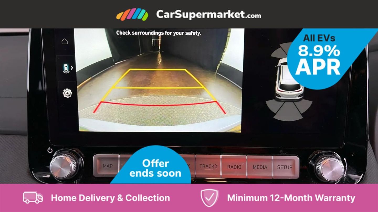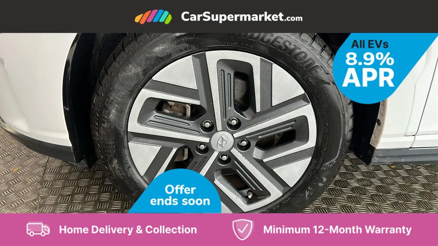 10.25" touchscreen satellite Navigation with Bluelink and Mapcare,Blind spot collision avoidance assist,Bluetooth connectivity with voice recognition,Cruise control - smart adaptive speed control with stop and go function,Digital clock,Drive mode selector,Driver supervision instrument cluster with 10.25" LCD display,eCall emergency call system,Forward collision assist with pedestrian monitoring and cycle detection,Front parking sensor,Intelligent speed limit warning,Lane follow assist,Lane keep assist,Parking system with rear camera and guidance system,PAS,Phone connection with apple carPlay and android auto,Rear cross traffic collision avoidance (RCCA),Rear parking sensor,Roadside assistance,Windscreen washer fluid sensor and warning indicator,Wireless phone charging pad,10.5 kWh 3 Phase On Board Charger,7 pin charging cable,Battery heater,Emergency 3 pin connector charging cable (ICCB),Single speed transmission,Vehicle Stability Control (VSC),Krell premium audio system with 8 speakers and subwoofer,RDS and Digital DAB,Steering wheel mounted audio/phone controls,USB/aux input socket,3rd brake light,Auto dimming rear view mirror,Automatic headlights with dusk sensor,Automatic windscreen wipers with rain sensor,Body colour door mirrors and handles,Door mirror integrated indicators,Electric front/rear windows with drivers one touch/anti-trap,Electrically adjustable and heated door mirrors,Full LED MFR headlights,LED daytime running lights,LED rear lights,Positioning Lights - LED,Power folding door mirrors,Privacy glass - Rear windows and tailgate,Rear side wing doors,Rear wiper,Roof rails,Solar glass with windscreen shade band,3 seat bench in 2nd row,60/40 split folding rear seat,Adjustable head restraints,Ambient lighting,Automatic climate control with defog system for front windscreen,CCS Combo rapid charge port (50kW),Centre interior light,Chrome interior door handles,Cloth upholstery,Door scuff plate,Driver and passenger front seat pockets,Driver's electric adjustable lumbar support,Driver's seat height adjustment,Driver's seat manual adjustment,Driver/passenger sunvisors and illuminated vanity mirrors,Front cup holders,Front interior light,Front passenger seat manual adjustments,Heated front seats,Heated steering wheel,Height/reach adjustable steering column,Leather wrapped steering wheel,Luggage compartment undertray,Rear centre console with air vents,Single front passenger seat,Sunglasses holder,USB charger in centre console,3x3 point rear seatbelts,Airbags - front, front side and curtain airbags,Anti-lock brake system (ABS),Autonomous Emergency Braking with pedestrian recognition,Childproof rear door locks,EBD + Brake Assist,Electric parking brake,Electronic stability control,Fasten seatbelt reminder,Front seatbelt pretensioners,Height adjustable front seatbelts,Hill start assist control (HAC),Passenger airbag deactivate switch,Regenerative brake shift paddles,Tyre pressure monitoring system with individual tyre pressure display,Alarm/immobiliser,Deadlocks,Folding key,Locking wheel nuts,Remote central locking,Smart Key - Keyless entry with Power On/Off button,17" Alloy wheels,Tyre repair kit