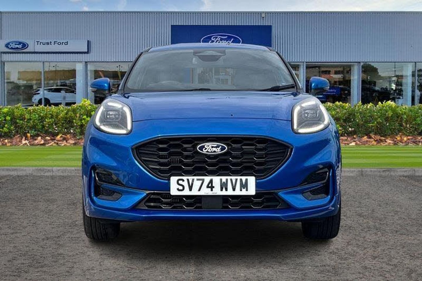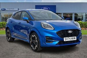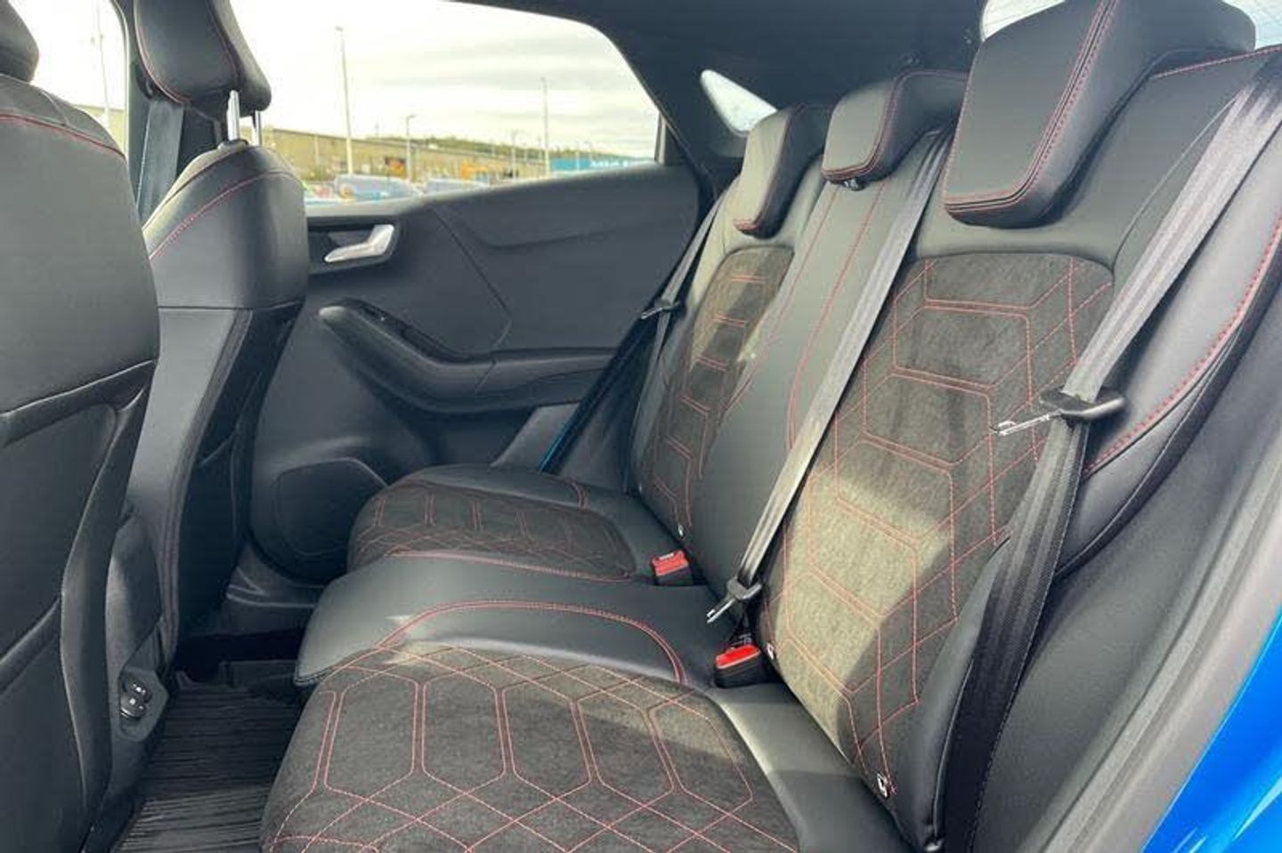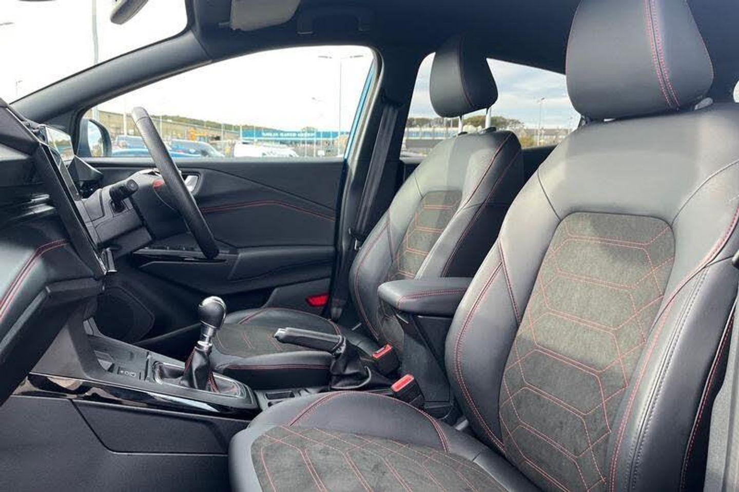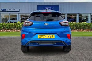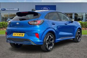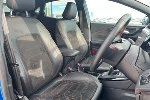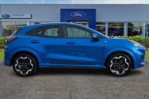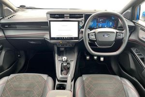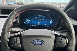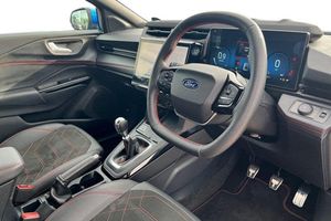 Driver impairment monitor, Emergency call service, Ford easy fuel, Full digital 12.8 instrument cluster, Lane keeping aid with lane departure warning, Power assist steering, Selectable drive modes(Normal, sport, Eco, trail, slippery), Speed sign recognition, Automatic headlights with rain sensing wipers and auto high beam, Front fog lamps, LED daytime running lights, LED rear lamps, LED third brake light, Power foldable heated door mirrors with puddle lamps and puma logo protection, Quickclear heated windscreen, Rear privacy glass, Rear side wing doors, Rear wiper, ST-Line X body styling kit, 3 seat bench in 2nd row, 4 way lumbar support for passenger seat, Centre console with armrest and stowage, Electronic automatic temperature control (EATC), Ford megabox extended bootspace, Front and rear head restraints, Front floor mats, Manual 4 way driver seat adjust with lumbar adjustment, Single front passenger seat, ST-Line X Premium synthetic leather upholstery, 3 rear seatbelts, Child safety lock, Electronic stability control (ESC) and hill start assist, Pre-collision assist with autonomous emergency braking, pedestrian/cyclist detection & post-collision braking, Tyre pressure monitoring system (TPMS)