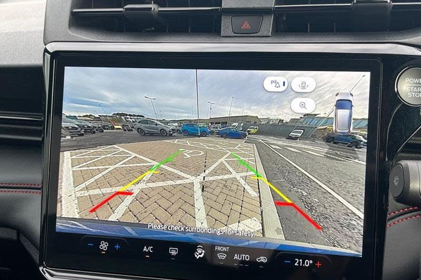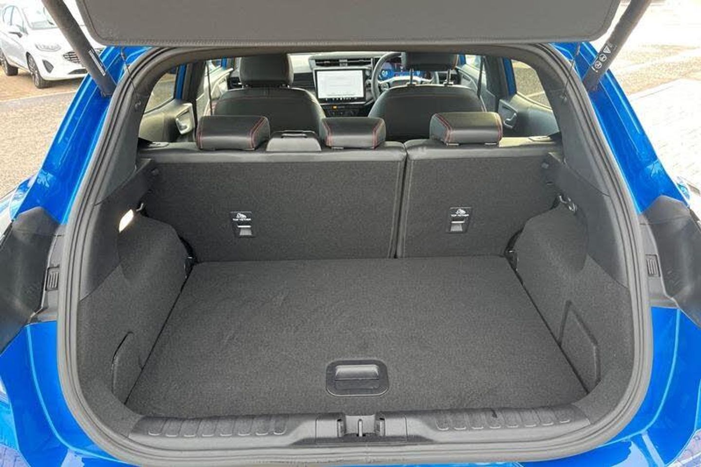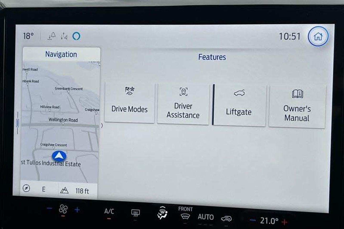 Driver impairment monitor, Emergency call service, Ford easy fuel, Full digital 12.8 instrument cluster, Lane keeping aid with lane departure warning, Power assist steering, Selectable drive modes(Normal, sport, Eco, trail, slippery), Speed sign recognition, Automatic headlights with rain sensing wipers and auto high beam, Front fog lamps, LED daytime running lights, LED rear lamps, LED third brake light, Power foldable heated door mirrors with puddle lamps and puma logo protection, Quickclear heated windscreen, Rear privacy glass, Rear side wing doors, Rear wiper, ST-Line X body styling kit, 3 seat bench in 2nd row, 4 way lumbar support for passenger seat, Centre console with armrest and stowage, Electronic automatic temperature control (EATC), Ford megabox extended bootspace, Front and rear head restraints, Front floor mats, Manual 4 way driver seat adjust with lumbar adjustment, Single front passenger seat, ST-Line X Premium synthetic leather upholstery, 3 rear seatbelts, Child safety lock, Electronic stability control (ESC) and hill start assist, Pre-collision assist with autonomous emergency braking, pedestrian/cyclist detection & post-collision braking, Tyre pressure monitoring system (TPMS)